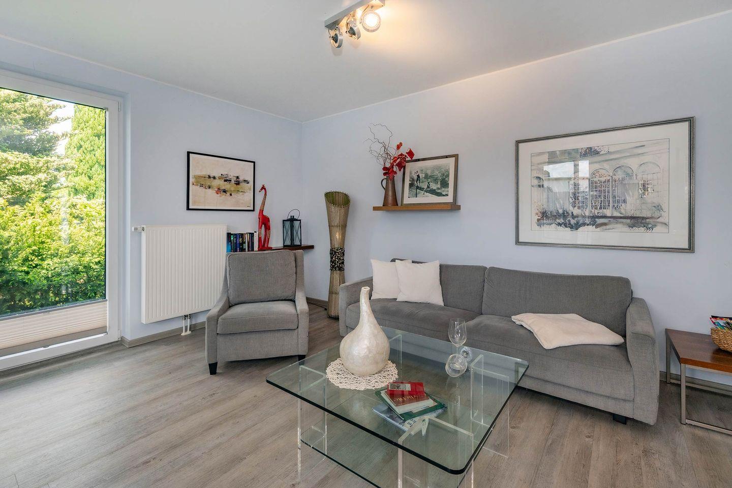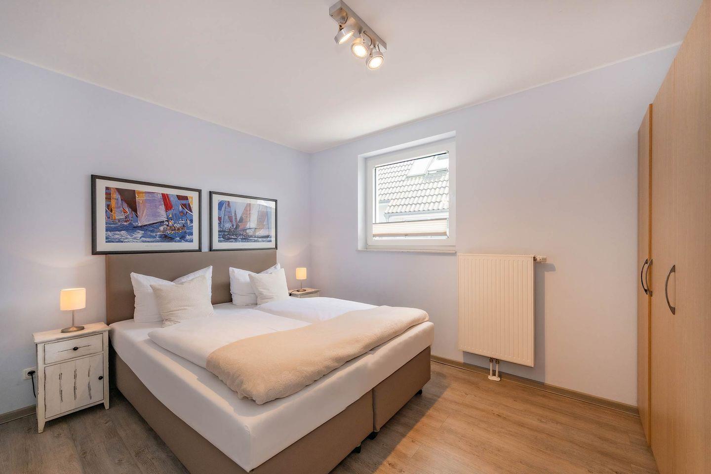 Die gesamte Einrichtung des Hauses Sandkorn zeichnet sich durch eine gemütliche Atmosphäre aus, die durch sorgfältig ausgewählte Dekoration und hochwertige Möbel geschaffen wird. Zwei stilvolle Schlafzimmer versprechen erholsame Nächte: Eines verfügt über ein komfortables Doppelbett (1,80m x 2,00m) mit Verdunklung und Kleiderschrank. Das zweite Schlafzimmer bietet ebenfalls ein Doppelbett (1,80m x 2,00m), einen verspiegelten Kleiderschrank und Verdunklungsmöglichkeiten, was für absolute Ruhe und Privatsphäre sorgt. Ein modernes und stilvolles Badezimmer mit sowohl einer erfrischenden Dusche als auch einer entspannenden Badewanne bietet maximalen Komfort. Zusätzlich steht ein separates Gäste-WC zur Verfügung, was den Aufenthalt besonders angenehm gestaltet.