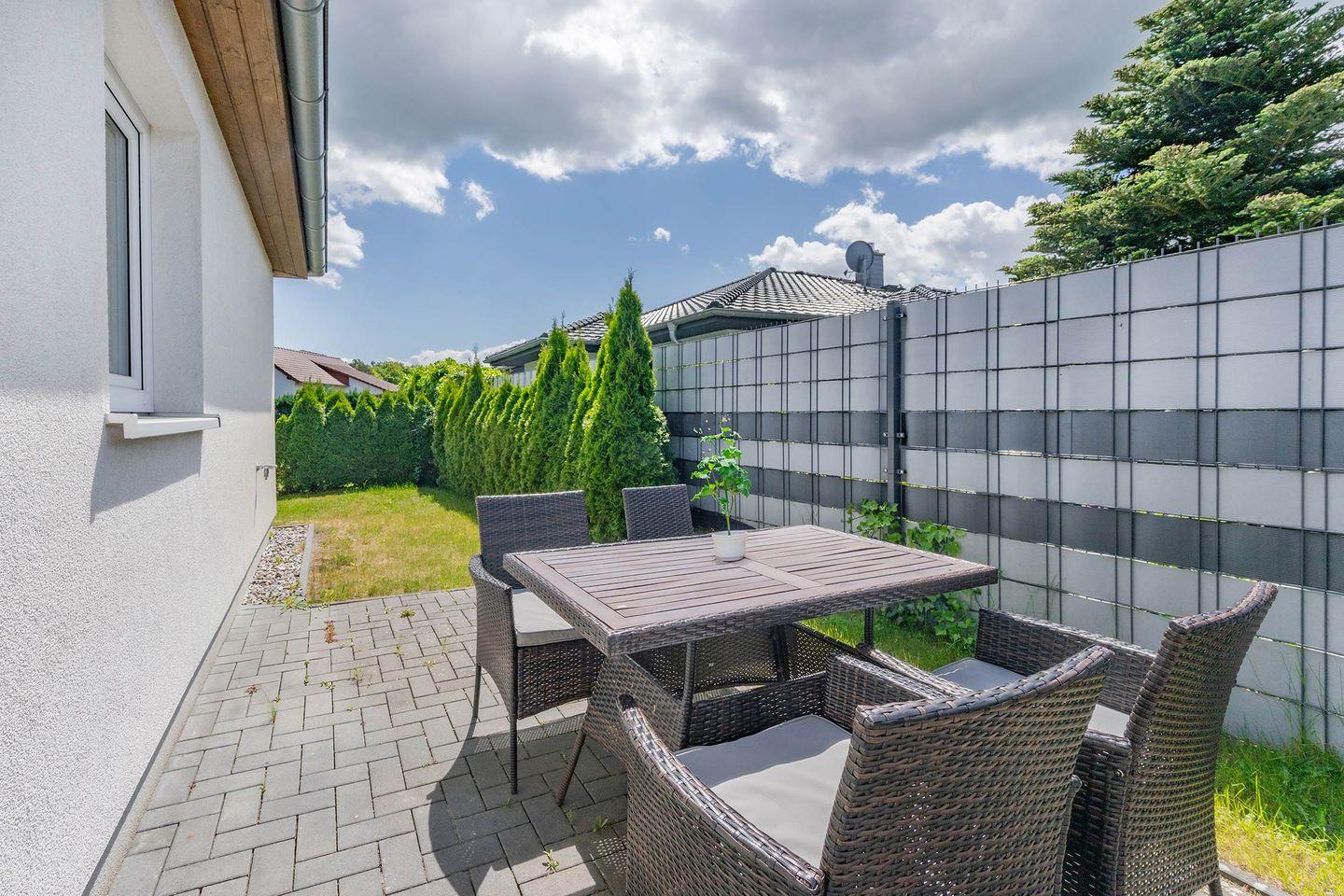 Entfliehen Sie dem Alltag und entdecken Sie Ihr persönliches Paradies auf der Insel Usedom im charmanten Ferienhaus "Haus Sandkorn". Gelegen in der ruhigen Idylle des Dorfes Korswandt, abseits des Trubels der Ostseebäder, bietet dieser einstöckige Bungalow mit 86 m² Wohnfläche eine perfekte Symbiose aus Komfort und Erholung. Die Lage in Korswandt ist ideal für alle, die Naturverbundenheit schätzen und dennoch die Nähe zu den Kaiserbädern Heringsdorf, Bansin und Ahlbeck genießen möchten. Von hier aus erreichen Sie bequem die malerische Umgebung und die zahlreichen Freizeitmöglichkeiten der Insel.