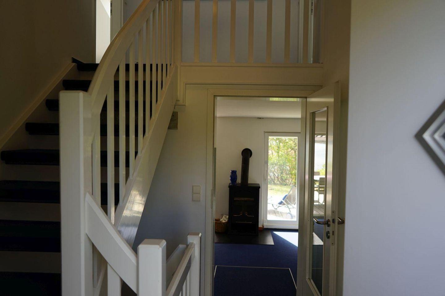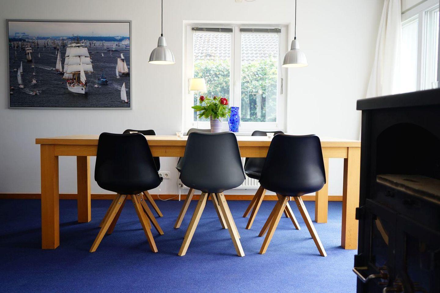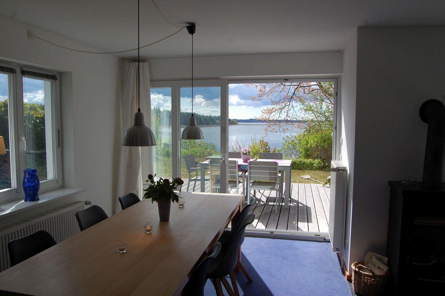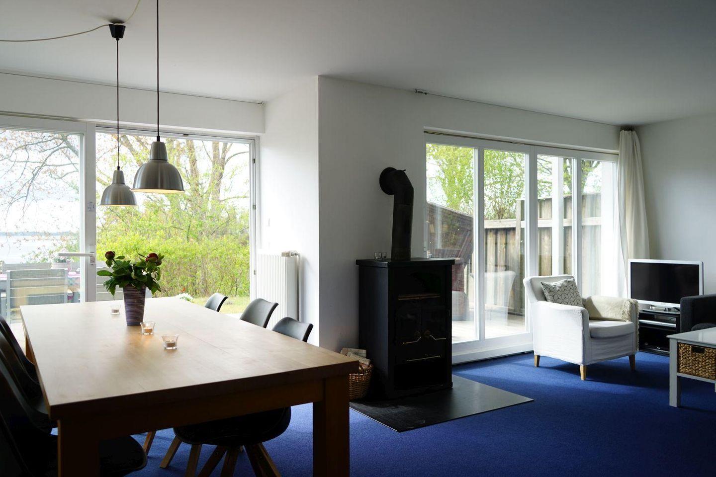 Am südlichen Schleiufer mit Panoramafenstern. Nur 100 Meter vom Badestrand entfernt. Mit Terrasse und Kaminofen. Geeignet für bis zu 6 Personen.