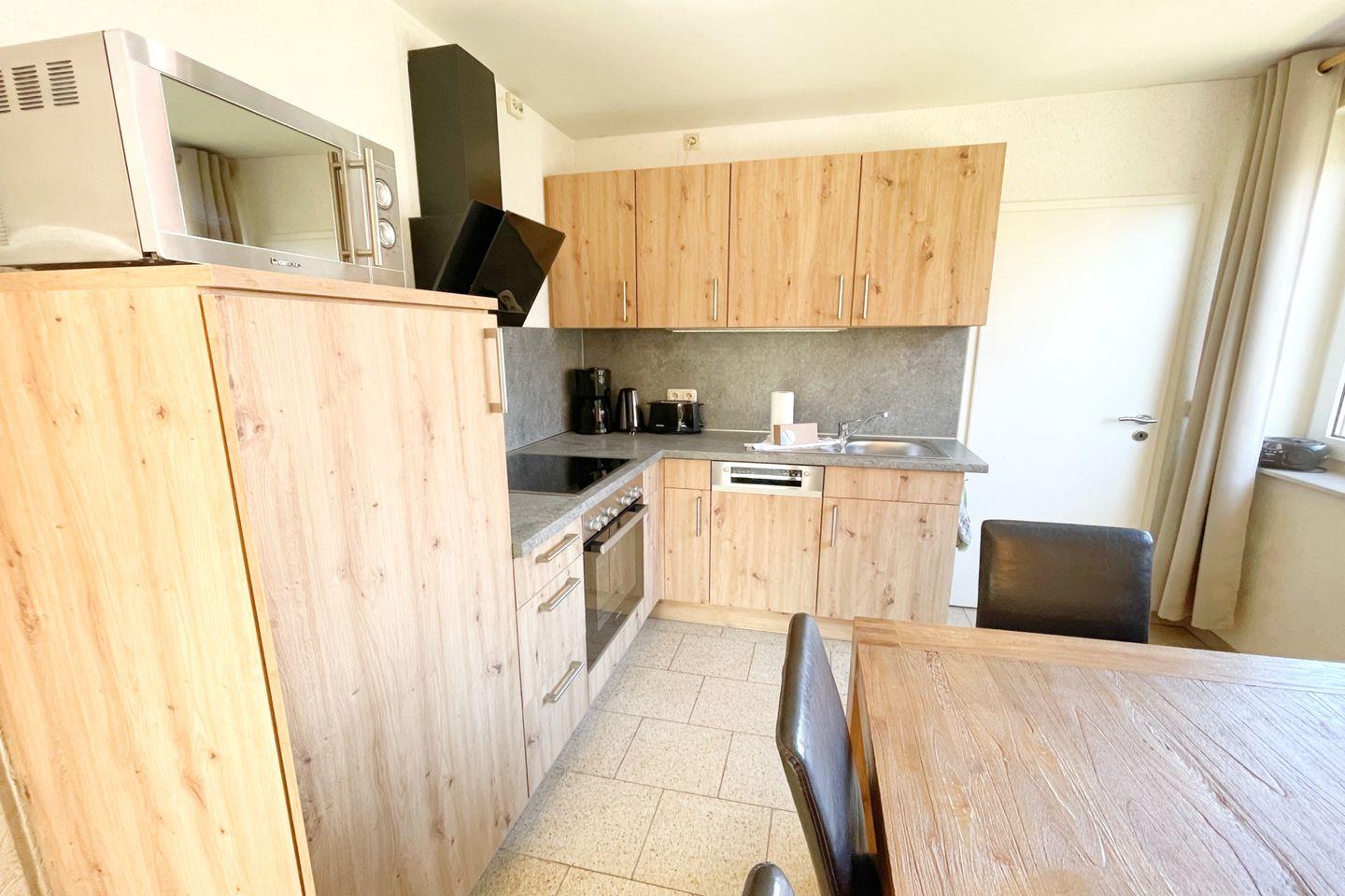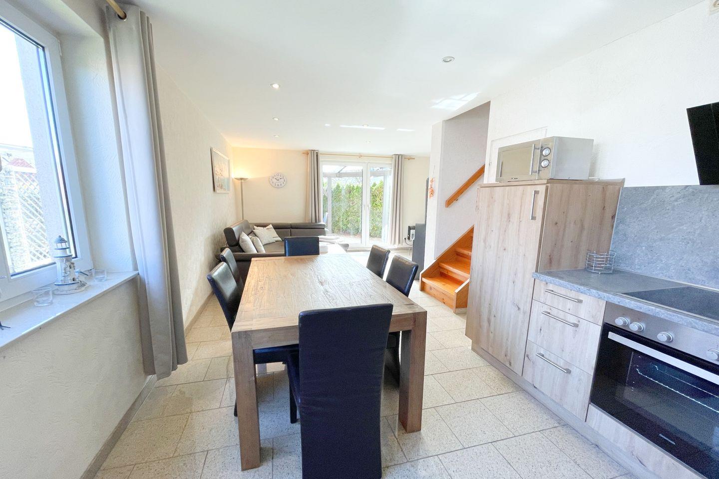 Das Ferienhaus wurde 2013 erbaut und zuletzt im Jahr 2018 umfangreich renoviert. Es präsentiert sich hochwertig ausgestattet und modern eingerichtet. Im Mittelpunkt des großzügigen Wohnbereichs im Parterre steht ein gemütlicher Sofabereich mit Kaminofen, der besonders in der kühleren Jahreszeit für eine angenehme Atmosphäre sorgt. Die offene Küche ist mit Ceranherd, Backofen, Mikrowelle, Kühlschrank, Spülmaschine, Kaffeemaschine, Wasserkocher, Toaster sowie sämtlichen Küchenutensilien ausgestattet und grenzt direkt an den Essbereich. Hier lassen sich gemeinsame Mahlzeiten in geselliger Runde genießen.