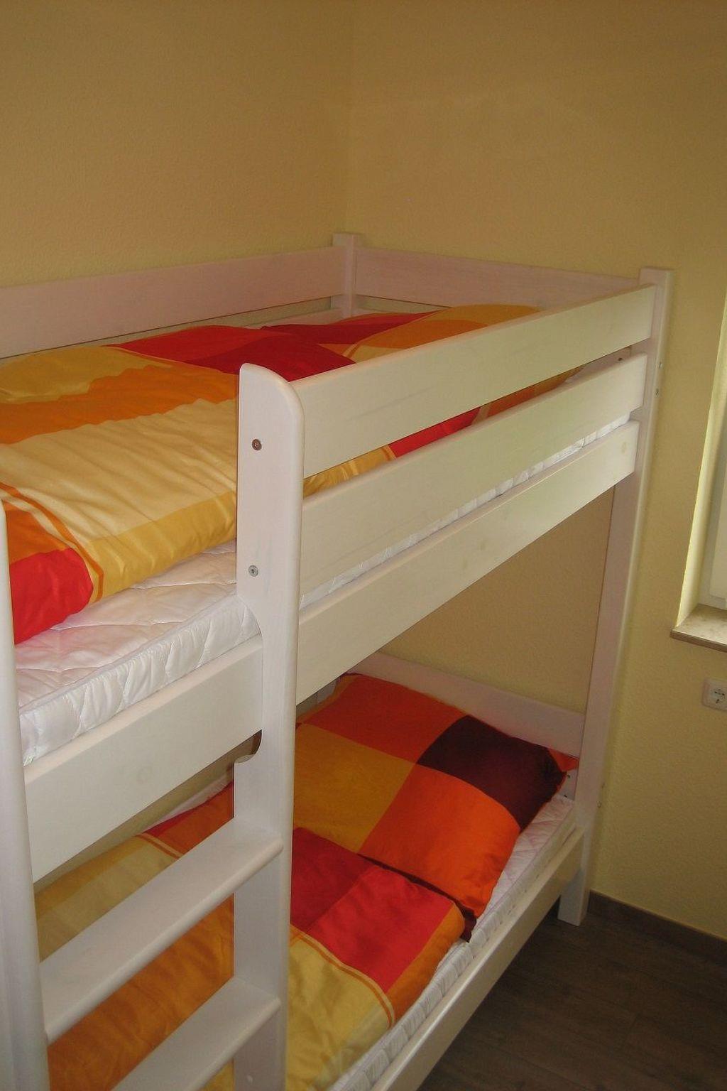 With a living space of approx. 55 m², this chic and modern accommodation offers enough space for up to four people. The spacious living area has a corner sofa, a coffee table and a satellite TV. The open-plan kitchen studio is fully equipped with an oven, ceramic hob, (deep) fridge, dishwasher, microwave, toaster, kettle, coffee machine and a dining table with chairs, leaving nothing to be desired. In one of the two bedrooms there is a double bed (1.60 metres wide), a chest of drawers with mirror and a wardrobe. The children's room has a bunk bed (0.90 metres wide). The bathroom with walk-in shower and WC are separate and each equipped with a washbasin. There is (underfloor) heating in all rooms, internet is not available. You can also use a washing machine free of charge.