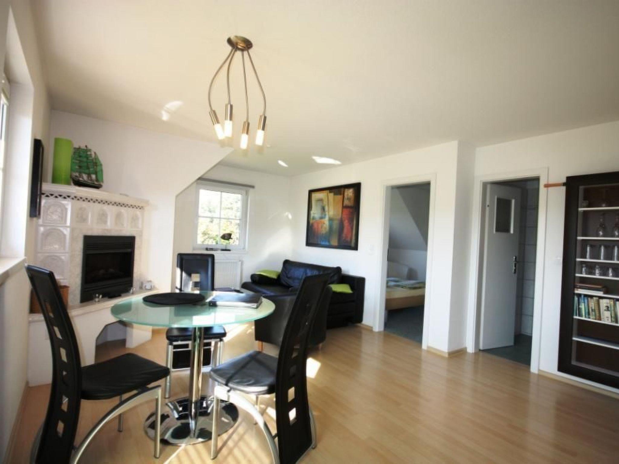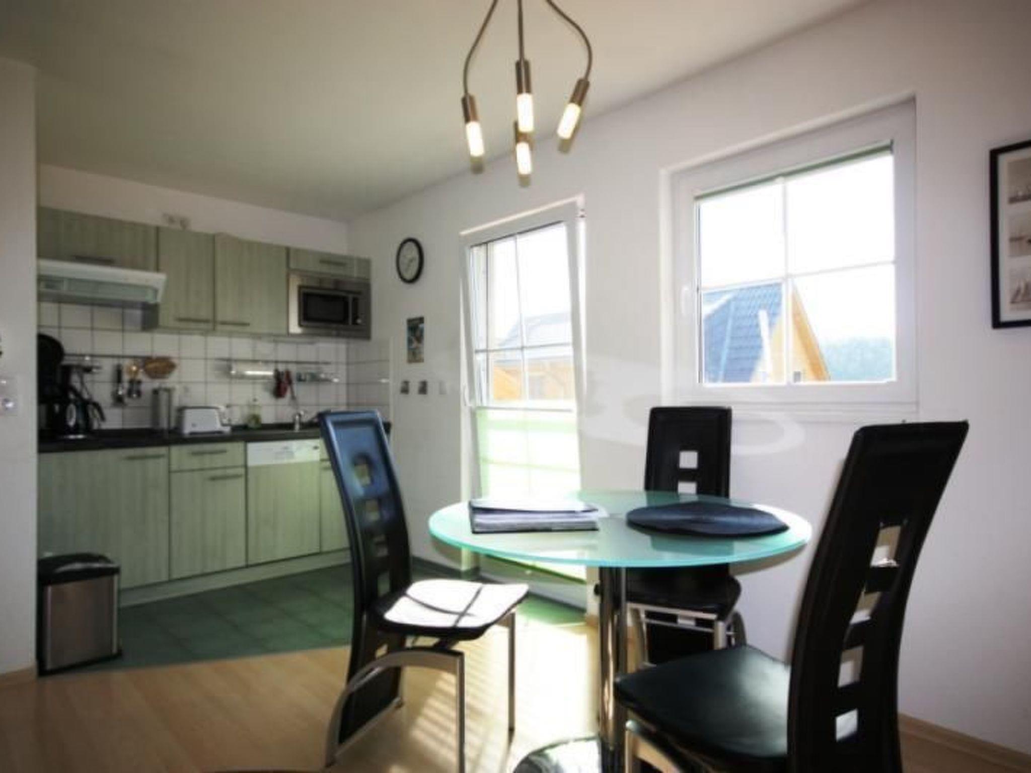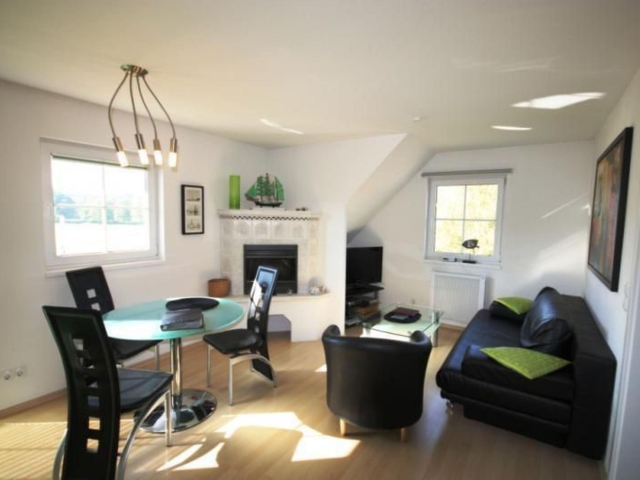 The flats were built in 2007 and furnished in a modern style. The floor and wall coverings, furniture and furnishings are coordinated and give the flat a modern, cosy flair. An electric tiled fireplace in the living room ensures a cosy feeling even on colder days. The flats are ideal for couples, but also for single travellers. Your four-legged family member is welcome. The forest directly adjacent to the property and the nearby dog beach (approx. 500m) offer your pet plenty of exercise.2-room flat on the upper floor with:- 1 bedroom with double bed, - suitable for 1-3 persons + 1 child < 4 years- 1 living room with open-plan fitted kitchen, fireplace- 1 daylight bathroom with shower/WC- 1 large balcony (partially covered) facing south-west with awning or parasol and balcony furnitureSpacious grounds right next to the meadows and forest. View of the meadows and fields from the balconies. Deer also possible in winter. Short, level path to the sandy beach, only approx. 200-300 metres.Our holiday flats on the outskirts of the Baltic seaside resort of Koserow offer you holiday fun right by the sea, in a quiet location away from traffic. Take advantage of the beautiful surroundings for long hikes, bike tours and walks. The ensemble of six holiday homes, each with four holiday flats, was newly built in 2007 and is located in the northern part of Koserow. From the south/south-west facing terraces or balconies you have a view over the meadows towards the Achterwasser. A tree-lined dune path takes you to the fine sandy beach, the pier forecourt with shops and restaurants and the Koserow highlight, the new pier, in less than 5 minutes. Excursion boats run from there during the season, e.g. to Rügen. All shopping facilities, town centre, bicycle hire, playground within walking distance (300 m). From the property you have direct access to the meadow and can take your four-legged family member for a relaxed walk.