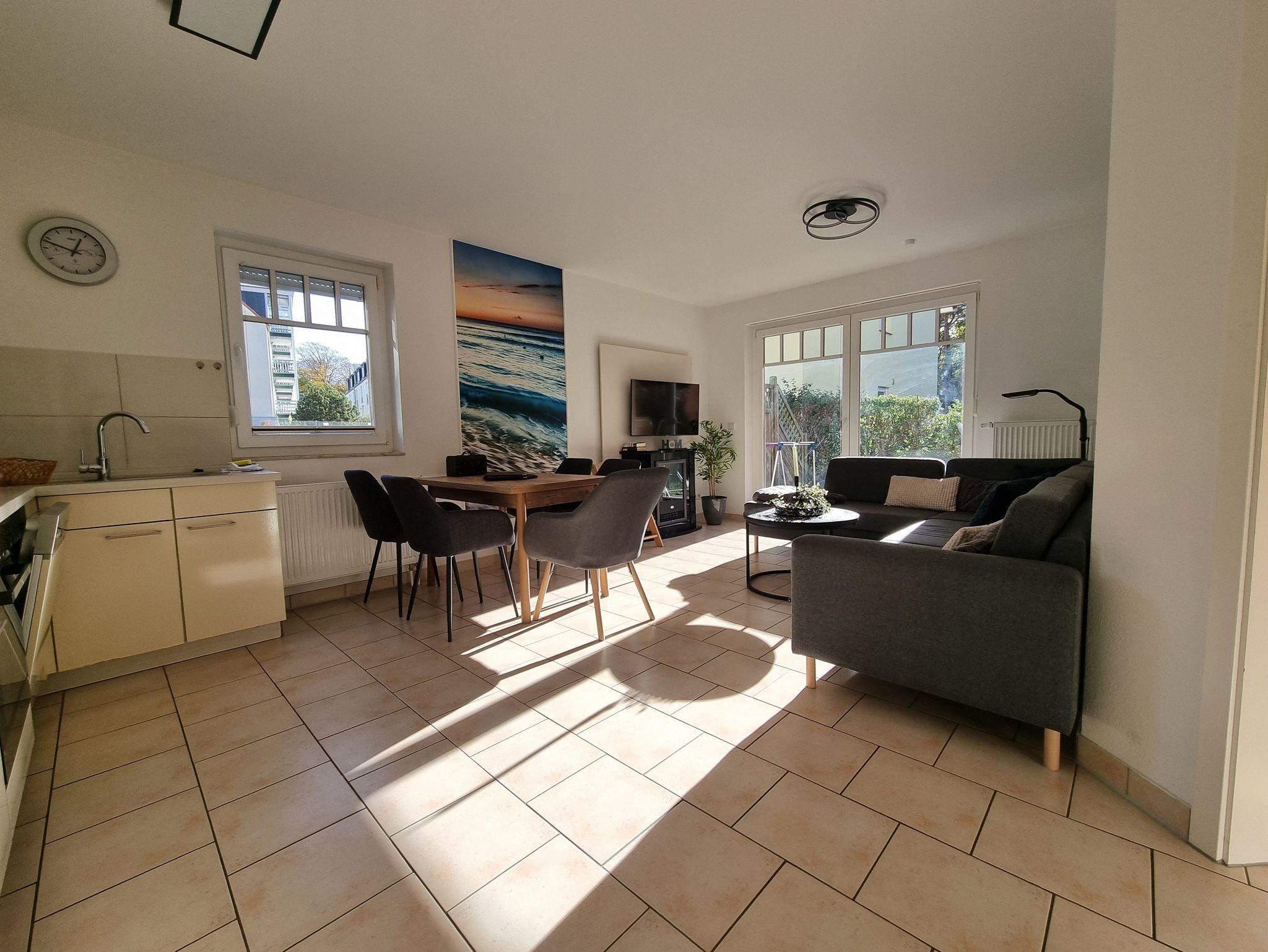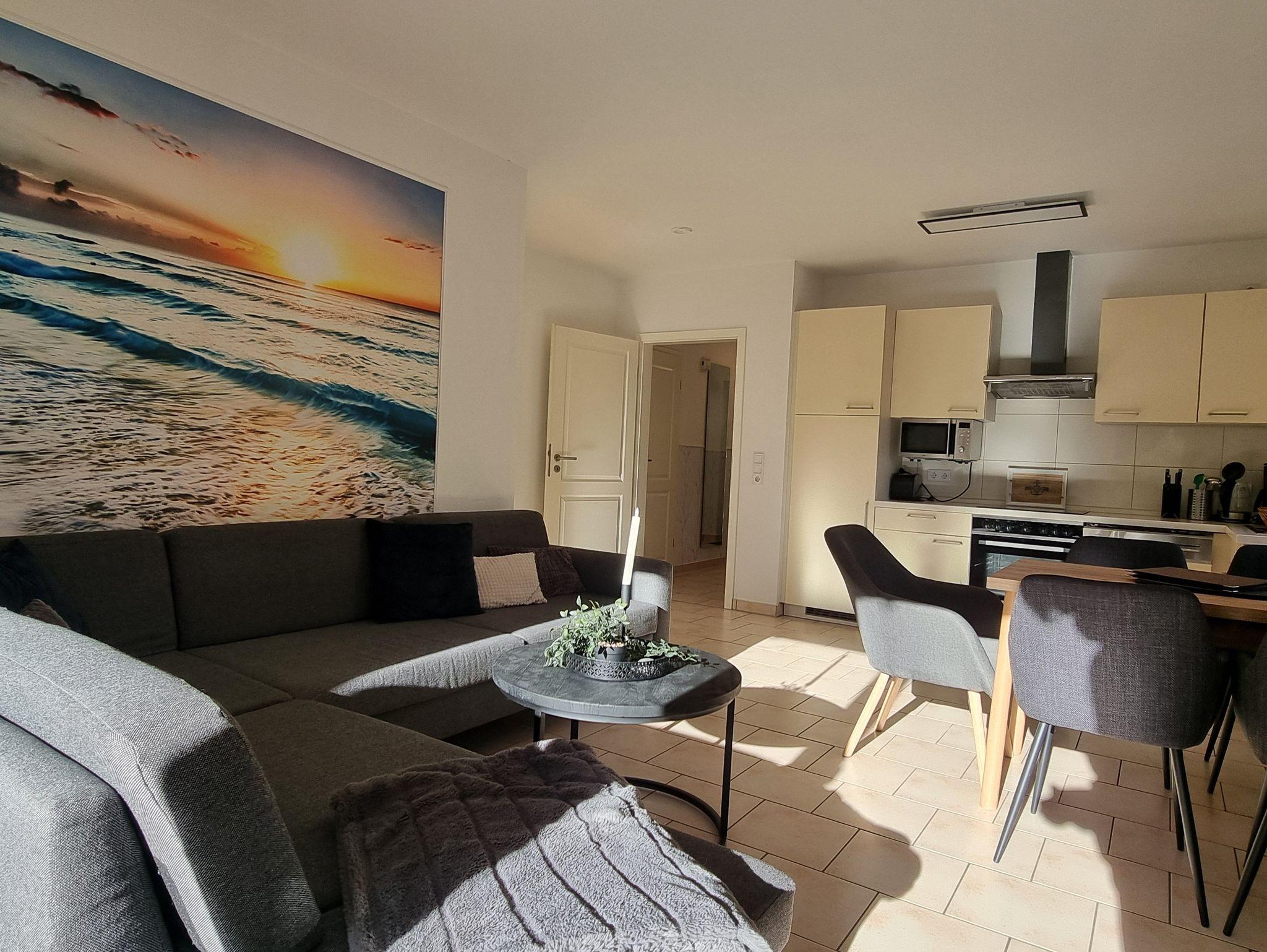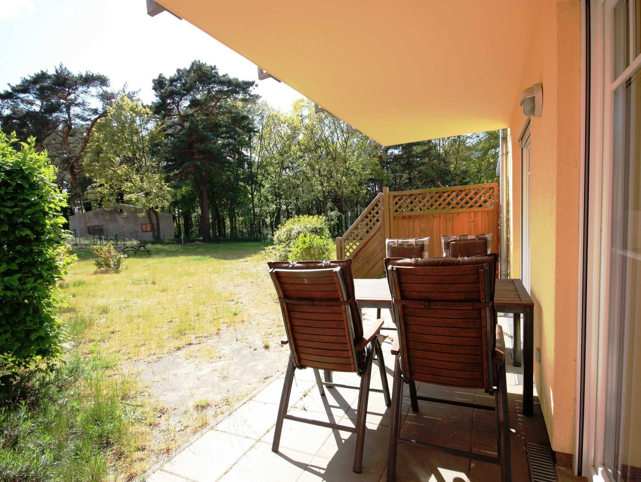 Die Ferienwohnung liegt im Erdgeschoß des Ferienhauses. Sie besteht aus Wohnzimmer, kompl. ausgestatteter Küche, Schlafzimmer und Tageslichtbad. Die Ausstattung der Einbauküche ist neuwertig funktional und qualitativ hochwertig unter anderem mit Toaster, Kaffeemaschine, Backofen mit Heißluft, Kochfeld, Geschirrspüler, Gefrierfach. Große Süd-Terrasse mit Blick auf den Küstenwald, große Spielwiese.
