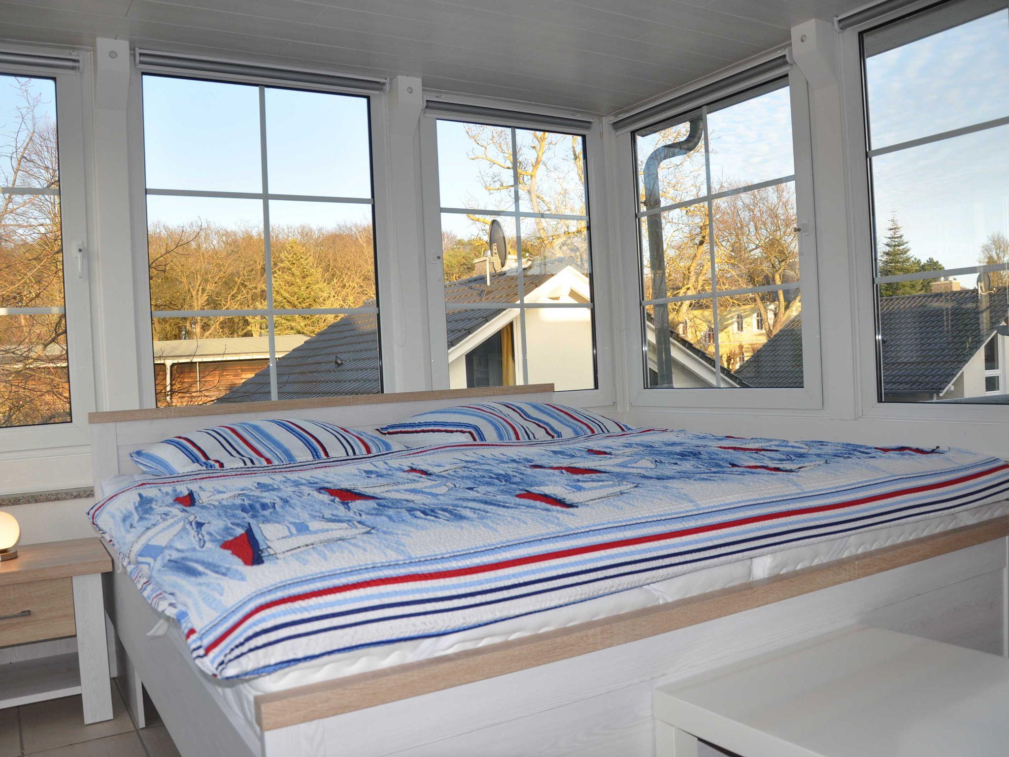 Die 4-Raum-Wohnung Achtern ist im Haupthaus im OG unseres Ferienhauses gelegen und bietet Ihnen mit rd. 120 m² die perfekte Unterkunft für Ihren Urlaub am Meer. Hier finden Sie alles, was Sie für Ihren erholsamen Urlaub benötigen. Die Räumlichkeiten teilen sich in einen kombinierten Wohn-/ Schlafraum mit Schlafsofa, 3 Schlafzimmer (davon eines im Wintergarten gelegen und über Schlafzimmer 2 erreichbar) mit Doppelbett, eine separate Küche mit für bis zu 8 Personen umfangreich ausgestatteter Einbauküche inkl. Elektroherd, Geschirrspüler, Kühlschrank, Kaffeemaschine, Toaster, Wasserkocher und Geschirr, sowie Bad mit Dusche und WC auf. Bestenfalls wohnen hier 6 Personen. Eine Aufbettung für weitere 2 Personen ist möglich.