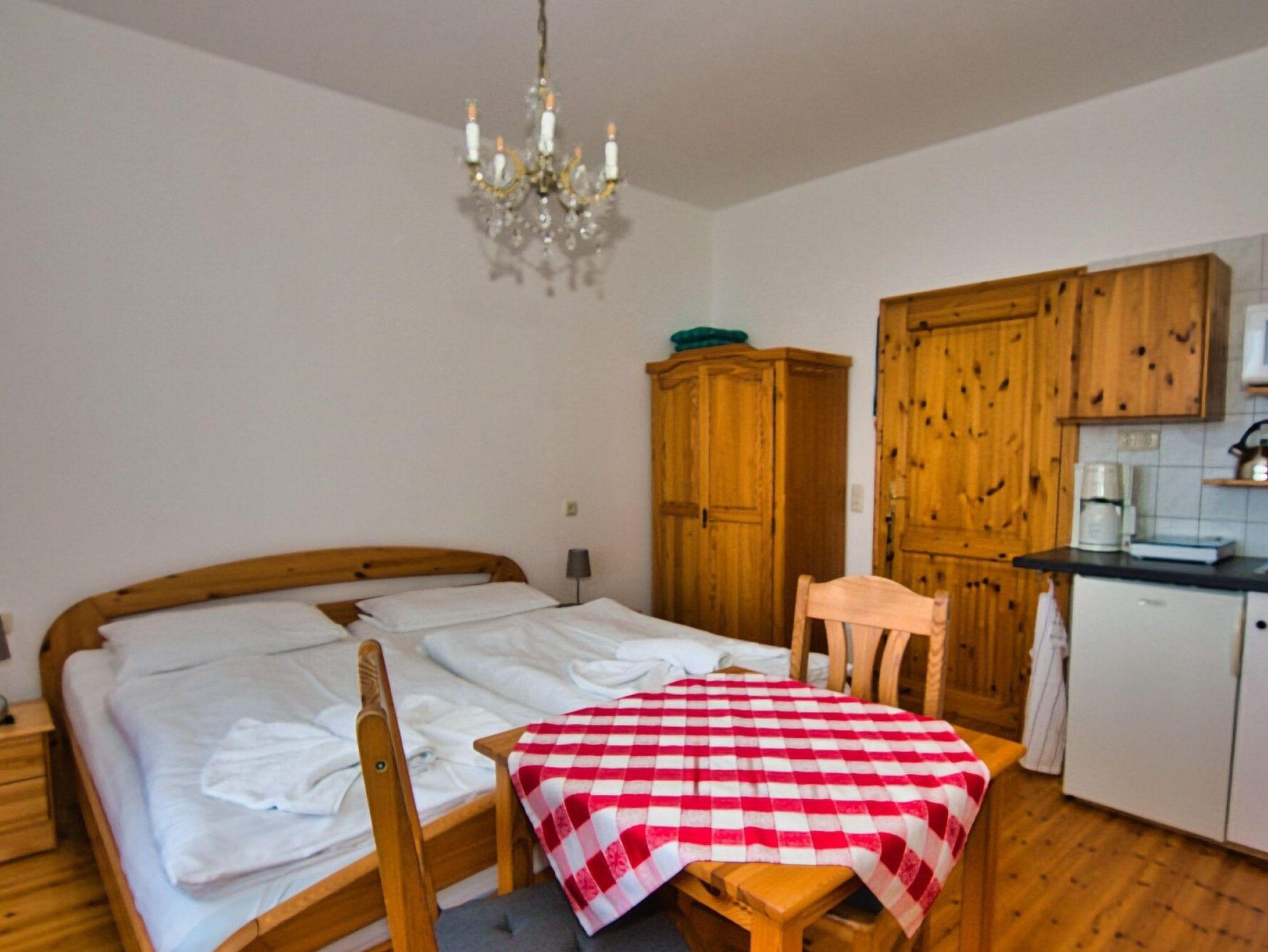 Das Komfort- Doppelbettzimmer besteht aus kombinierten Wohn / Schlafzimmer mit Kaffeeküche (Kaffeemaschine), Ess ? und Sitzecke. Es besitzt ein eigenes Bad mit Dusche (der Fussboden ist gefliest) und ist gut und modern eingerichtet, das Doppelbett ist 1,80 m breit und die Kopf- und Fussteile sind separat verstellbar. Heizung und ein Flachbild -TV sind vorhanden. Das Zimmer ist für Allergiker bestens geeignet. Das Komfort-Doppelzimmer ist gedielt und Hochglanz mit Speziallack versiegelt und es kann wahlweise sektionsweise stromlos geschaltet werden.Bitte bringen Sie für sich Hausschuhe mit.