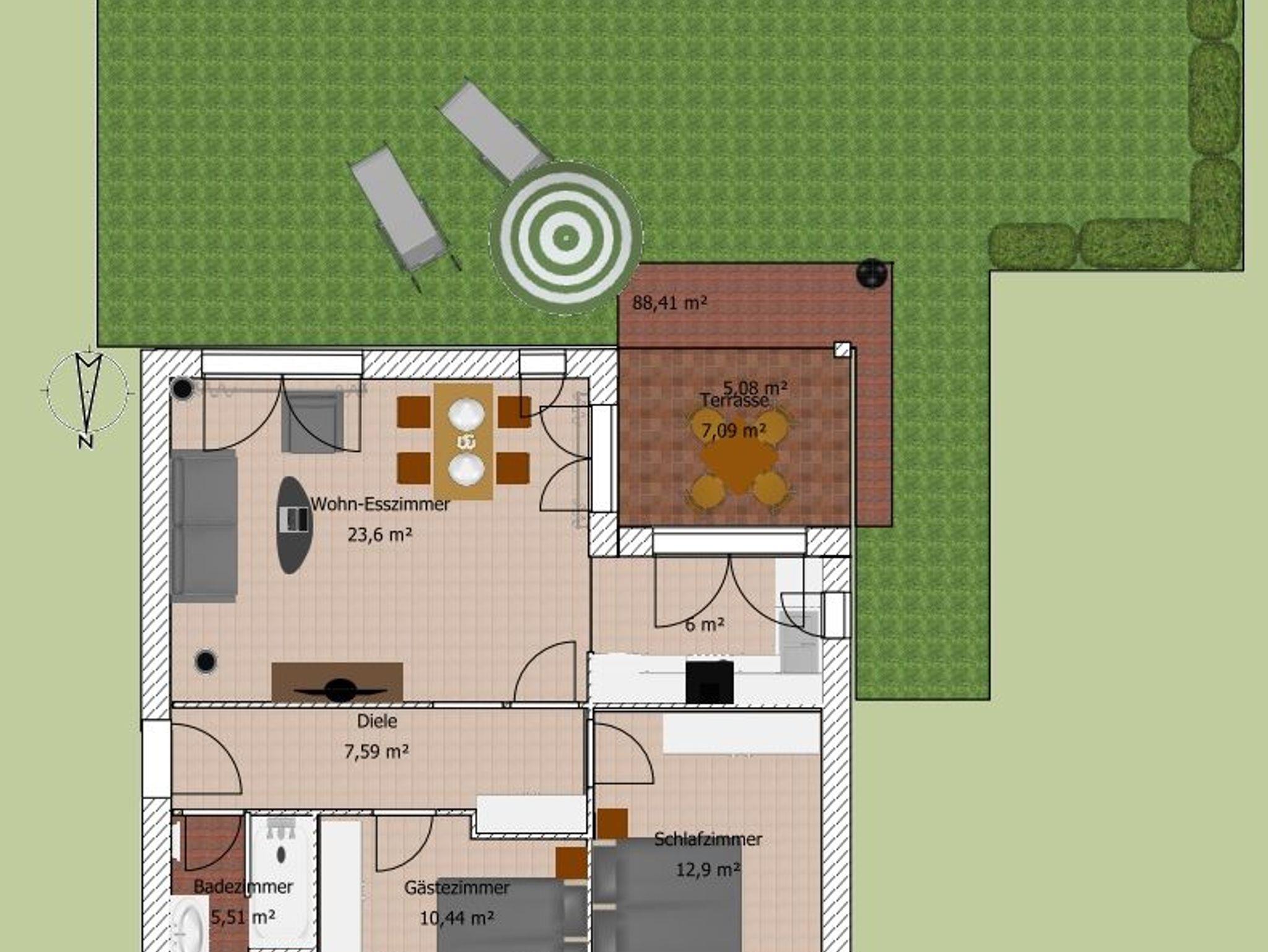 Die Ferienwohnung (WHG1) liegt an einer Sackgasse, nahe dem Kurplatz, ruhig und doch zentral in einer kleinen Ferienanlage(8WE) gelegen. Es steht eine überdachte Terrasse, ein Strandkorb sowie einen überdachter Fahrradabstellplatz zur Verfügung. Ein schöner Spielplatz ist direkt in der Nähe. Zur Wohnung gehört ein ausgewiesener Parkplatz auf dem Grundstück.