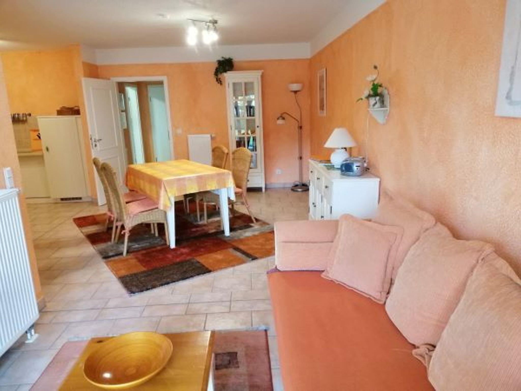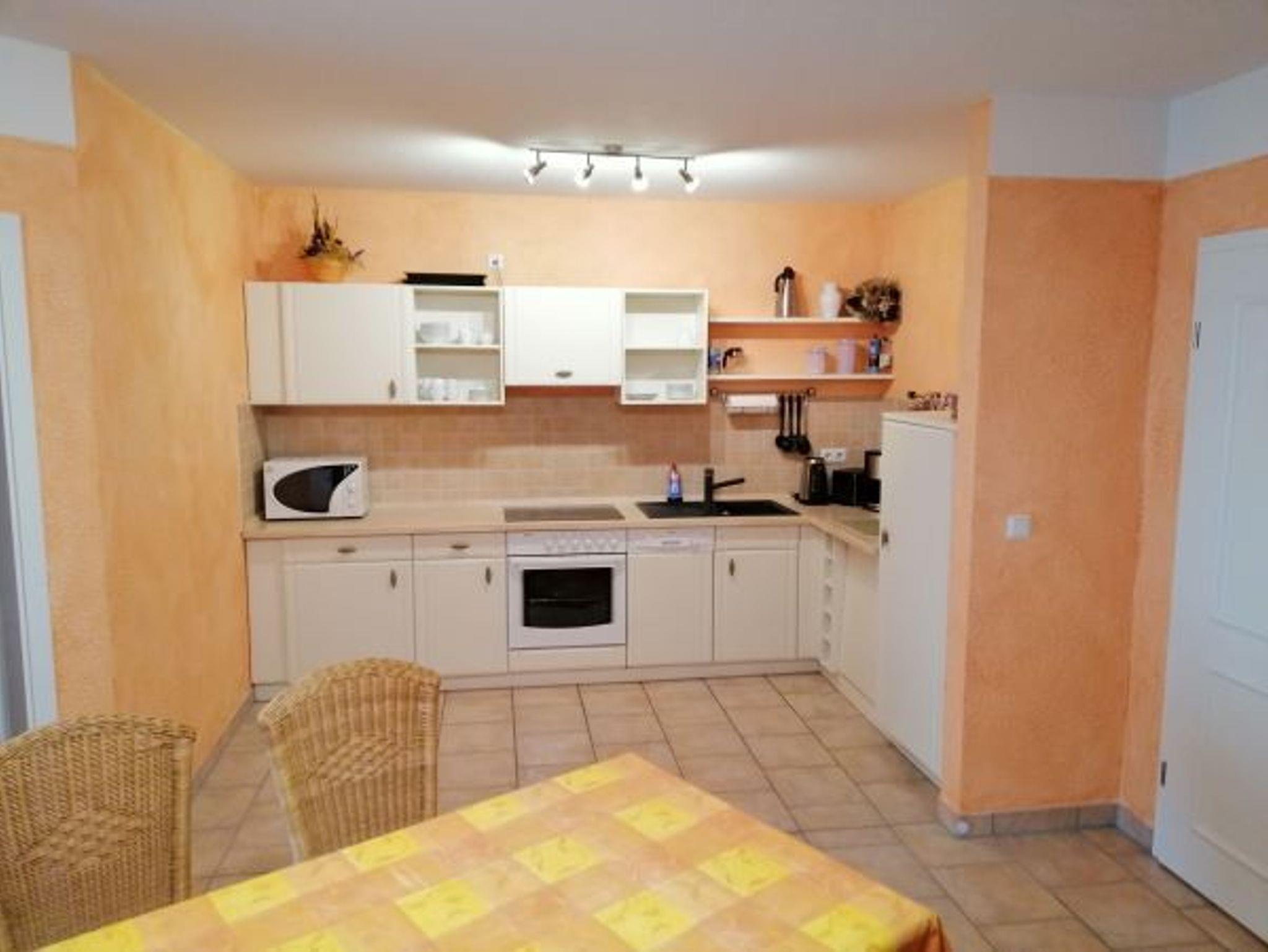 Zur Ferienwohung gehört ein PKW-Stellplatz (Nr. 4) u. Radabstellraum. Die Wohnung ist komplett ausgestattet mit Wohn.-u. Eßbereich(Schlafcouch), Einbauküche (Spülmaschine, Umluftherd, Cerankochfeld, Mikrowelle,großer Kühlschrank mit Gefrierfach, Toaster, Kaffeemaschine, Wasserkocher,Eierkocher), Schlafzimmer mit Doppelbett, Bad mit Dusche. Abstellraum(2.Kleiderschrank). Terrasse (Südseite)mit Tisch, 4 Gartenstühle, Sonnenschirm u. Sonnenliege! Sonstige Ausstattung:WLAN, Kabel-TV, Radio/CD, Spielesammlung, Staubsauger, Bügeleisen,Wäscheständer. Ein Kinderreisebett u. Hochstuhl sind vorhanden (Bitte Rücksprache) Bettwäsche und Handtücher bitte selbst mitbringen! Bei dem Objekt handelt es sich um eine Nichtraucherwohnung!