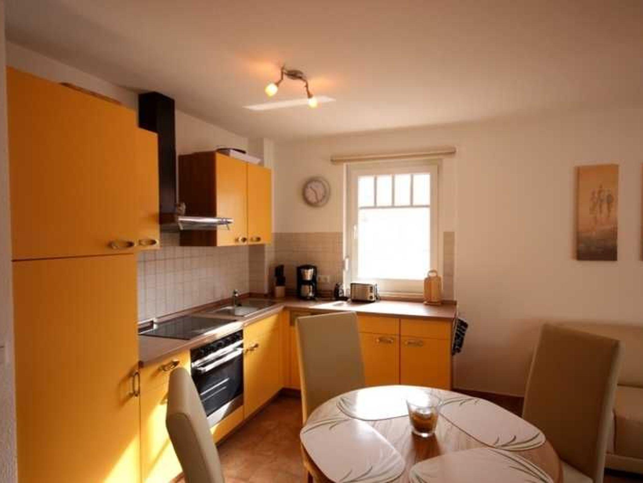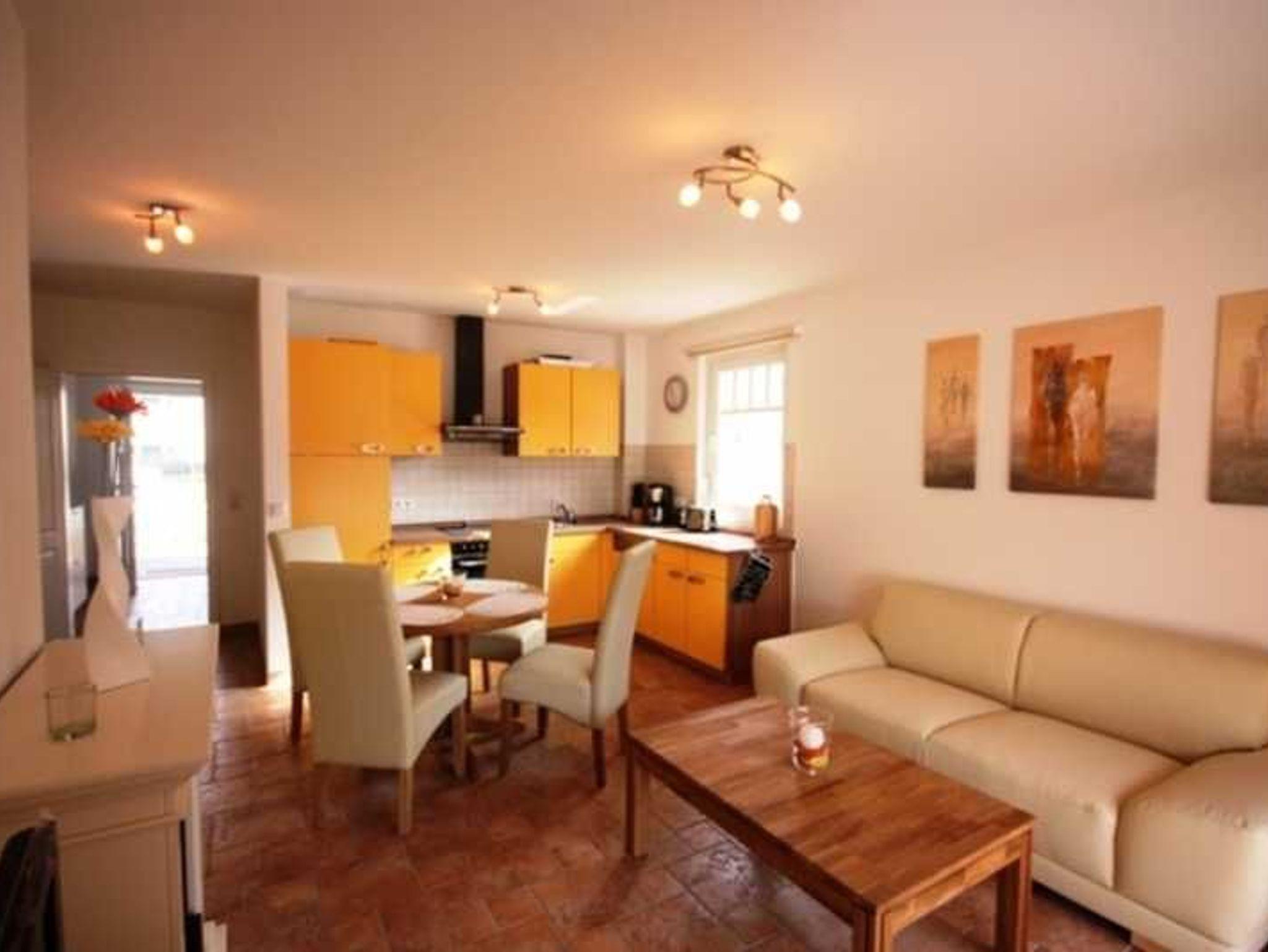 Die Ferienwohnung liegt im Erdgeschoß des Ferienhauses. Sie besteht aus Wohnzimmer, kompl. ausgestatteter Küche, Schlafzimmer und Tageslichtbad mit Waschmaschine. Die Ausstattung der Einbauküche ist neuwertig funktional und qualitativ hochwertig unter anderem mit Toaster, Kaffeemaschine, Herd, Cerankochfeld, Geschirrspüler, Gefrierfach. Große Süd-Terrasse mit Blick auf den Küstenwald und eigenem Gartenabschnitt, große Spielwiese, Grill. Diese Ferienwohnung ist mit einer kleinen privaten Sauna ausgestattet, die gegen Gebühr zugebucht werden kann. Eine Waschmaschine für den Eigengebrauch vervollständigt die Ausstattung.