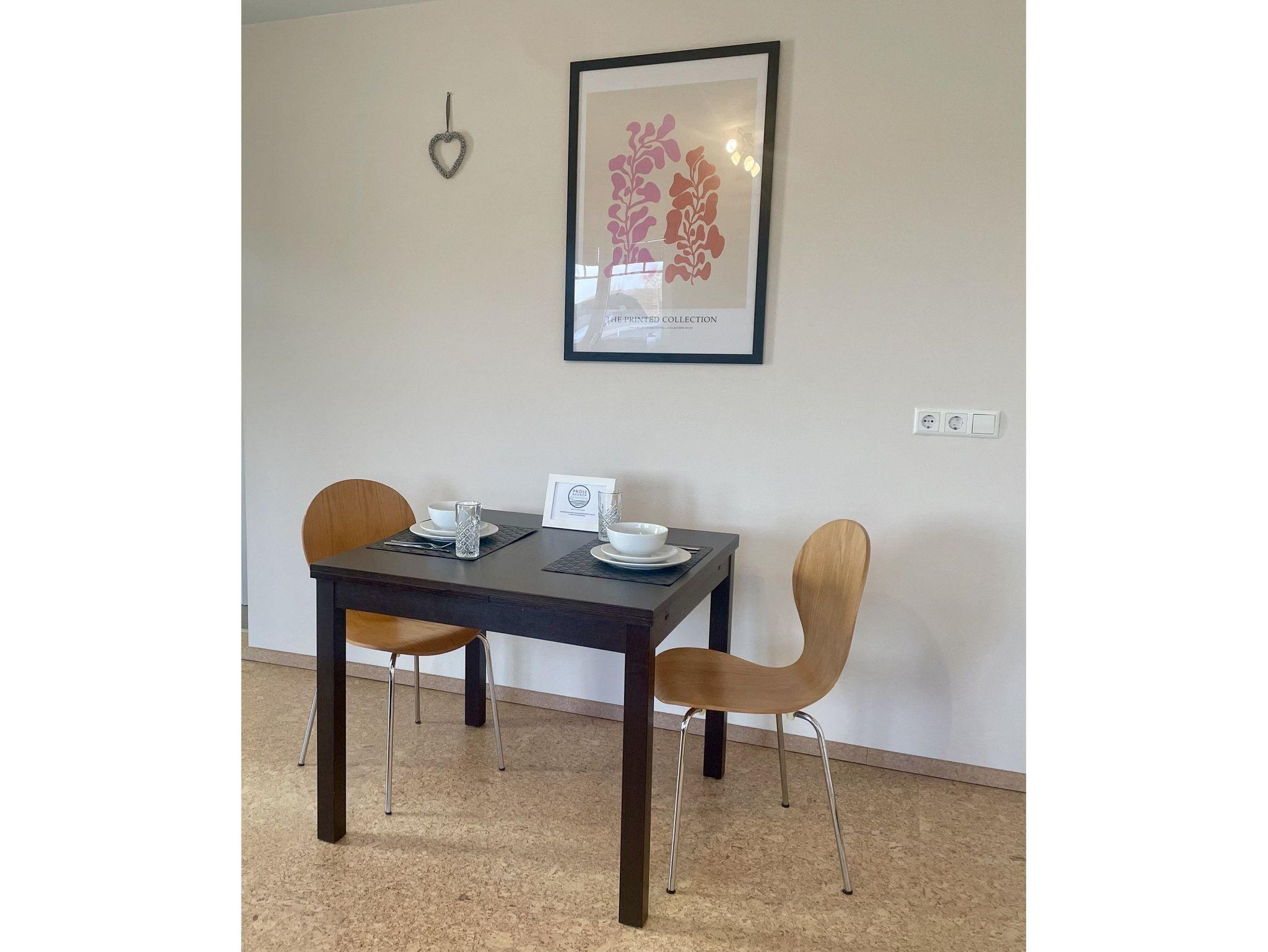 An den Fenstern gibt es Plissees, mit denen Sie die Wohnung abdunkeln können. Außerdem steht Ihnen ein schneller Internetzugang zur Verfügung, der perfekt zum Surfen, aber auch, falls Sie während des Aufenthaltes ein wenig arbeiten möchten. Zur Wohnung gehört ein Parkplatz direkt am Haus.