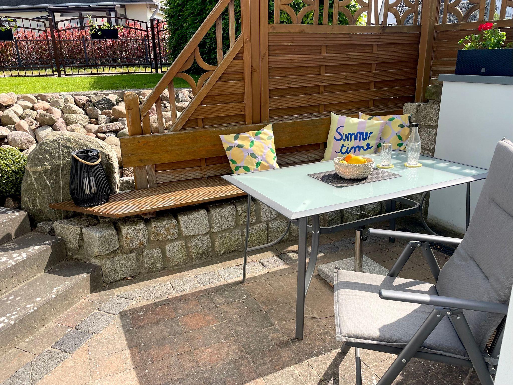 Unsere Unterkünfte sind ein guter Ausgangspunkt für tolle Tage am Meer und für Aktivitäten auf der Sonneninsel Usedom. Stellen Sie Ihren Pkw nach Anreise auf dem eigens für Sie reservierten und umzäunten Parkplatz ab. Von dort aus gelangen Sie über die Terrasse, die mit einem Tisch und Gartenmöbeln für Sie zur Verfügung stehen, in die Ferienwohnung Ankerplatz. Zudem schließt sich eine Gartenfläche an die Ferienwohnung an, mit einem abschließbaren Fahrradhaus. Dort finden Sie auch einen Grill, den Sie gerne im Freien verwenden können.