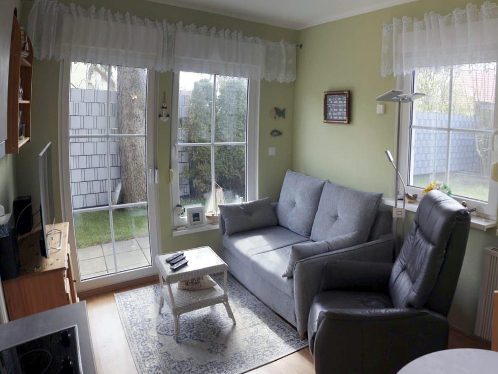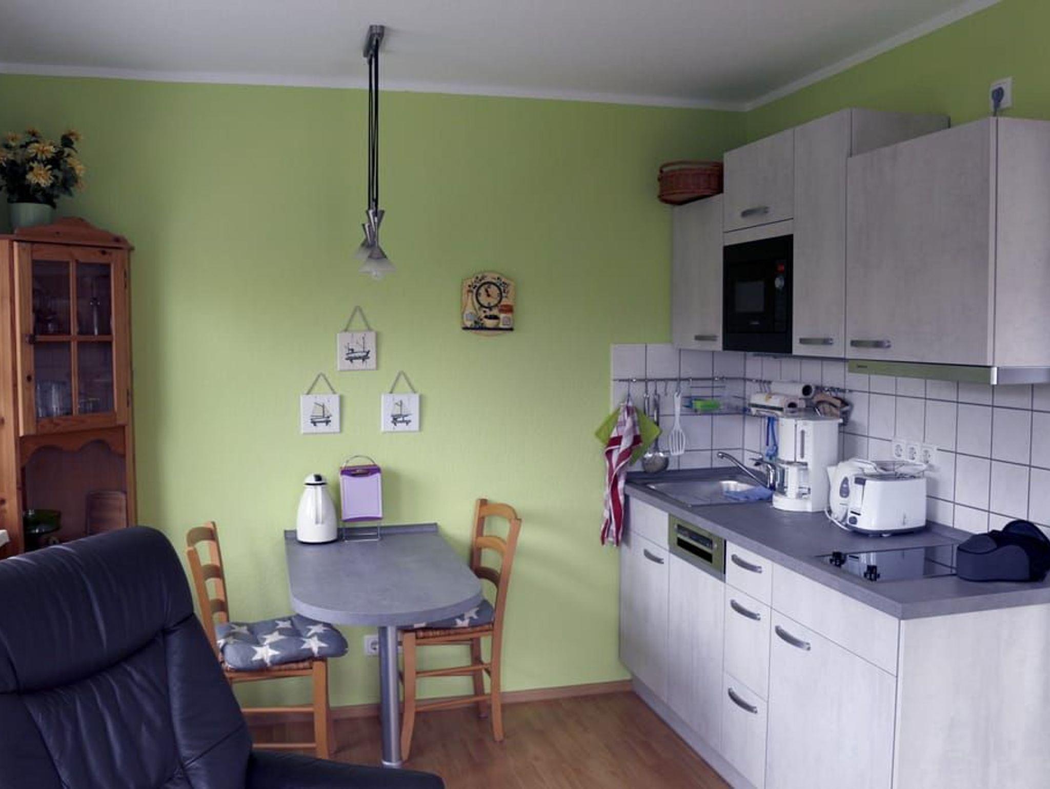 Die kleine Wohnung (30 m²) ist in einer Ferienwohnanlage gelegen und verfügt über eine komfortable Ausstattung mit Dusche/WC, Wohnraum mit gemütlicher Couchgruppe (Schlafcouch), TV, Radio, integrierter Küchenzeile mit Geschirrspüler und vorgelagerter möblierter Terrasse (Südseite) sowie über ein Schlafzimmer mit Doppelbett. Sie ist Zentral beheizt und für 2 Personen geeignet. Bettwäsche und Handtücher können gemietet werden. Ein Wohnungseigener PKW-Stellplatz und 2 Fahrrädern für die Gäste sind vorhanden, liebe Haustiere herzlich willkommen.