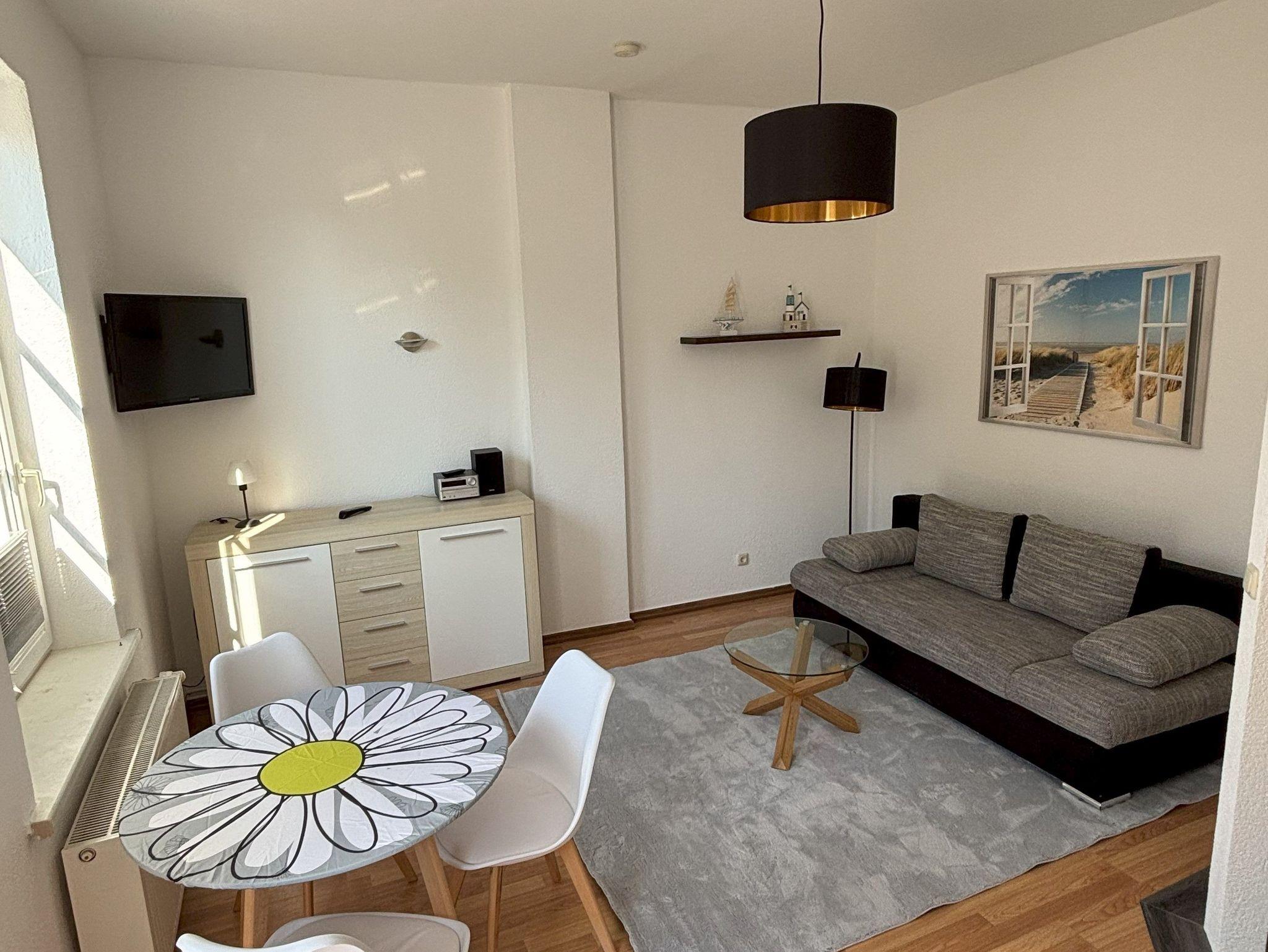 Unsere Ferienwohnung Genua ist ebenerdig im Apartmenthaus unseres Ferienobjektes gelegen und im Jahr 2025 neu aus der Zusammenlegung von 2 kleinen 1-Raum-Apartments entstanden. Nun präsentiert sie sich als kleine, feine 2-Raum-Wohnung mit gemütlichem Wohn-/ Essbereich, einem separatem Schlafraum, Tageslichtbad und Terrasse.