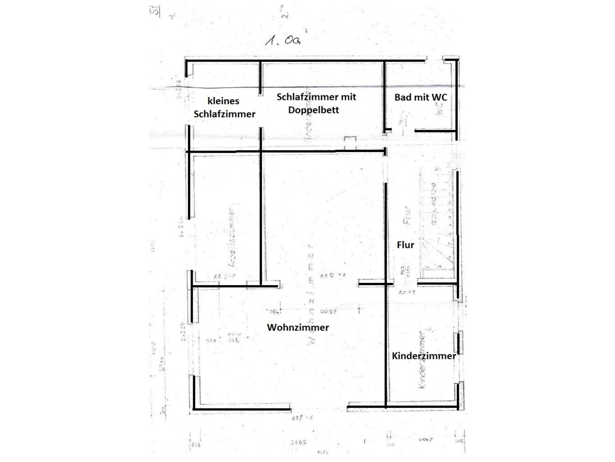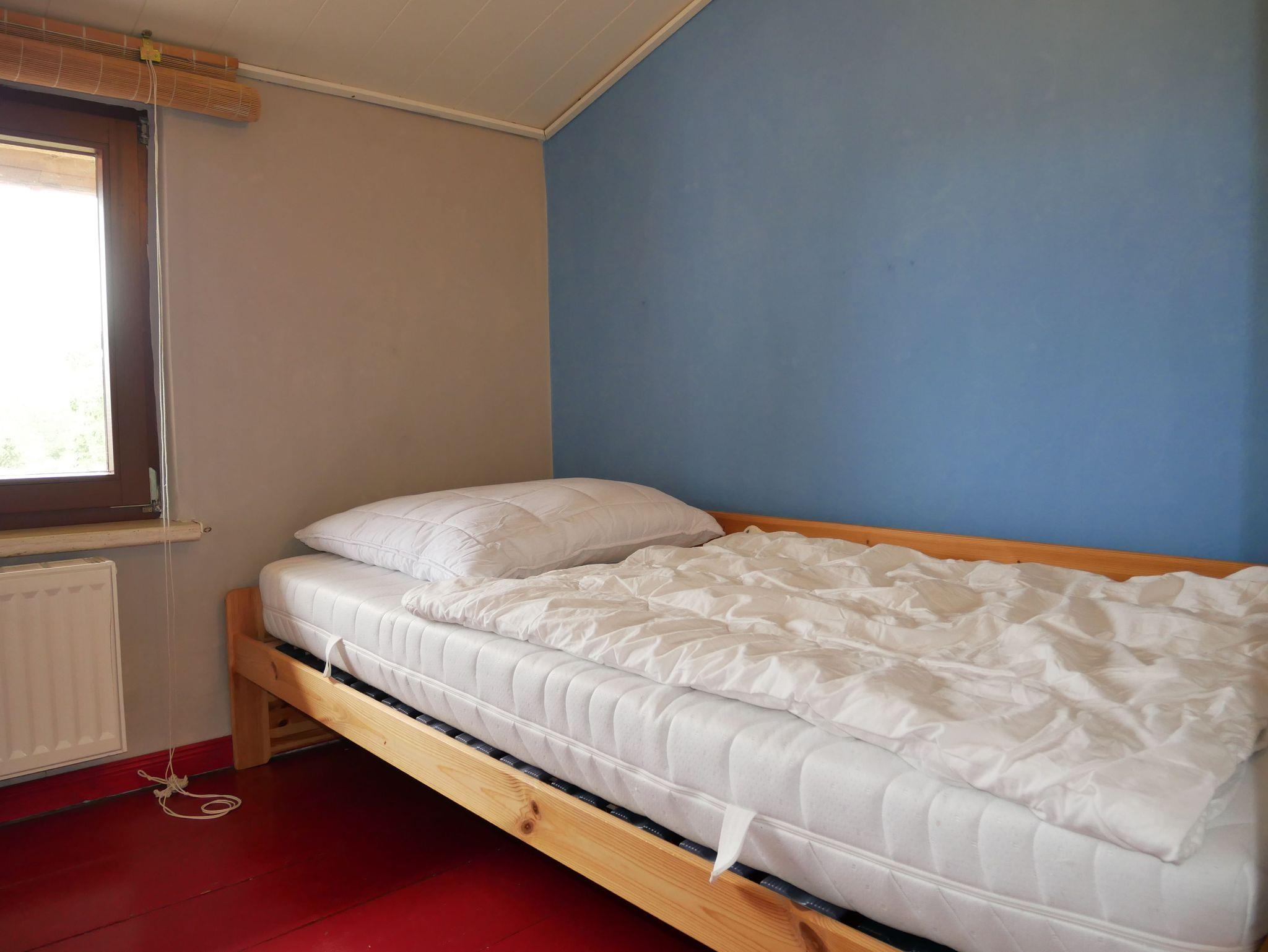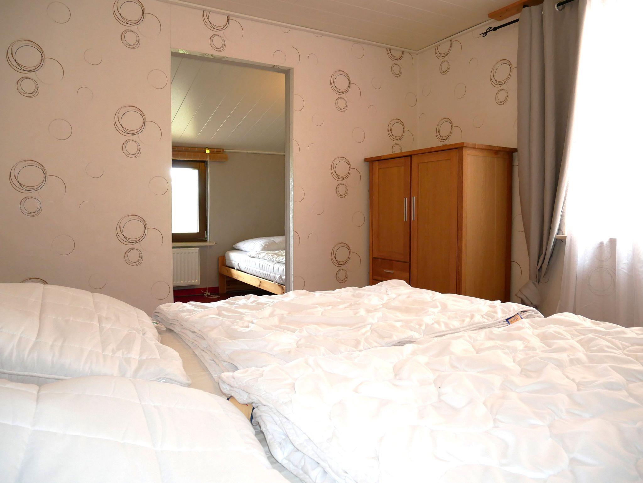 Über eine Treppe gelangen Sie ins Obergeschoß, wo sich ein 30 qm großes Wohnzimmer mit gemütlicher Couch und großem Flat-TV befindet. Das zweite Schlafzimmer im Obergeschoß ist ebenfalls mit einem Doppelbett, Kleiderschrank und einem kleinen Nebenraum mit Einzelbett, Tisch und zusätzlichem Kleiderschrank ausgestattet ? dieser Raum ist offen, nicht durch eine Tür getrennt. Das dritte Schlafzimmer bietet ein Einzelbett, das nur 1,80 m lang ist und ein Kleiderschrank. Das Badezimmer im Obergeschoß verfügt über eine Toilette und Waschbecken.