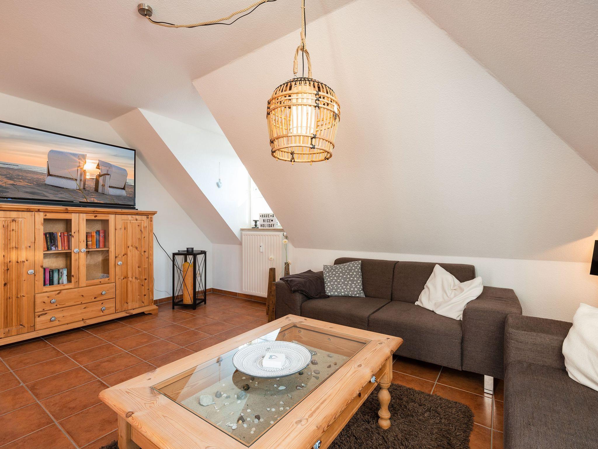 Die Ferienwohnung Sonnendeck im südlichen Bereich des Seebades Koserow bietet auf 84 m² einen idealen Rückzugsort für bis zu vier Personen. Nur 10 Gehminuten trennen die Gäste vom feinsandigen Strand, während das lebendige Zentrum mit Gastronomie und Shoppingmöglichkeiten in etwa 7 Gehminuten erreichbar ist. Die Wohnung verteilt sich über zwei Ebenen im 1. Obergeschoss und punktet mit zwei einladenden Schlafzimmern eines mit Doppelbett und eines mit zwei Einzelbetten unter dem Dach.