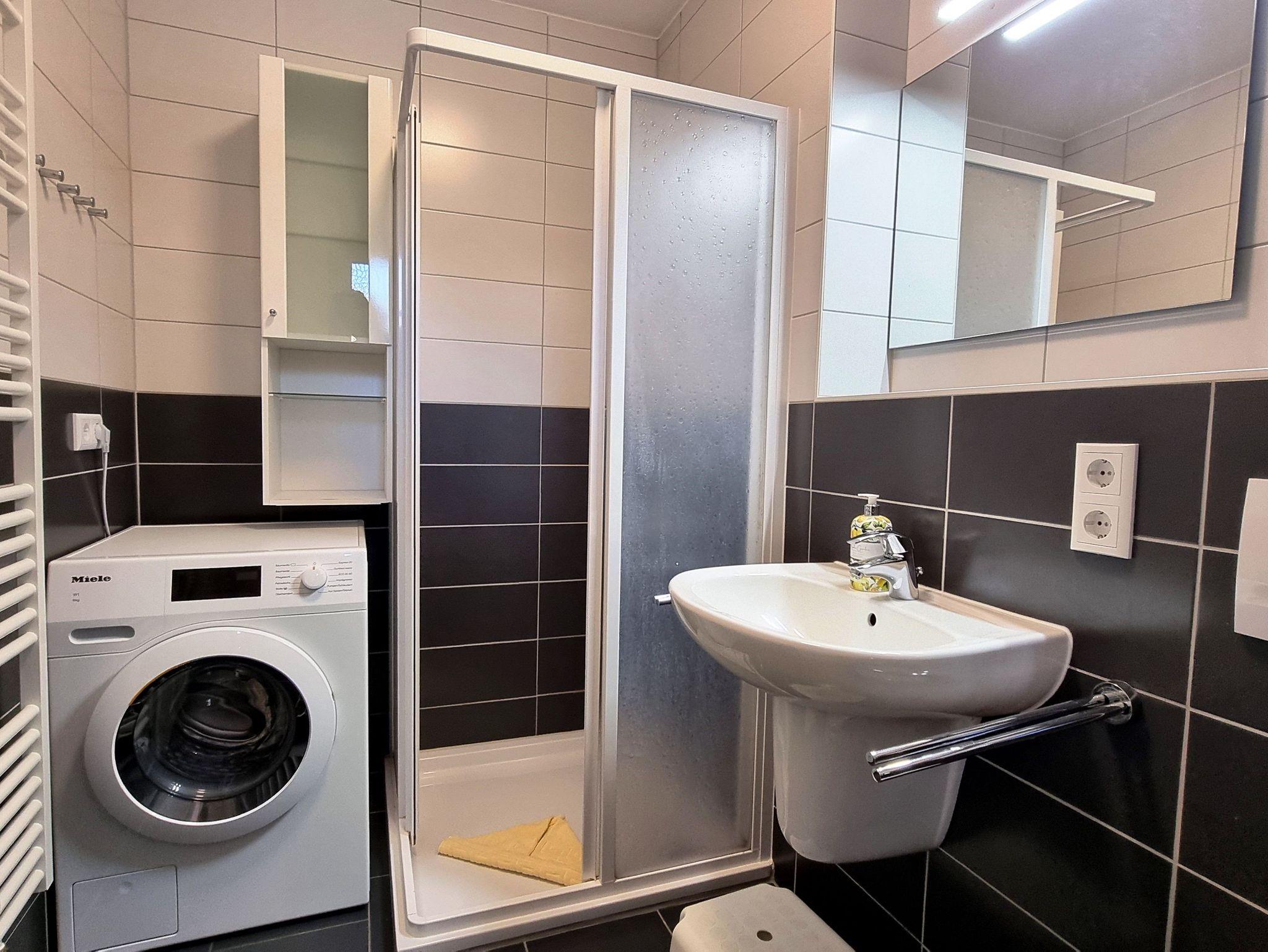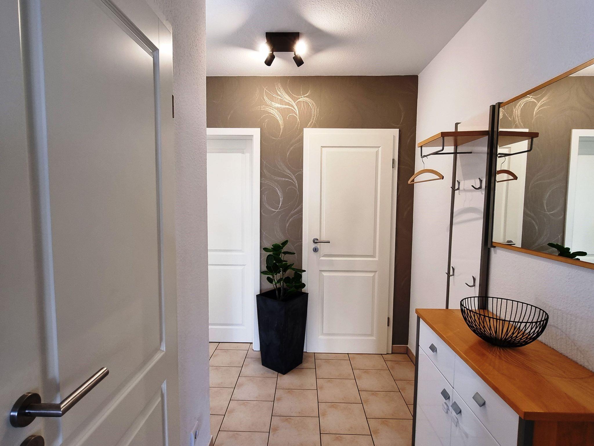 Die Wohnung verfügt über ein Schlafzimmer mit Doppelbett und ein Schlafzimmer mit zwei Einzelbetten. Die Wohnung ist ideal geeignet für Familien und Hundeliebhaber.
