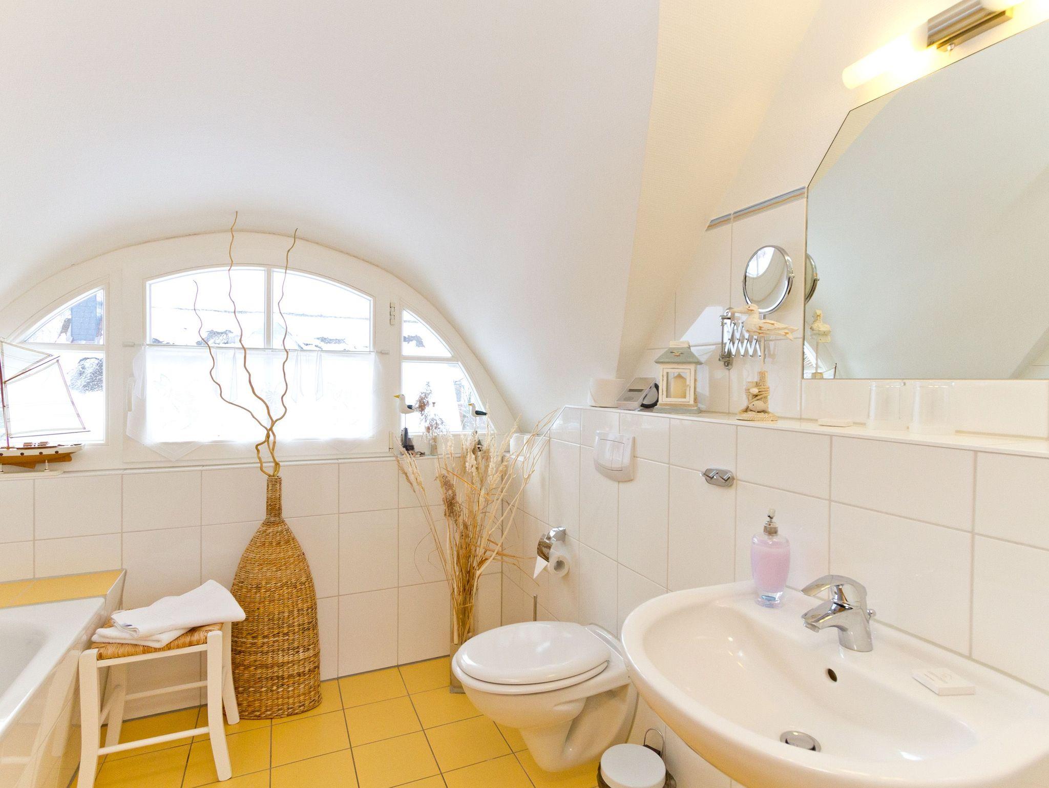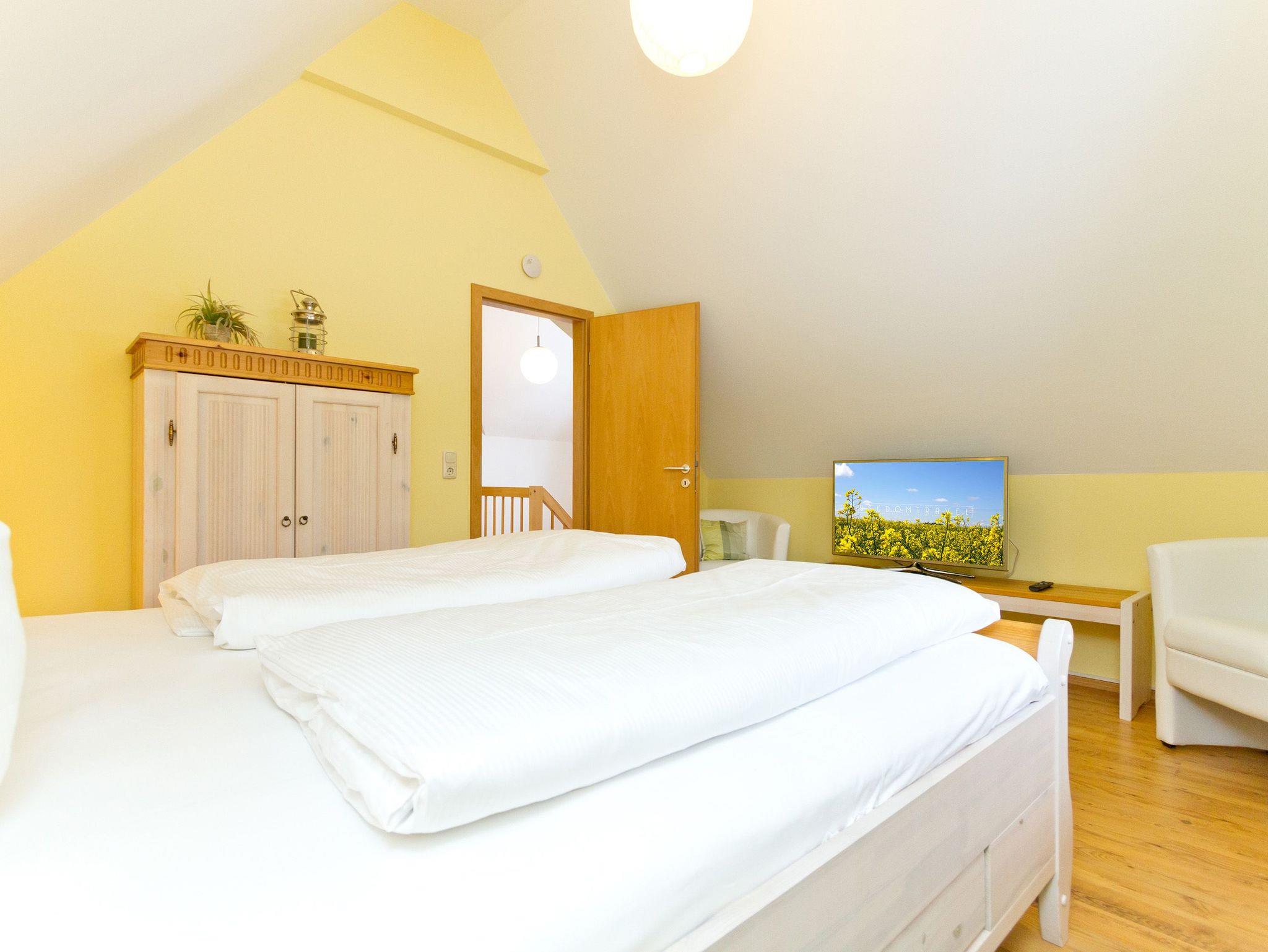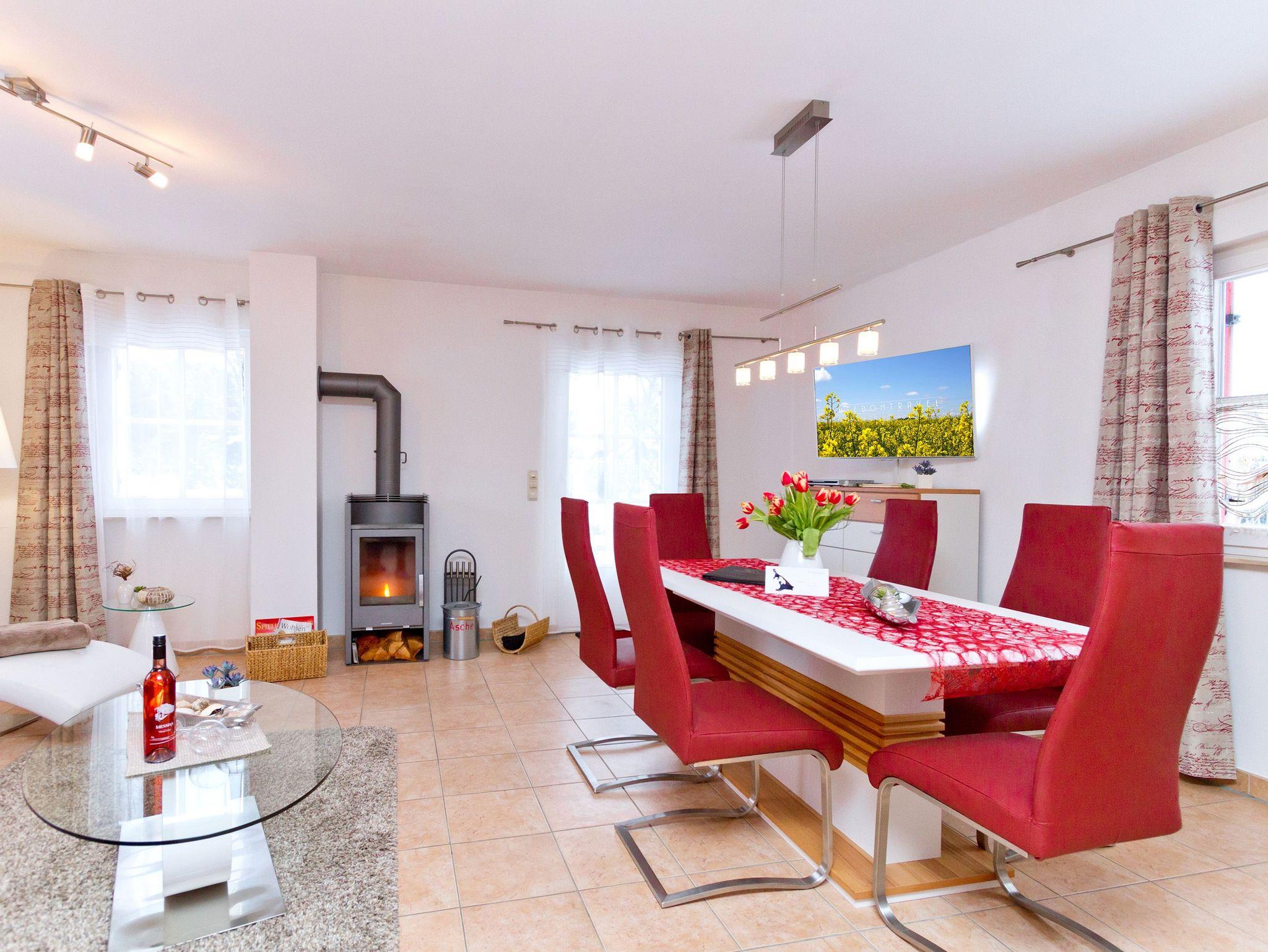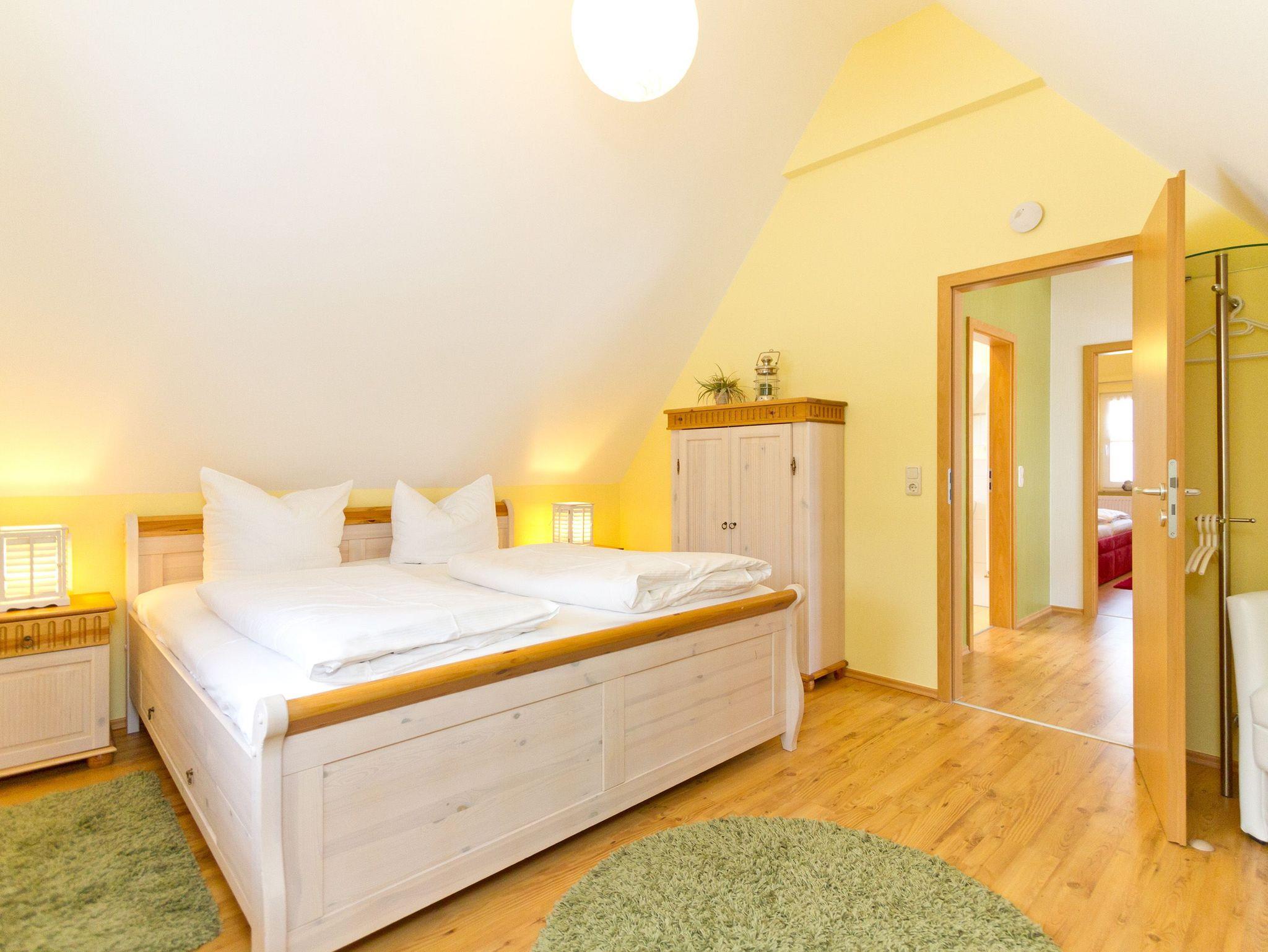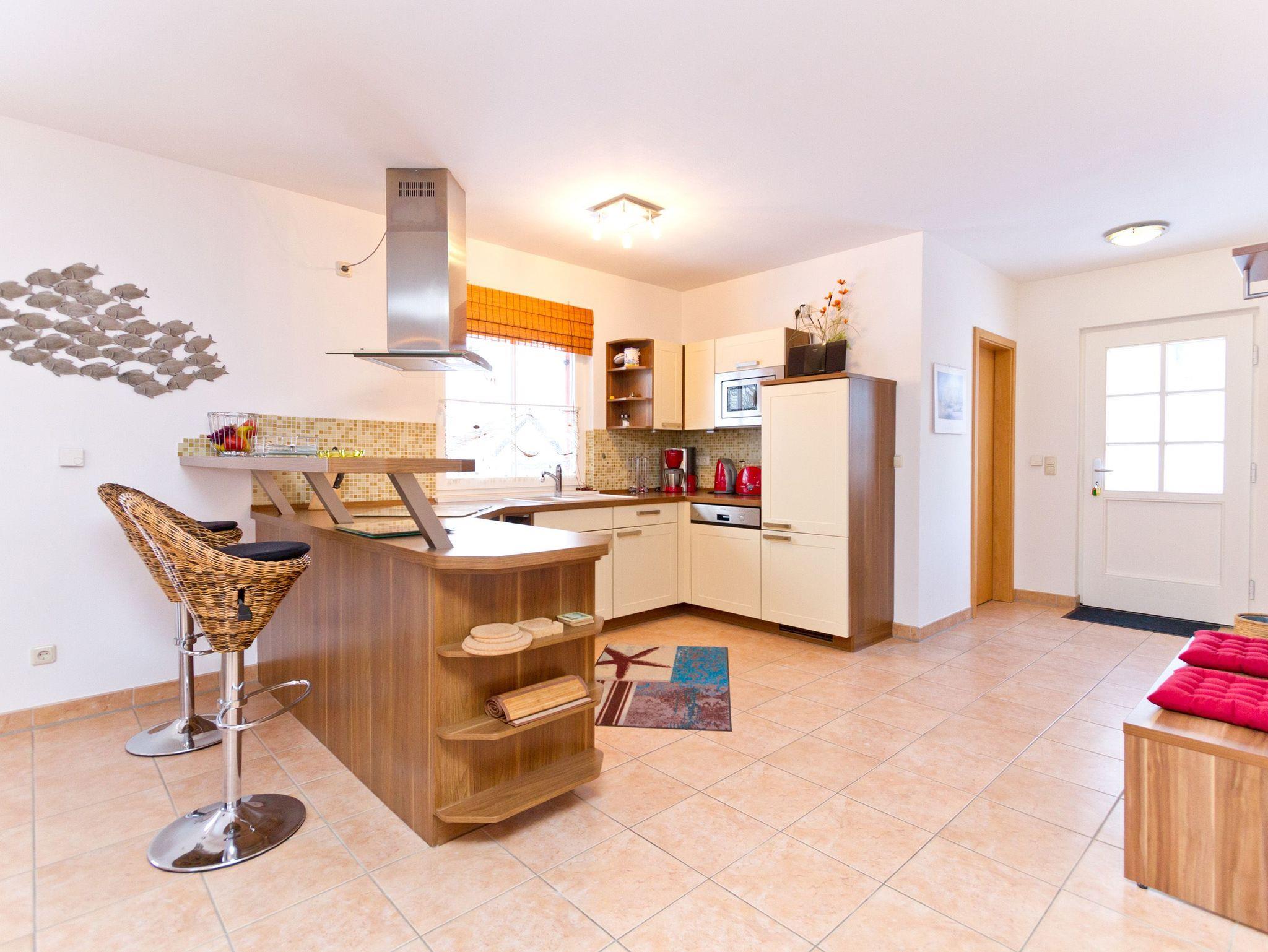 Das Ferienhaus unter Reet bietet auf 2 Etagen (100 qm) 5 Personen (inklusive Kleinkind) genug Platz für einen entspannten Usedomurlaub. Geschmackvoll eingerichtet, finden Sie im Erdgeschoss den Wohnbereich mit Kaminofen, der besonders in den kalten Tagen kuschlige Abende verspricht. Die angeschlossene, offene Küche ist komplett ausgestattet. Zum Relaxen empfiehlt sich ein Gang in die Sauna, die im Bad integriert ist. Im Obergeschoss des Hauses finden Sie zwei Schlafzimmer mit Doppelbetten und ein weiteres Bad. Auf der großzügigen Terrasse mit Strandkorb genießt man die Usedomer Sonne. Die Erstausstattung Bettwäsche und Handtücher steht für Sie bereit. Für Kleinkinder können ein Kinderreisebett und ein Hochstuhl separat gebucht werden. Als Aufbettungsmöglichkeit für die 5. Person dient die Schlafcouch im Wohnzimmer.