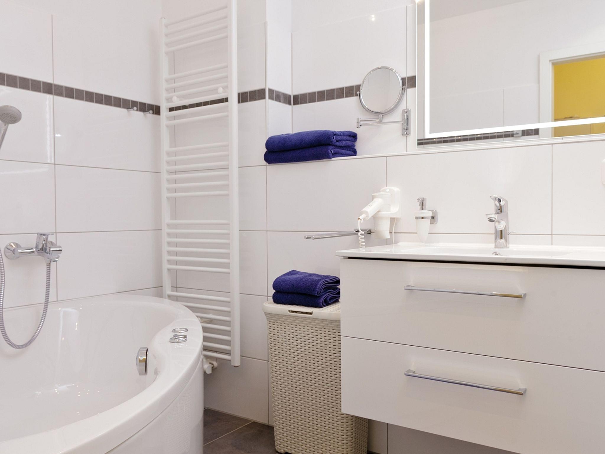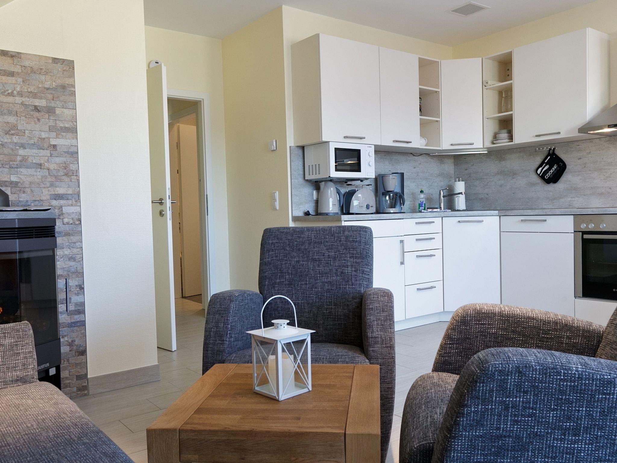 Zu jeder Wohnung gehört ein reservierter Stellplatz. Die Nutzung von Einrichtungen des Vineta Ferienparks wie Schwimmbad, Sauna, Tennisplatz, Grillplatz und Tischtennisplatte ist im Mietpreis enthalten.