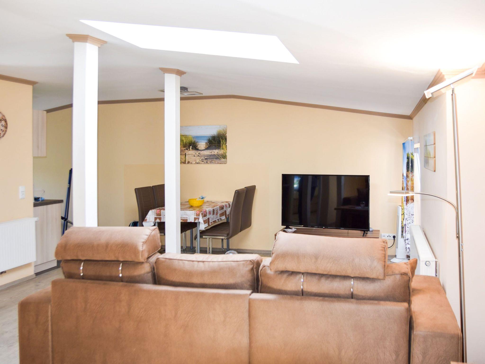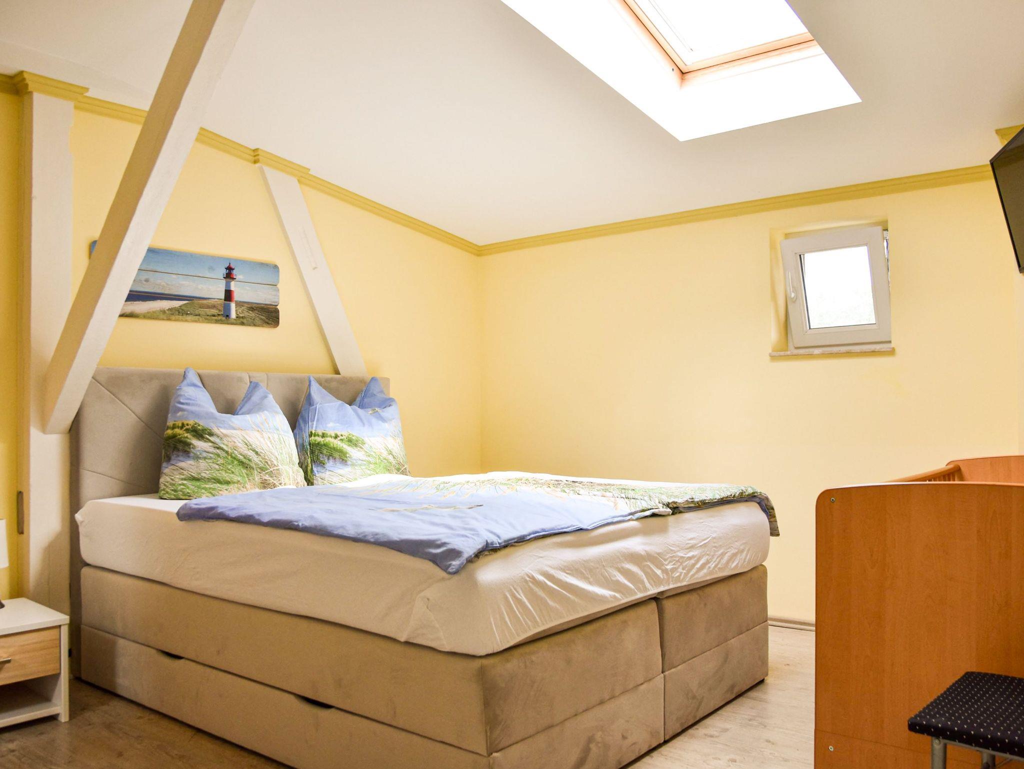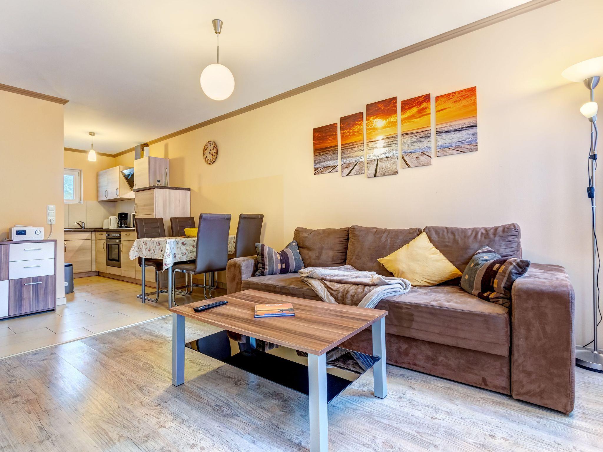 Die gemütliche 2-Raumwohnung für bis zu 4 Personen (plus ein Kleinkind bis 2 Jahre) ist modern eingerichtet und verfügt über ein großes Doppelbett im Schlafzimmer. Bettwäsche und Handtücher können selbst mitgebracht oder gegen Gebühr hinzugebucht werden. Bei Buchung des Wäschepakets sind die Betten bereits bezogen.