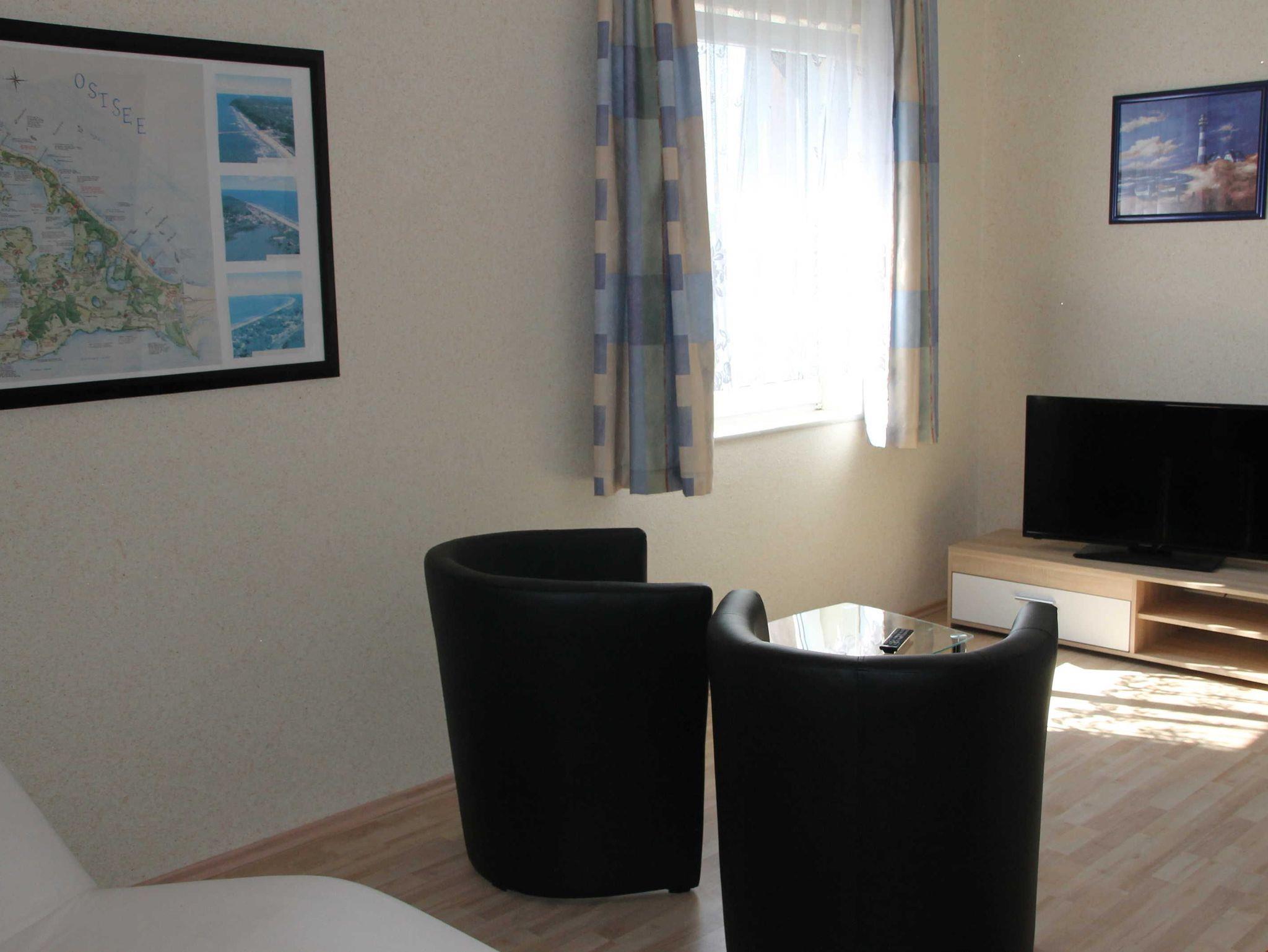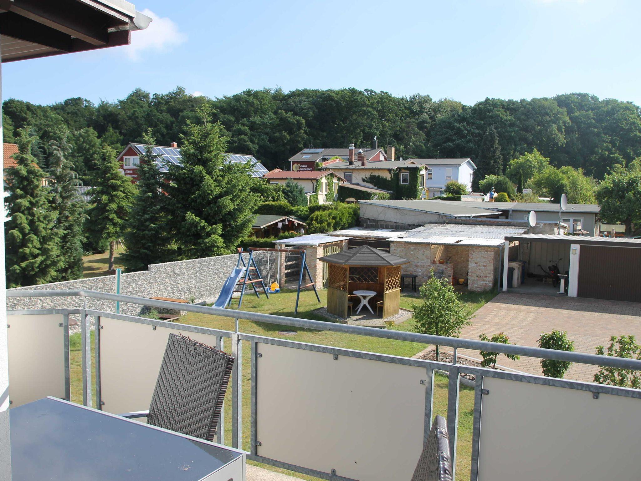 In der ?Villa Mignon? erwartet Sie im Obergeschoss eine schöne große Ferienwohnung mit über 80 qm. Sie hat 2 kombinierte Wohn-/Schlafzimmer,jedes mit einem ca. 10 qm großen Balkon. Die Zimmer sind Doppelbett bzw. Doppelliege (auch getrennt stellbar) und jeweils mit Sitzecke, Kabel-TV und Kleiderschrank ausgestattet. Die Küche ist modern und komfortabel eingerichtet mit Sitzecke, Kühlschrank, Ceranherd, Backofen, Mikrowelle, Wasserkocher, Toaster, Kaffeemaschine, Geschirrspüler und umfangreichen Küchenutensilien. Zur Wohnung gehört ein Bad mit Duche und WC, sowie ein separates Gäste-WC.