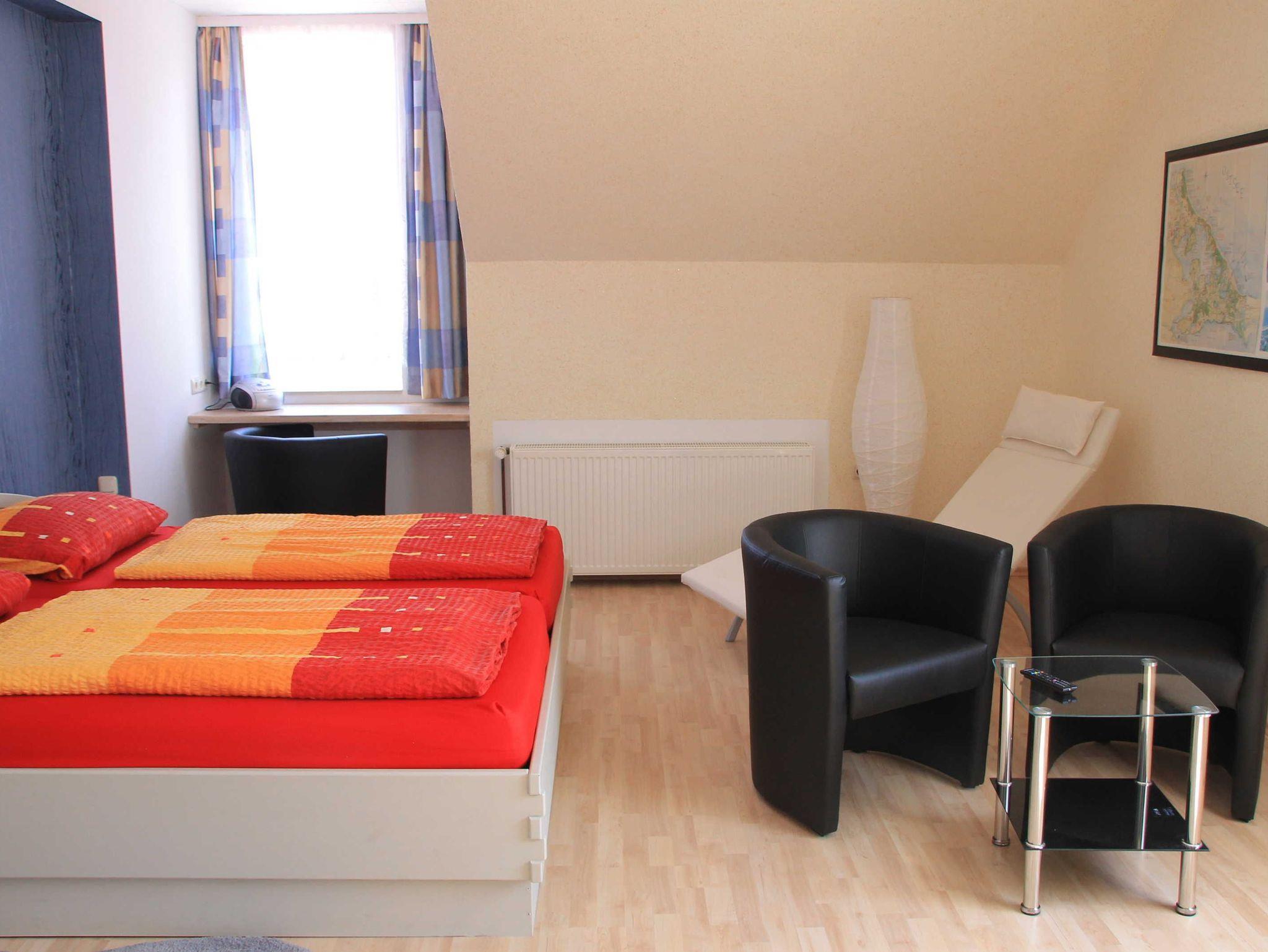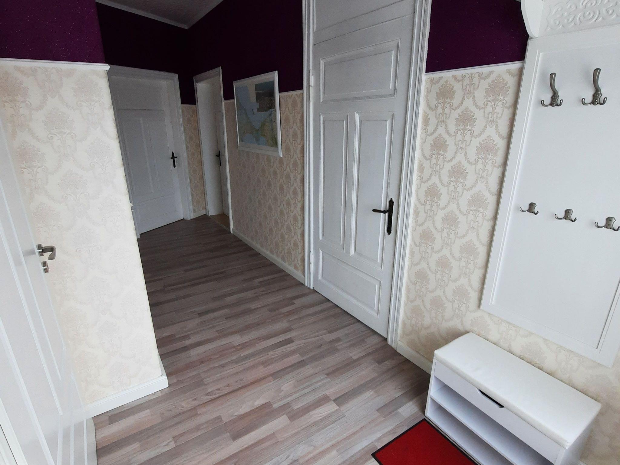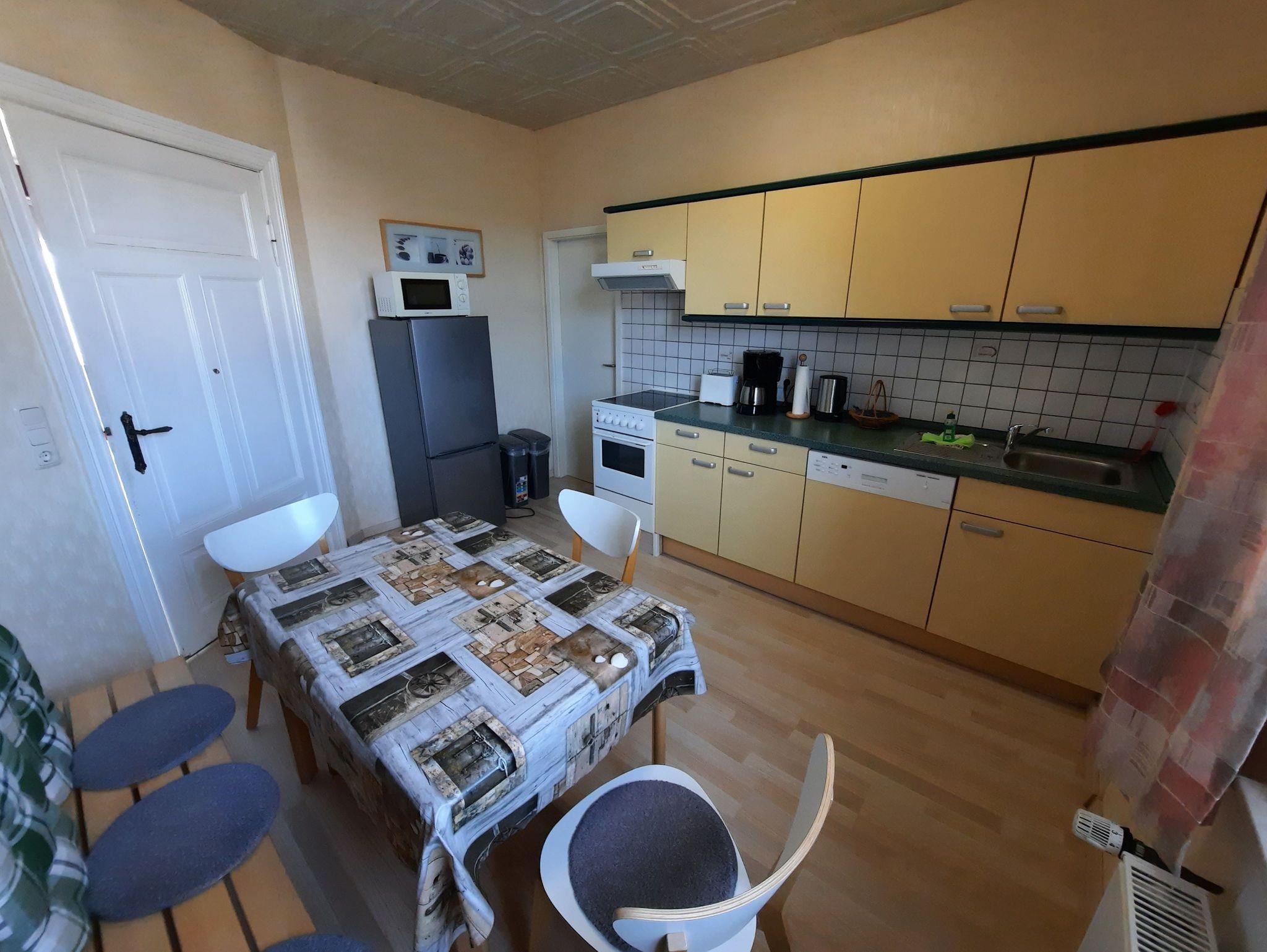 In der „Villa Mignon“ erwartet Sie im Obergeschoss eine schöne große Ferienwohnung mit über 80 qm. Sie hat einen hellen geräumigen Flur, 2 kombinierte Wohn-/Schlafzimmer,eins davon mit einem ca. 10 qm großen Balkon. Die Zimmer sind jeweils mit Doppelbett Sitzecke,Sat-TV und Kleiderschrank ausgestattet. Die Küche ist modern und komfortabel eingerichtet mit Sitzecke, Kühlschrank, Ceranherd, Backofen, Mikrowelle, Wasserkocher, Toaster, Kaffeemaschine, Geschirrspüler und umfangreichen Küchenutensilien. Zur Wohnung gehört ein Bad mit Duche und WC, sowie ein separates Gäste-WC. Waschmaschinennutzung ist möglich.
