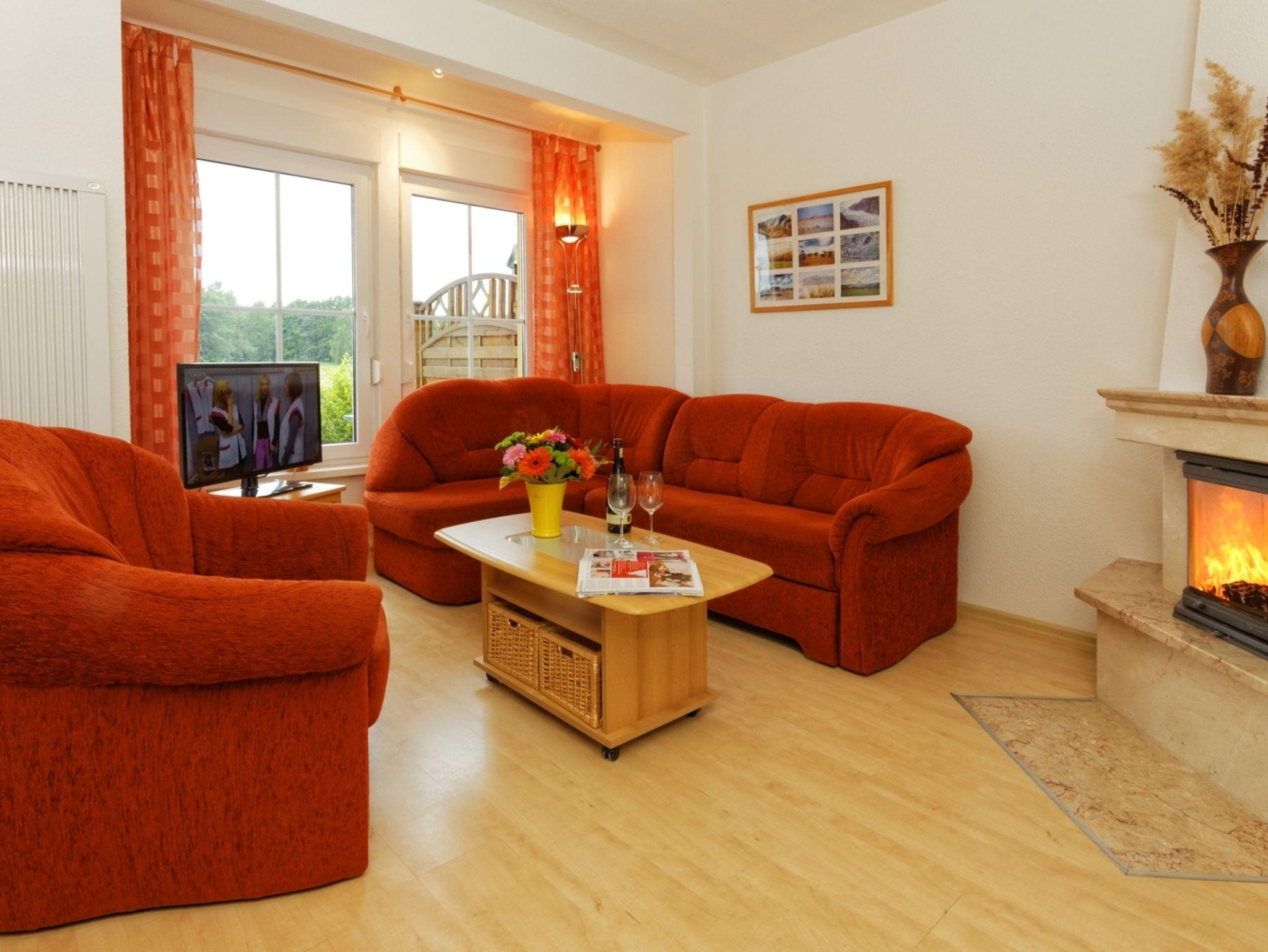 • Wohnraum mit Ecksofa u. Sessel, Eckbankgruppe, Holzkamin, Satelliten-TV(LCD) mit ca. 80cm Bilddiagonale, HiFiRadio, Internet-WLAN