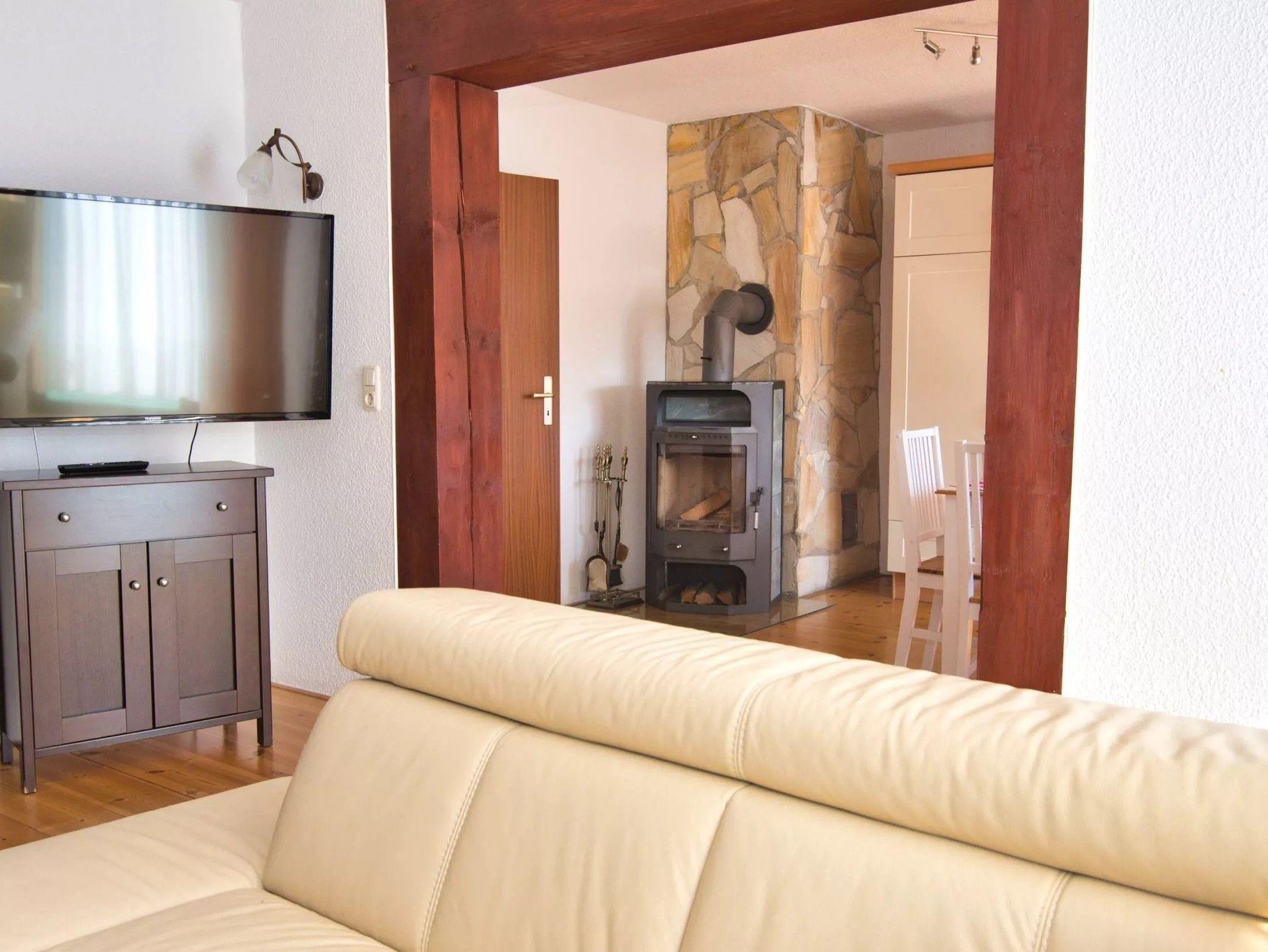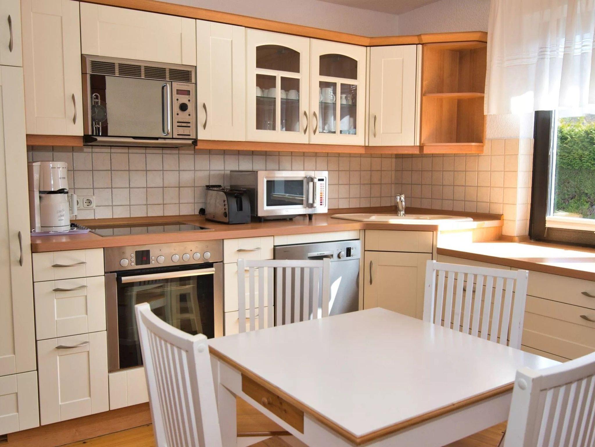 Ihre mit im Wohnbereich integrierte Bosch Markenküche ist voll ausgestattet, unter anderem mit großem Kühlschrank mit Gefrierteil, Mikrowelle, Geschirrspüler, Cerankochfeld, Einbauherd und Kaffeemaschine. Für romantische Abende steht ein Kaminofen im Wohnbereich. Geeignetes Kaminholz kann auf Wunsch kostenpflichtig gestellt werden.