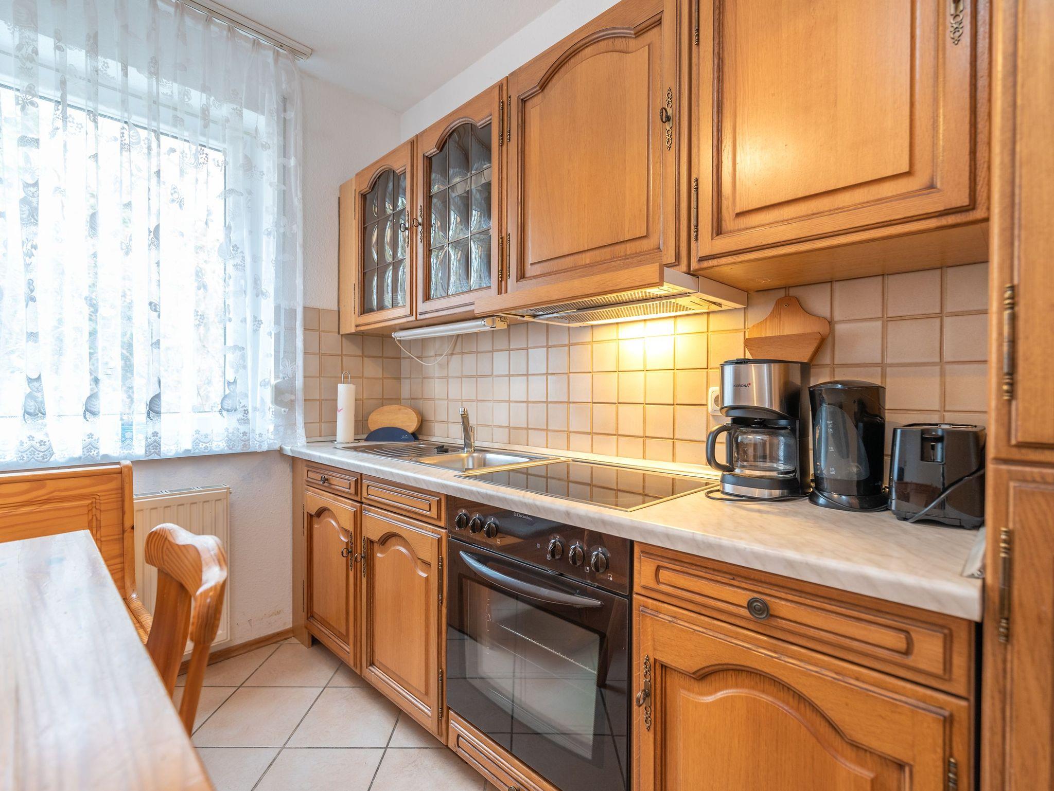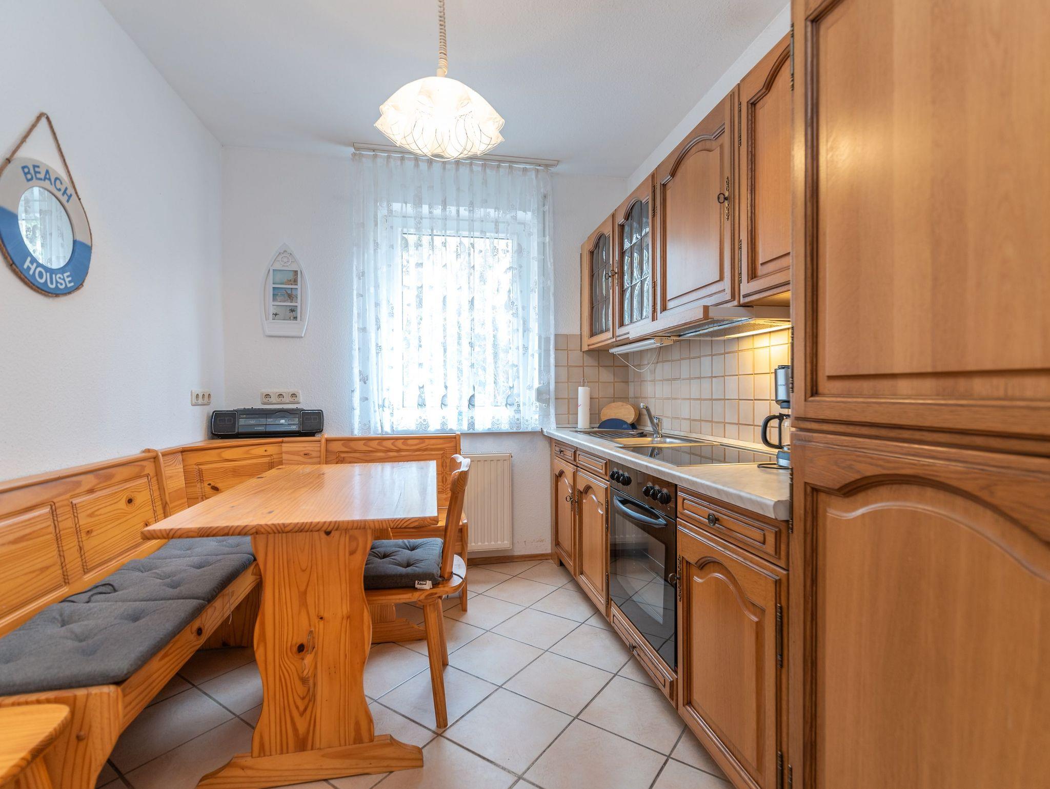 Die Küche der Wohnung lässt keine Wünsche offen und ist vollständig ausgestattet, inklusive einer Sitzecke, die gemeinsame Mahlzeiten zu einem Vergnügen macht. Ergänzt wird das Raumangebot durch ein geräumiges Badezimmer mit Dusche, WC und einer Badewanne, die zum Entspannen nach einem Tag am Strand oder nach einer Wanderung einlädt. Ein zusätzliches Gäste-WC bietet weiteren Komfort für alle Bewohner.