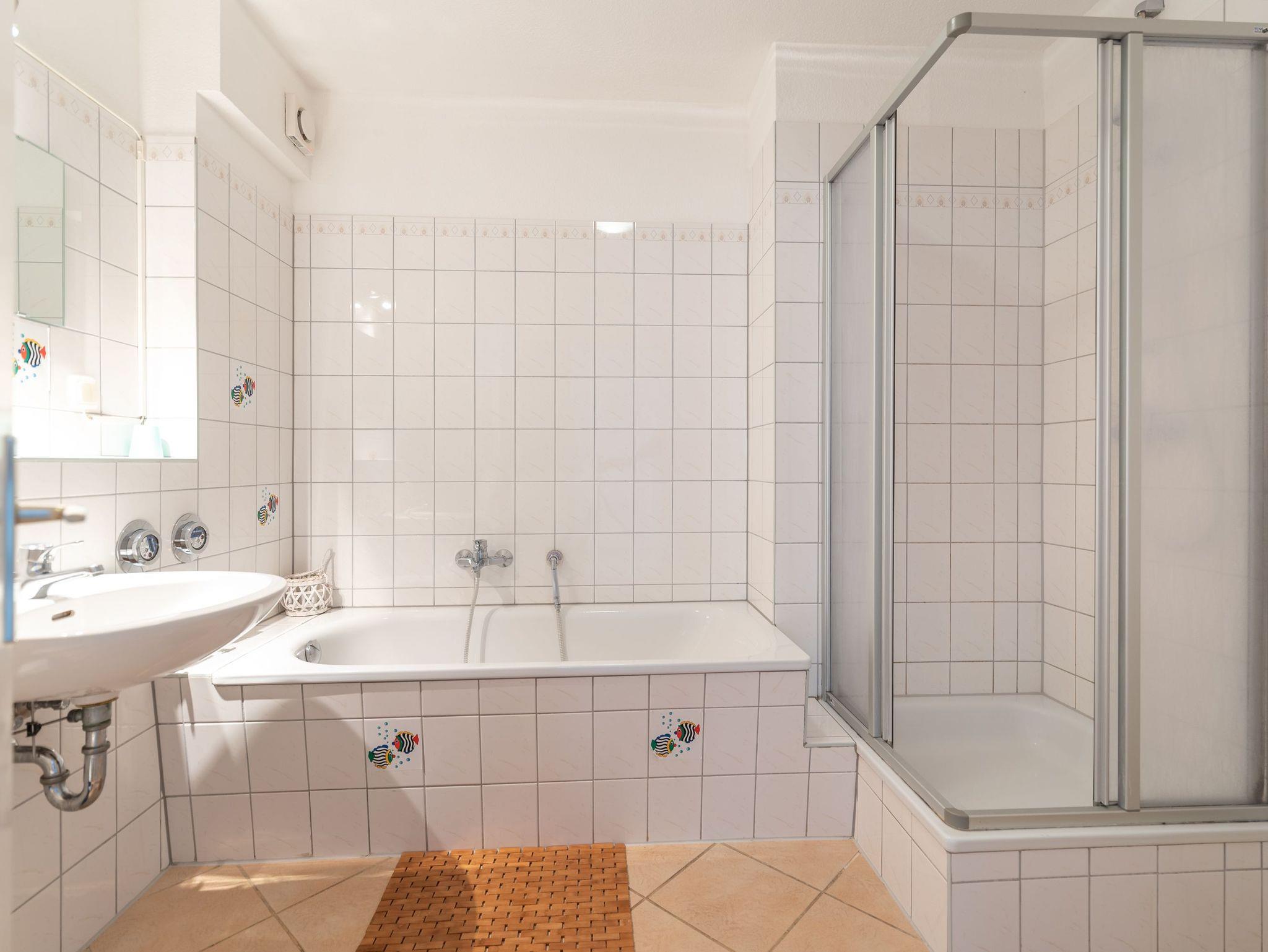 • Badezimmer mit Dusche, WC und Badewanne