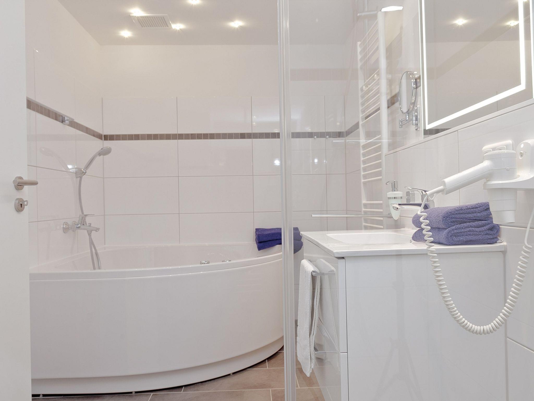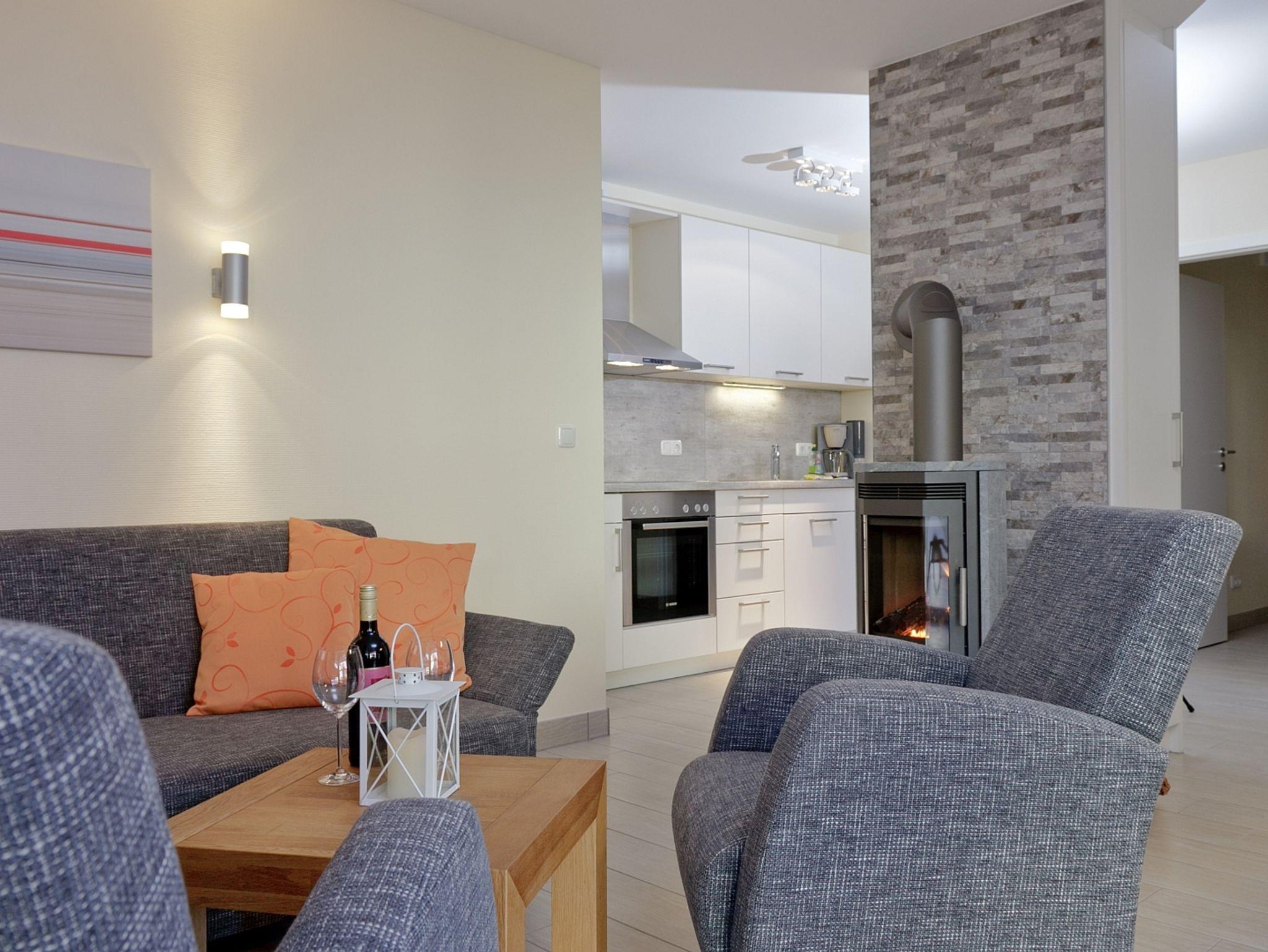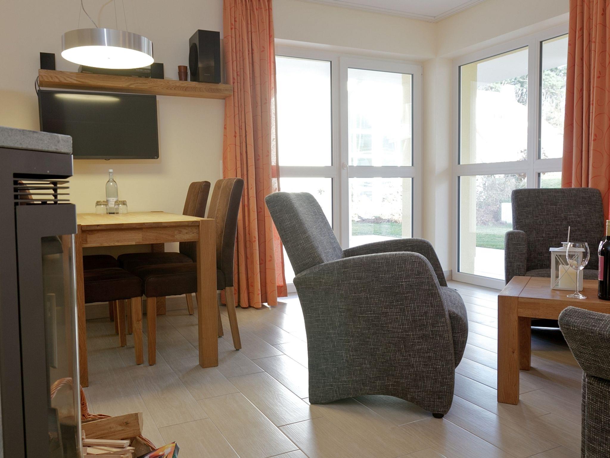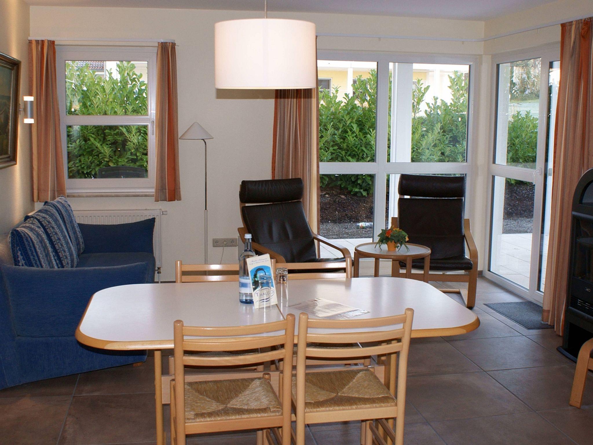 Zu jeder Wohnung gehört ein reservierter Stellplatz. Die Nutzung von Einrichtungen des Vineta Ferienparks wie Schwimmbad, Sauna, Tennisplatz, Grillplatz und Tischtennisplatte ist im Mietpreis enthalten.