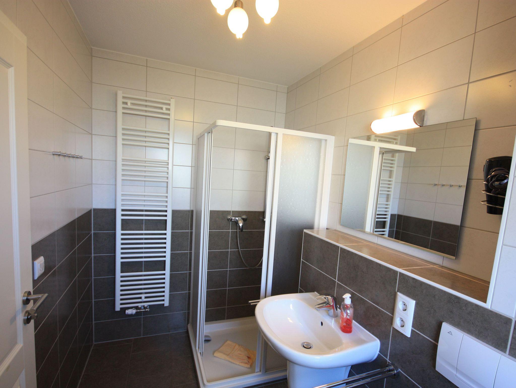 Die Wohnung verfügt über ein Schlafzimmer mit Doppelbett und ein Schlafzimmer mit zwei Einzelbetten. Die Wohnung ist ideal geeignet für Familien und Hundeliebhaber.