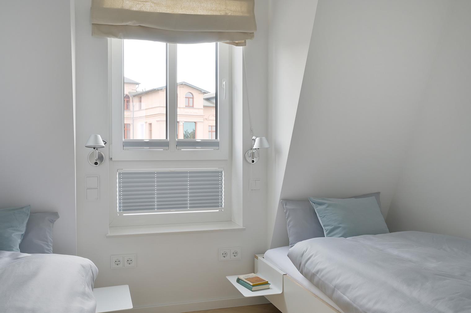 Die lichtdurchflutete 3-Zimmerwohnung des vorderen Apartmenthauses bietet mit einer Fläche von 46 m² Aufenthaltsmöglichkeiten für 2-4 Personen. Eine offene, vollausgestattete Küche schafft hohe Transparenz zum Wohnraum und lädt zu gemeinsamer Zeit ein. Die Einrichtung der Wohnung fokussiert sich auf ein modernes und gleichzeitig gemütliches Interieur.