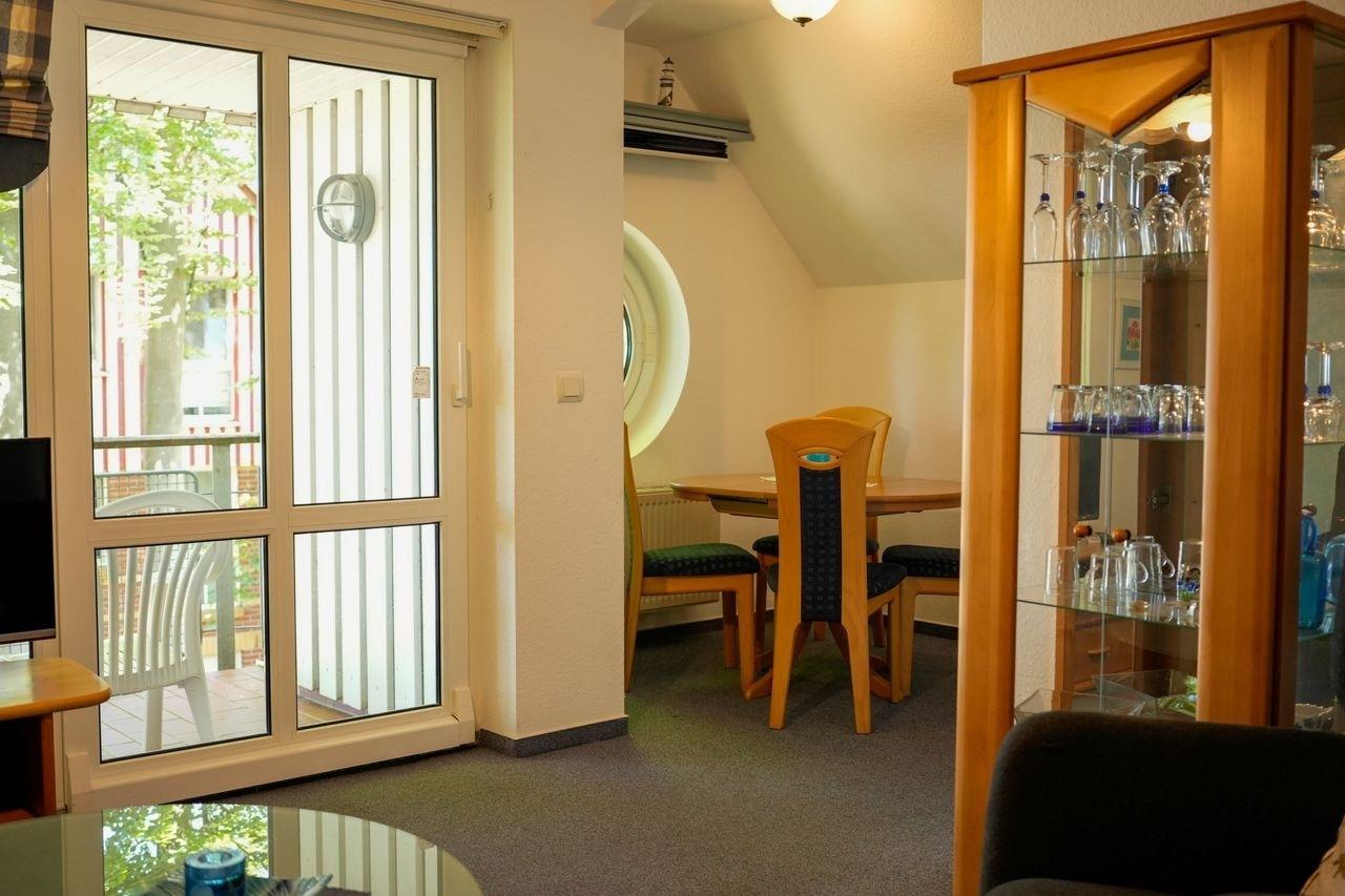 Das Nichtraucherappartement befindet sich im 2. Obergeschoss der Ferienanlage "Seeblick", die im Jahr 1999 erbaut wurde und verfügt über eine Dusche mit WC, einen Wohnraum mit TV und Radio, eine integrierte Küche und einen möblierten Balkon mit teilweisem Blick auf die Ostsee. Des Weiteren gibt es ein Schlafzimmer mit einem Doppelbett. Das Appartement ist zentralbeheizt und bietet Platz für 2-3 Personen, da es neben dem Doppelbett im Schlafzimmer auch eine Schlafcouch im Wohnraum gibt. Bei der Buchung sind Bettwäsche und Handtücher im Set enthalten.