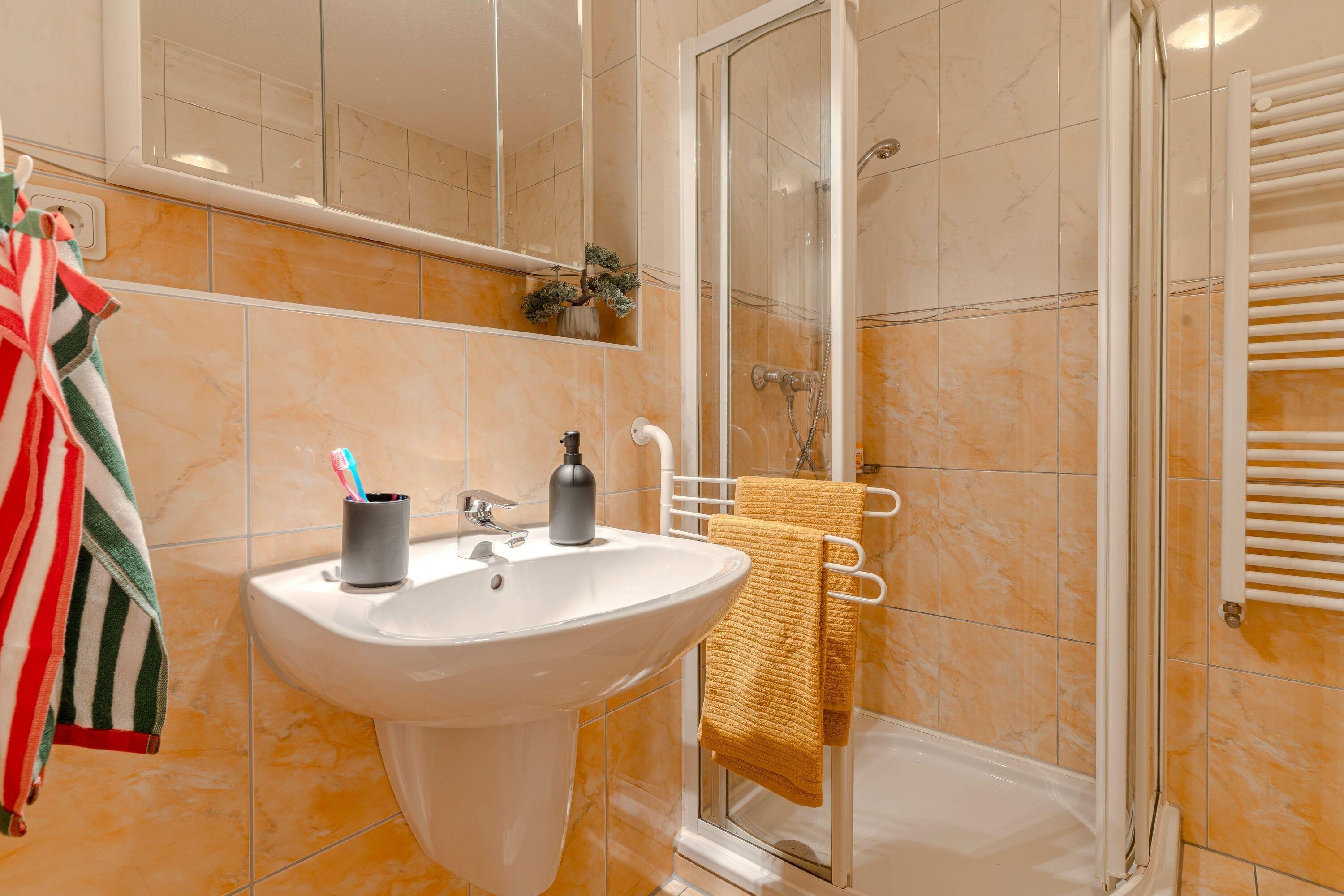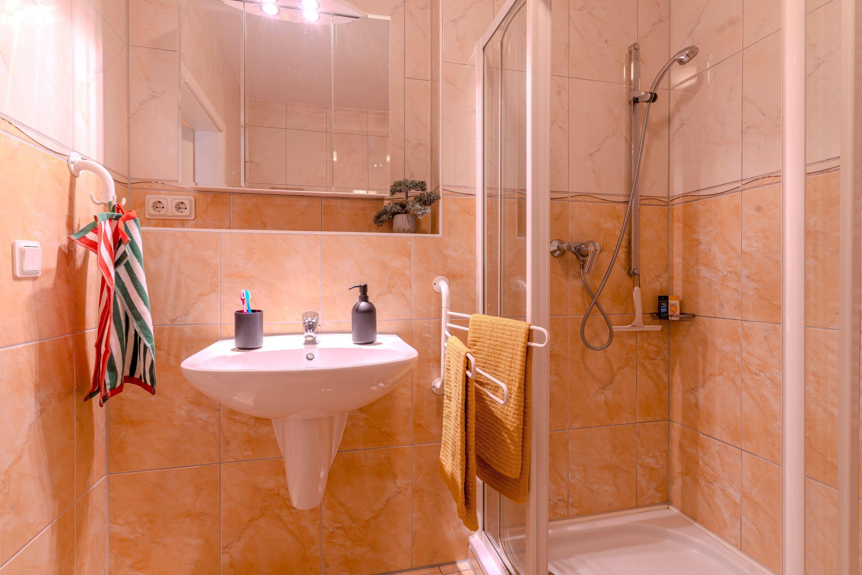 Die Unterkunft im 1. Obergeschoss überzeugt durch ein gemütliches Schlafzimmer, ein stilvoll gestaltetes Badezimmer sowie eine hochwertige Ausstattung – ideal für einen erholsamen Ostseeurlaub oder eine entspannte Auszeit zu zweit.