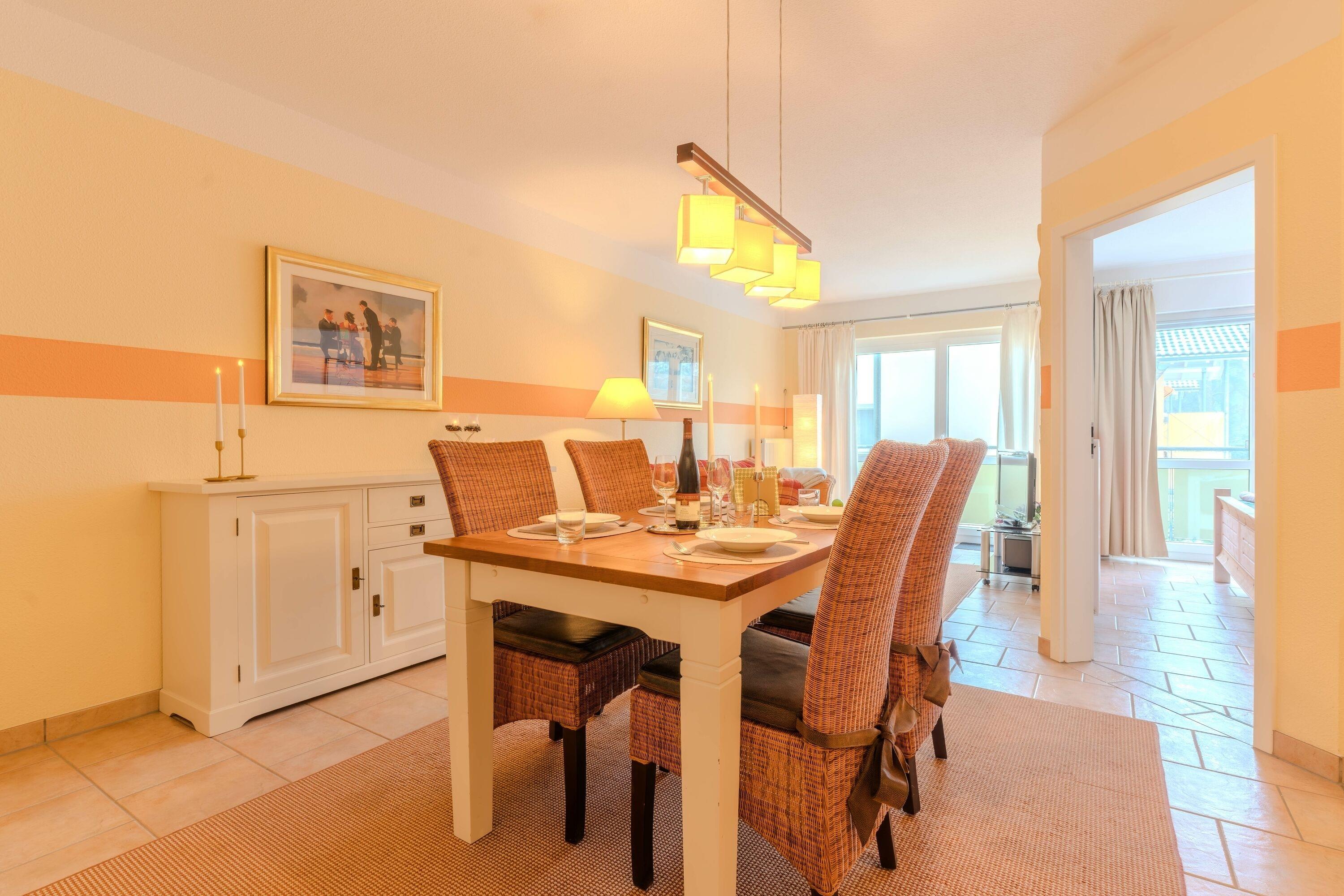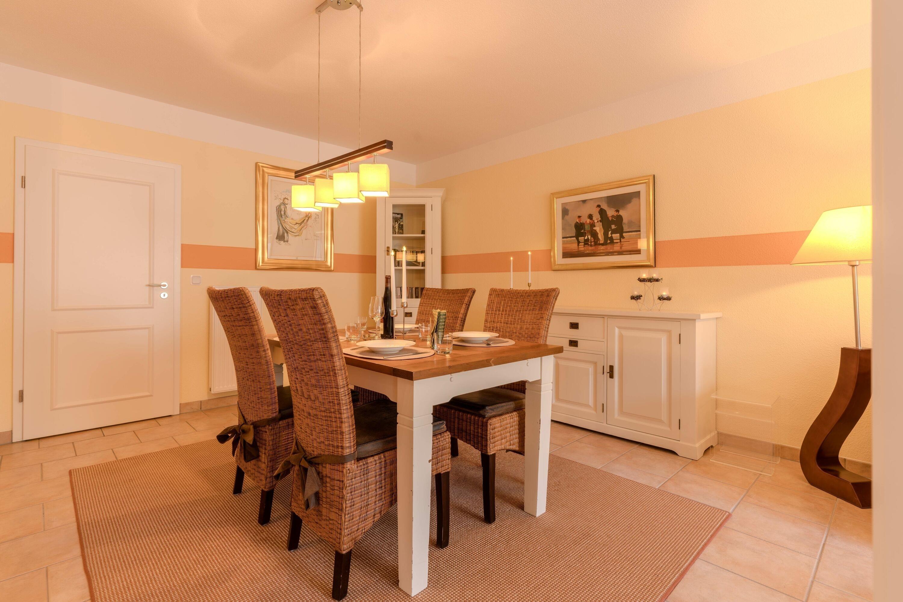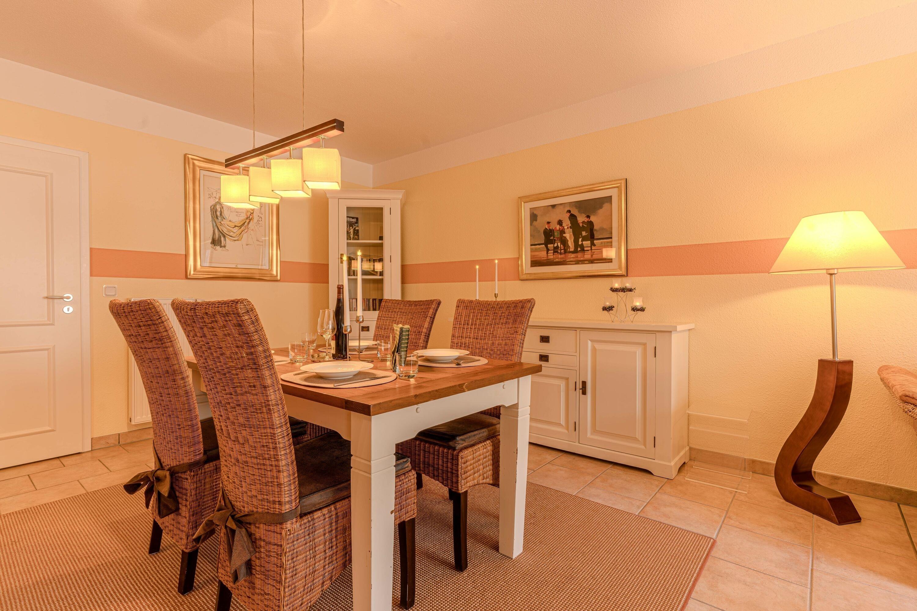 Der offene Wohn- und Essbereich mit Esstisch schafft eine einladende Atmosphäre für gemeinsame Mahlzeiten und gemütliche Abende.