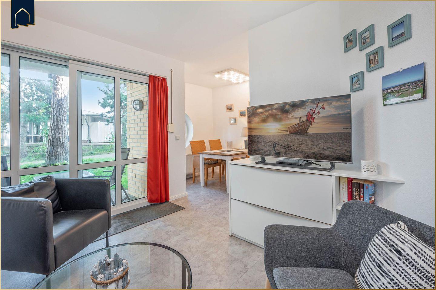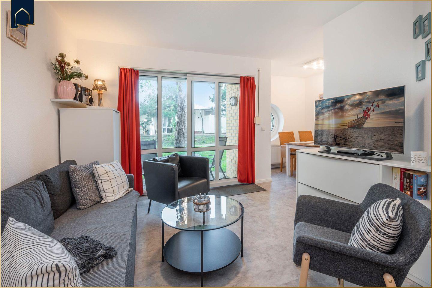 Diese charmante Ferienwohnung auf Usedom bietet Ihnen beste Voraussetzungen für einen erholsamen Strandurlaub. Nur 20?Meter vom feinen Sandstrand entfernt und mit direktem Blick aufs Meer, erleben Sie hier echtes Urlaubsfeeling – ob zu zweit oder als kleine Familie. Die modern eingerichtete Wohnung verfügt über 46?m² Wohnfläche und überzeugt durch eine gut ausgestattete Küche, WLAN, TV sowie eine gemütliche Sofaecke mit Brettspielen und DVDs für entspannte Abende.