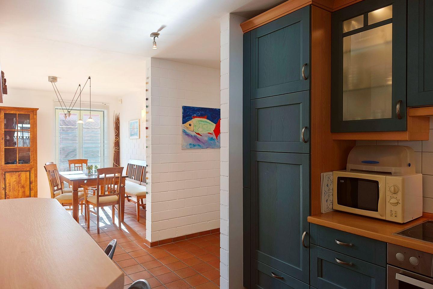 Die offene Küche ist nahtlos in den Wohnbereich integriert und lässt mit ihrer umfangreichen Ausstattung keine Wünsche offen. Moderne Geräte wie Cerankochfeld, Elektrobackofen, Mikrowelle, Kühlschrank mit separatem Gefrierschrank, Spülmaschine, Wasserkocher, Toaster und Kaffeemaschine stehen zur Verfügung. Zudem sind sämtliche Küchenutensilien, Geschirr, Besteck und Geschirrhandtücher vorhanden, sodass Sie sich im Urlaub wie zu Hause fühlen können.