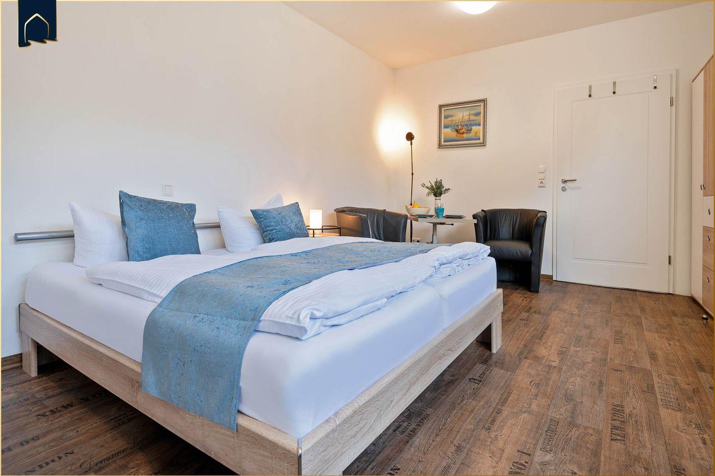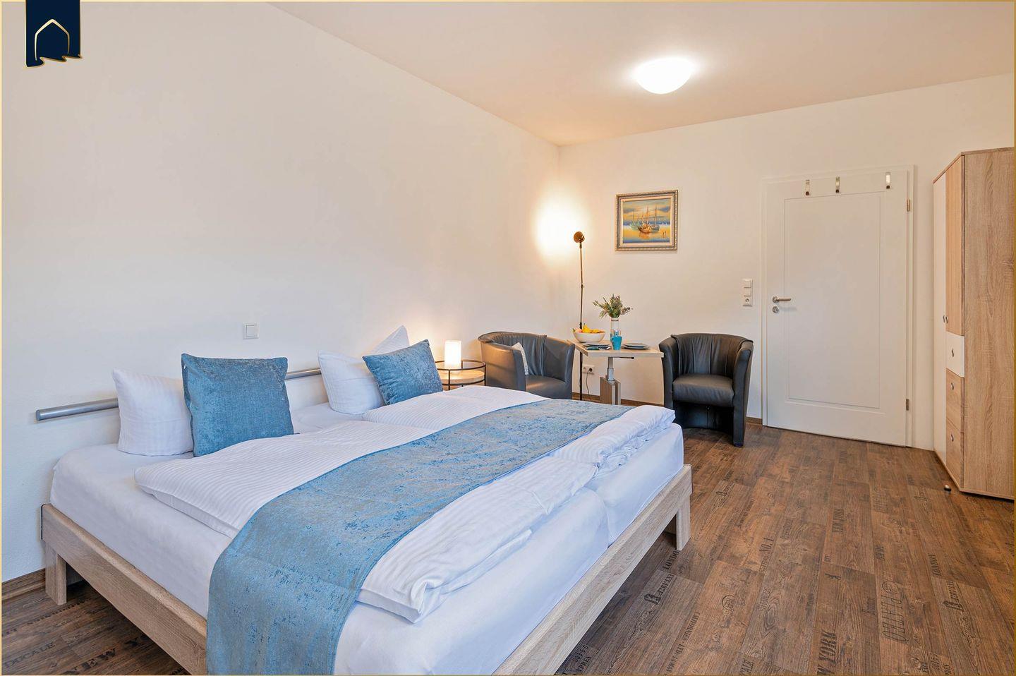 Die helle Wohnung bietet Platz für zwei Personen und verfügt über ein separates Schlafzimmer mit gemütlichem Bett, ein modernes Badezimmer mit Dusche sowie einen offenen Wohnbereich mit Sofaecke und TV. Die Küche ist vollständig ausgestattet – inklusive Backofen, Herd, Kühlschrank, Mikrowelle, Kaffeemaschine, Wasserkocher und Toaster. Auch WLAN steht Ihnen kostenfrei zur Verfügung. Ein Esstisch im Wohnbereich lädt zu gemeinsamen Mahlzeiten ein.