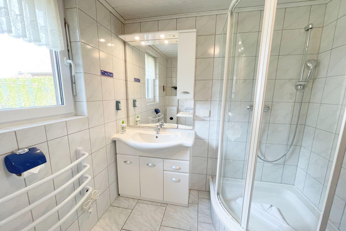 Die Erstausstattung mit Bettwäsche und Handtüchern sorgt zudem für einen behaglichen Start in Ihren Urlaub. Das Badezimmer ist mit einer Dusche ausgestattet – perfekt für entspannende Momente nach einem aufregenden Tag am Strand.