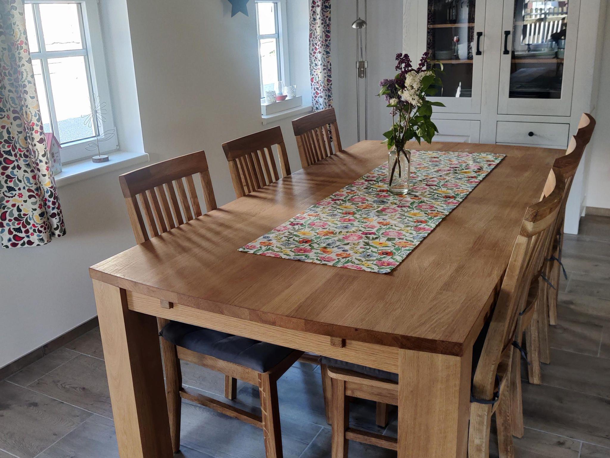 Unser Ferienhaus ist ein liebevoll modernisiertes Umgebindehaus mit besonderem Charme und dem typischen Charakter eines historischen Gebäudes. Die Einrichtung wurde mit neuen, hochwertigen Möbeln gestaltet. Bitte beachten Sie, dass die Decken im Erdgeschoss etwas niedriger sind als in modernen Neubauten, im Obergeschoss jedoch etwas höher.