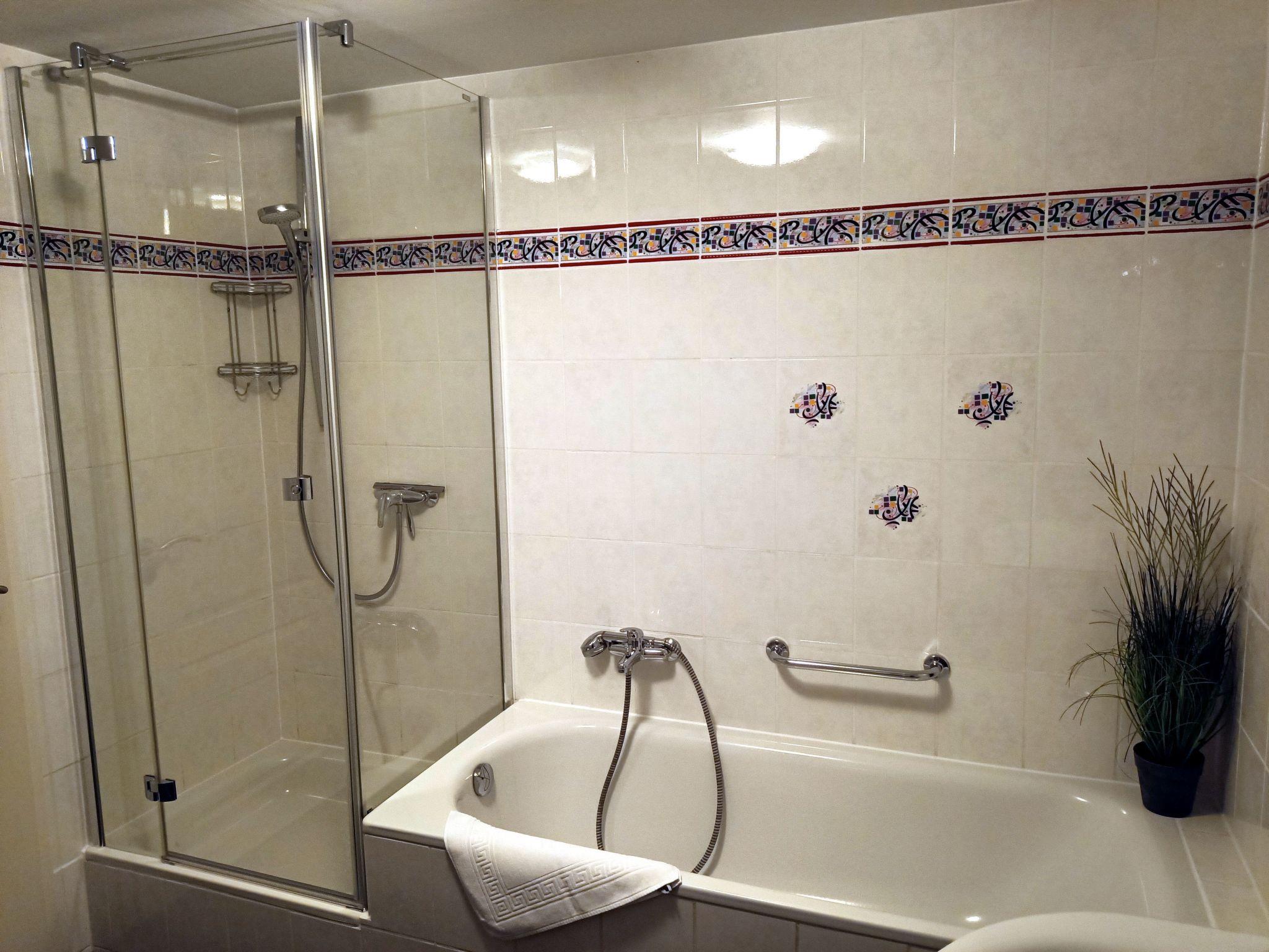 - Living = 21 m2 -upholstered L-shaped corner, colour: beige, with bed function, as extra bed for 2 persons; -large table with 4 chairs -colour TV screen diagonal 50 cm -digital satellite receiver, WLAN Sleeping = 13 m2 -double bed with 2 bedside cabinets, large wall cupboard with mirror Kitchen = 8 m2 -oven with 4 hotplates, -microwave, with baking function, -refrigerator with freezer compartment, -extractor fan - stainless steel sink - wall table with 2 chairs - dining service for 6 people Bathroom = 8 m2 - washbasin - bath - shower - washing machine - towel dryer WC = 3 m2 - WC - hand basin Hallway = 10 m2 - cloakroom Children = 5 m2 double bunk bed for 2 children Terrace with barbecue Children's playground = garden swing with slide