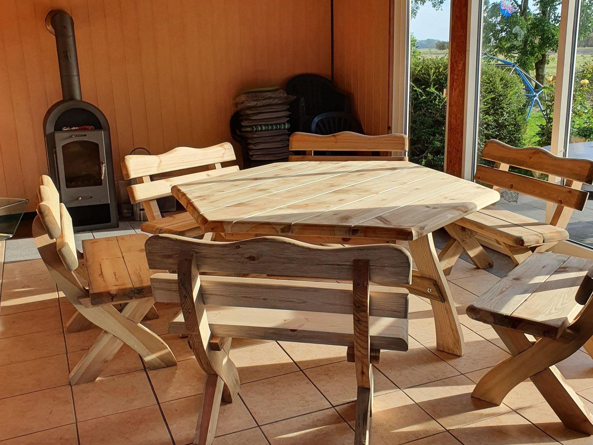 Neben dem Haus befindet sich ein Aufenthaltsraum mit Ofen, Sofa und Tischfußball.