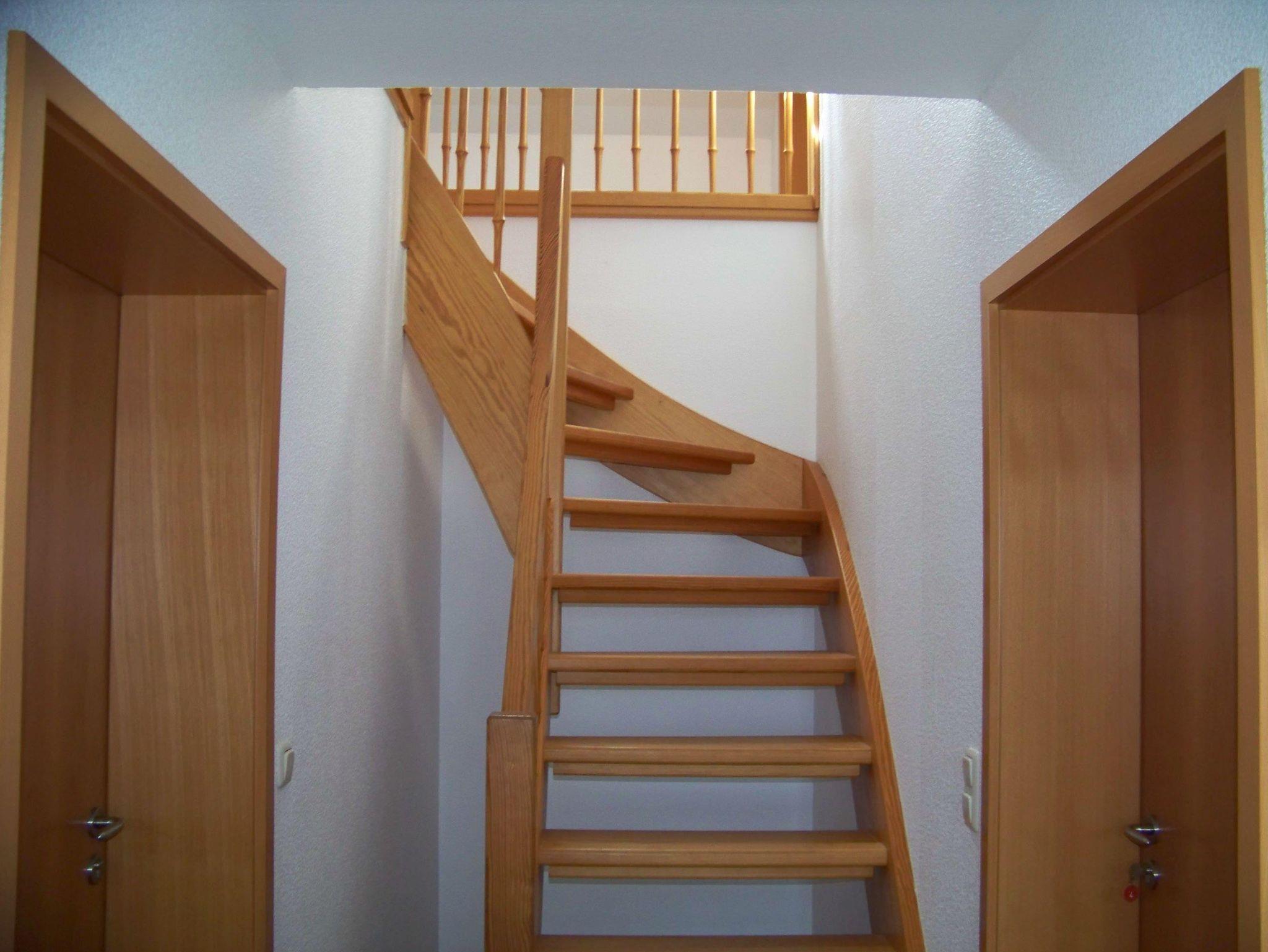 Zwei weitere Schlafzimmer befinden sich außerhalb der Wohnung ein Stockwerk höher und sind über eine Holztreppe unproblematisch zu erreichen. Daher am besten geeignet für Kinder ab 8 Jahren und älter.