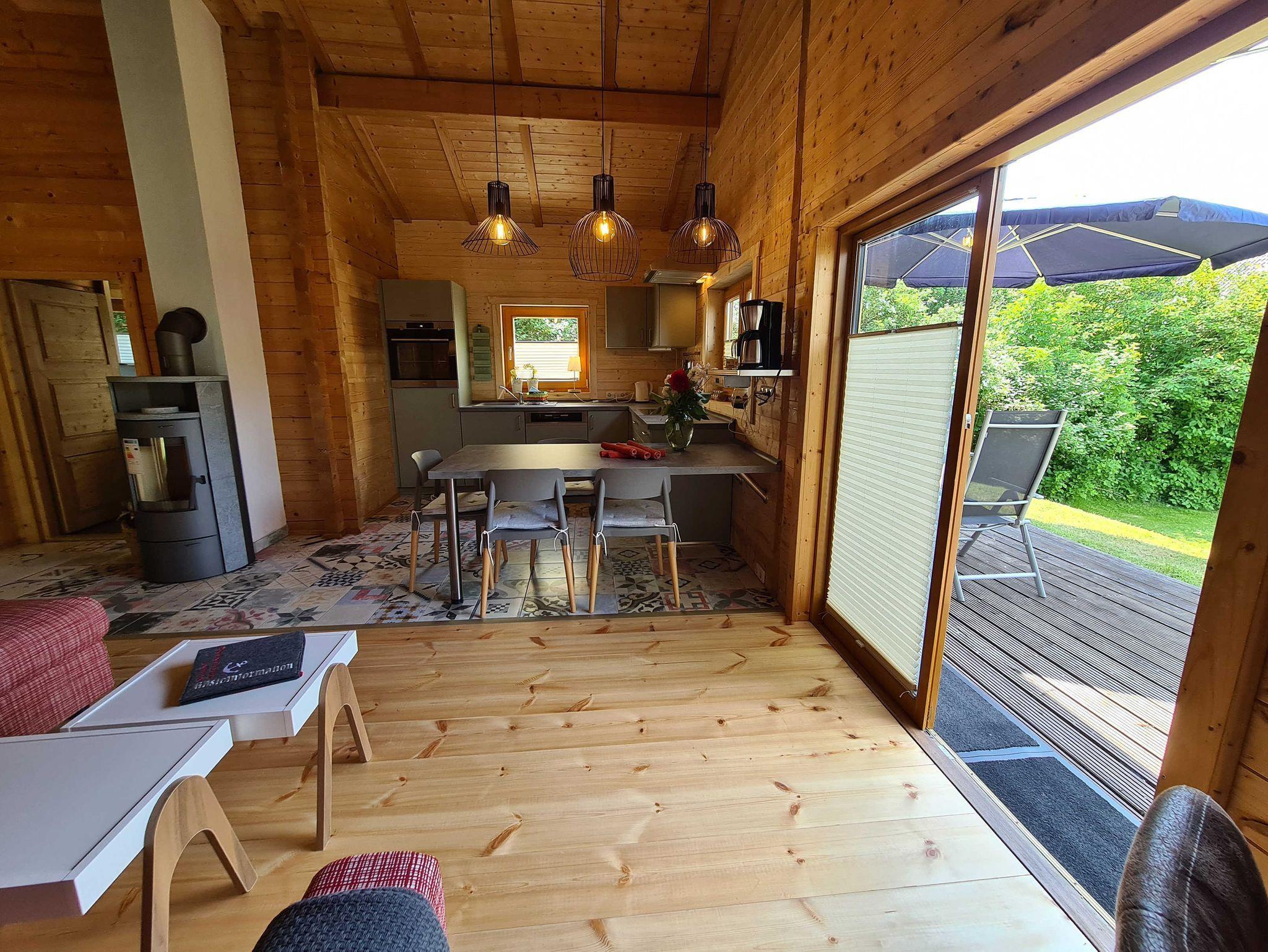 Das ebenerdige Ferienhaus Bine - mit offenem Wohnraum und moderner Küche und Eßtisch und direktem Ausgang auf die sonnige Terrasse mit Blick in den Garten. 2 Schlafzimmer im Erdgeschoss bieten gute Ruhemöglichkeiten.