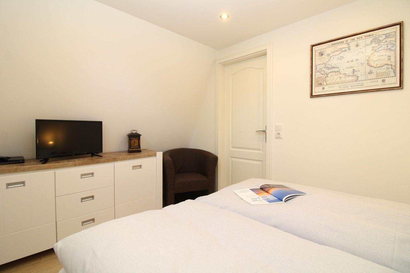 Das separate und zusätzliche 2. Schlafzimmer verfügt über zwei getrennte Einzelbetten (80 cm x 200 cm) sowie eine Kleiderkommode.