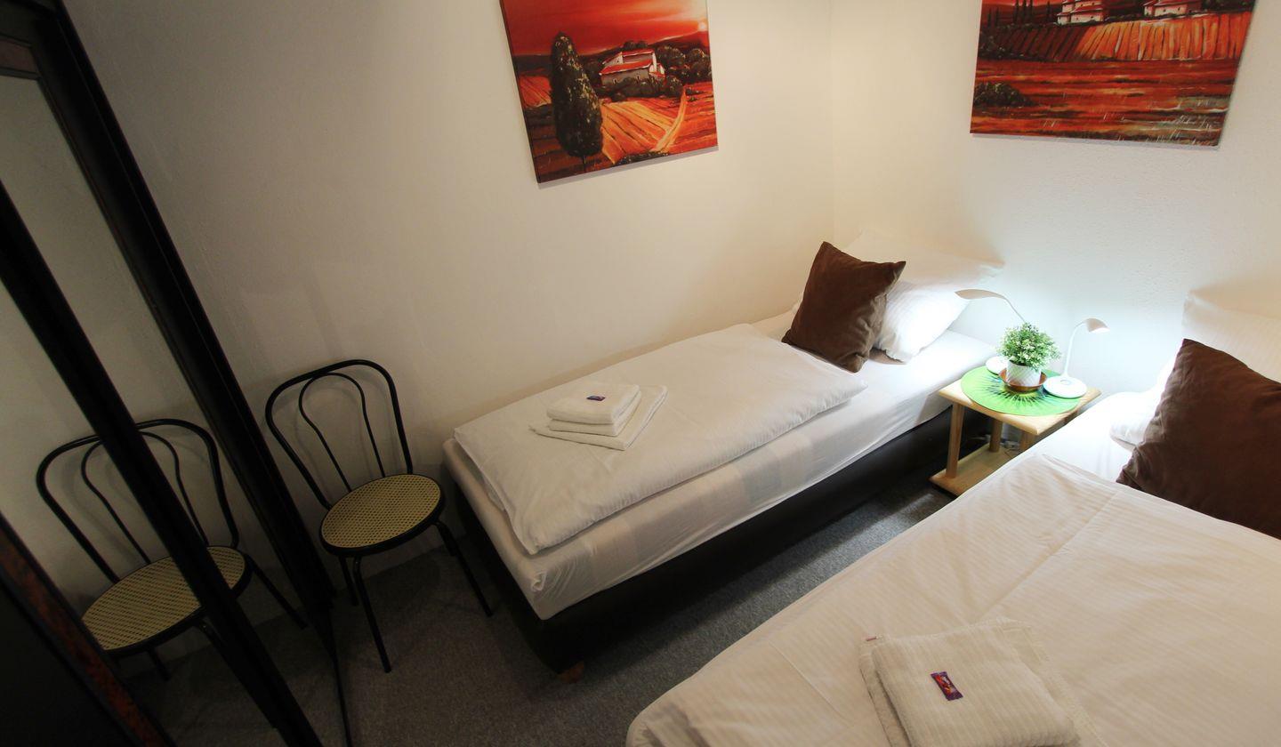 Schlafzimmer (offen, Abtrennung ist ein Vorhang) mit 2 Einzelbetten (kein Fenster), Vollbad mit Badewanne, Dusche , WC, Baby- und Kleinkinderausstattung bei Bedarf vorhanden, W-Lan, Unterstellmöglichkeit für Räder, Parkplatz, Mitbenutzung des Gartens, Grillen erlaubt