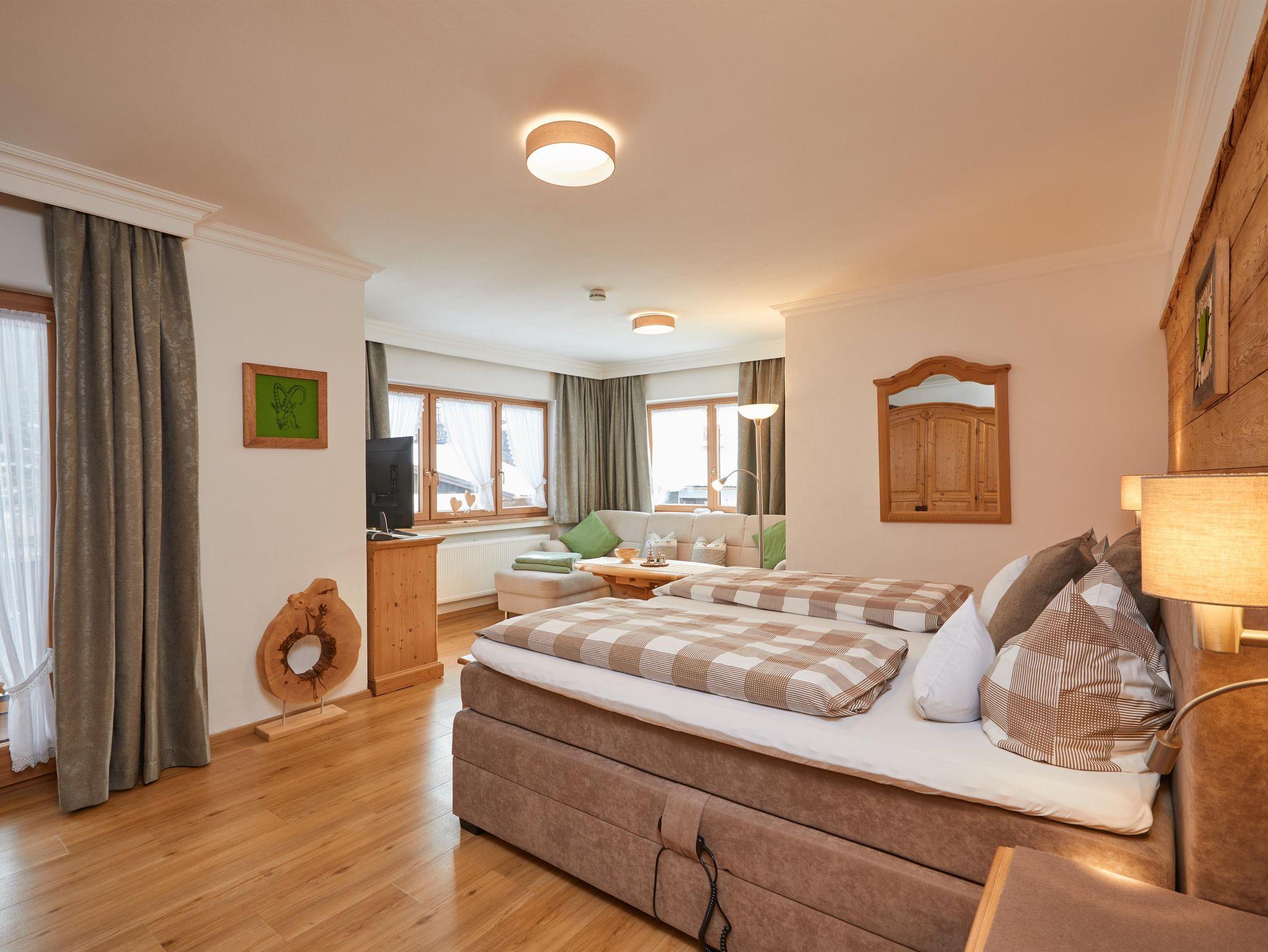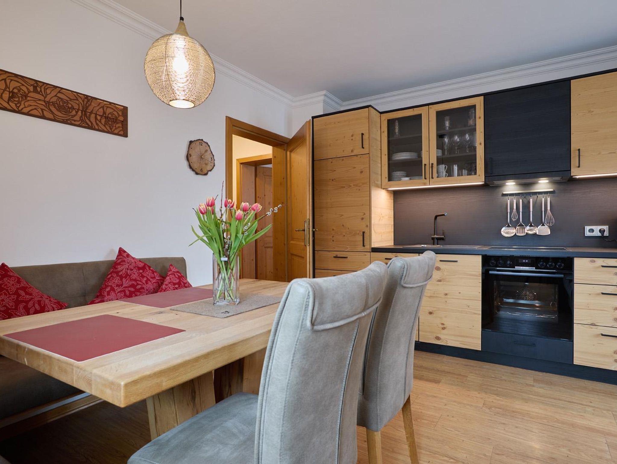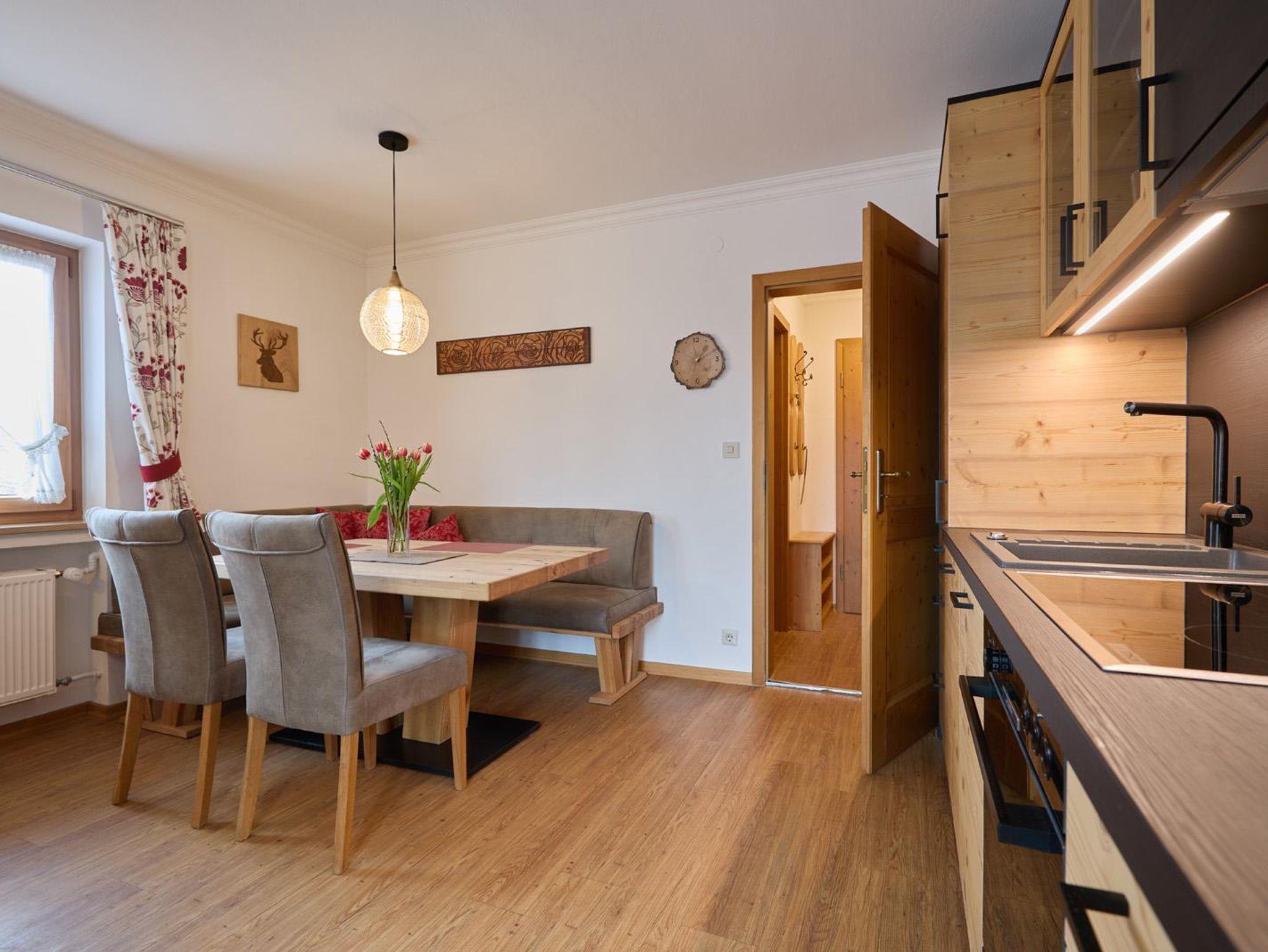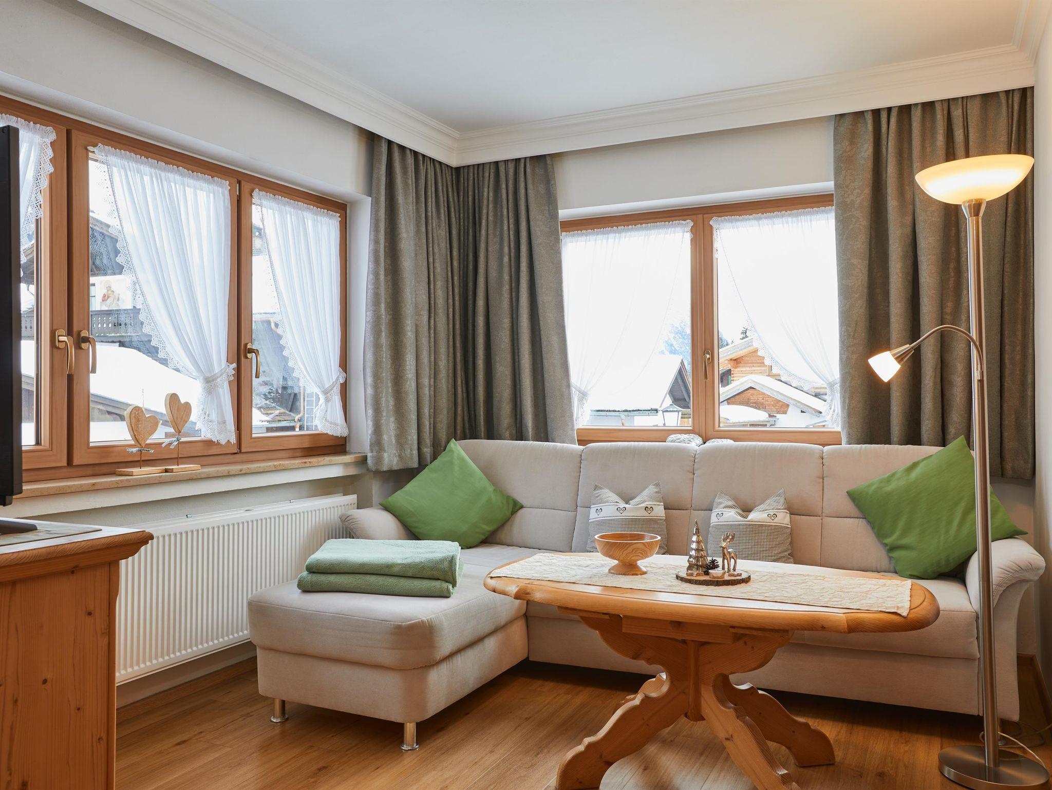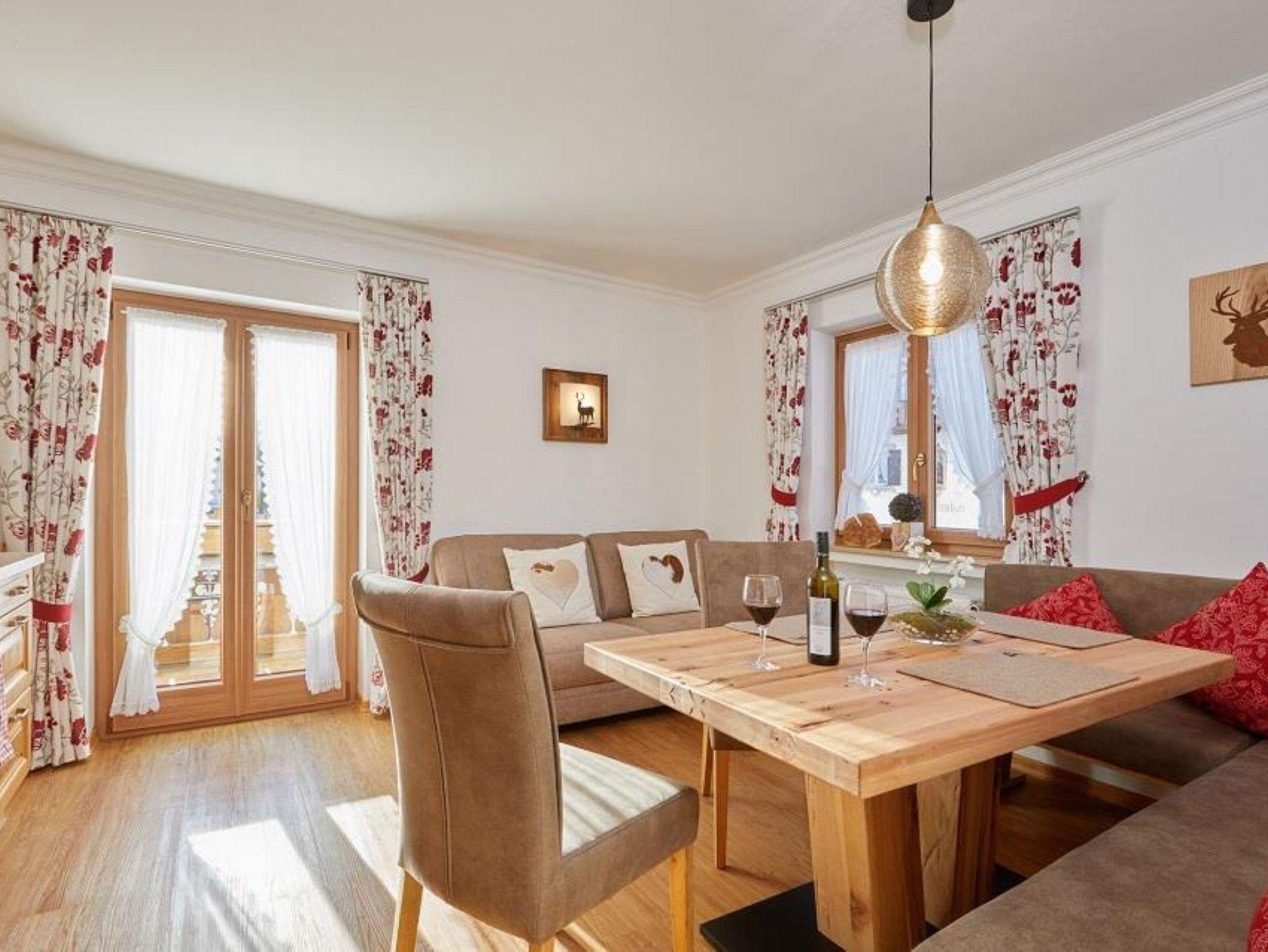 ****Wohnung Rehbock mit 53 qm, 1.Stock mit möblierten Ost- und Südbalkon, Panoramablick auf das Karwendel- und Wettersteingebirge. Hochwertige Ausstattung, Holzvinylboden, Altholzwand, großes Schlafzimmer mit elektr. verstellbaren Boxspringbett (2x2 m) und komfortabler Sitzecke. Wohnküche mit Küchenzeile, Spülmaschine, Backofen mit Ceranfeld, sämtl. elektr. Geräte, gemütlicher Eckbank und Sofa. Dusche/WC mit Regendusche, Handtuchwärmer, LED-Beleuchtung, Kosmetikspiegel und Haarfön. Flachbildschirm, Internetradio, Safe, kostenloser W-LAN Internetzugang.