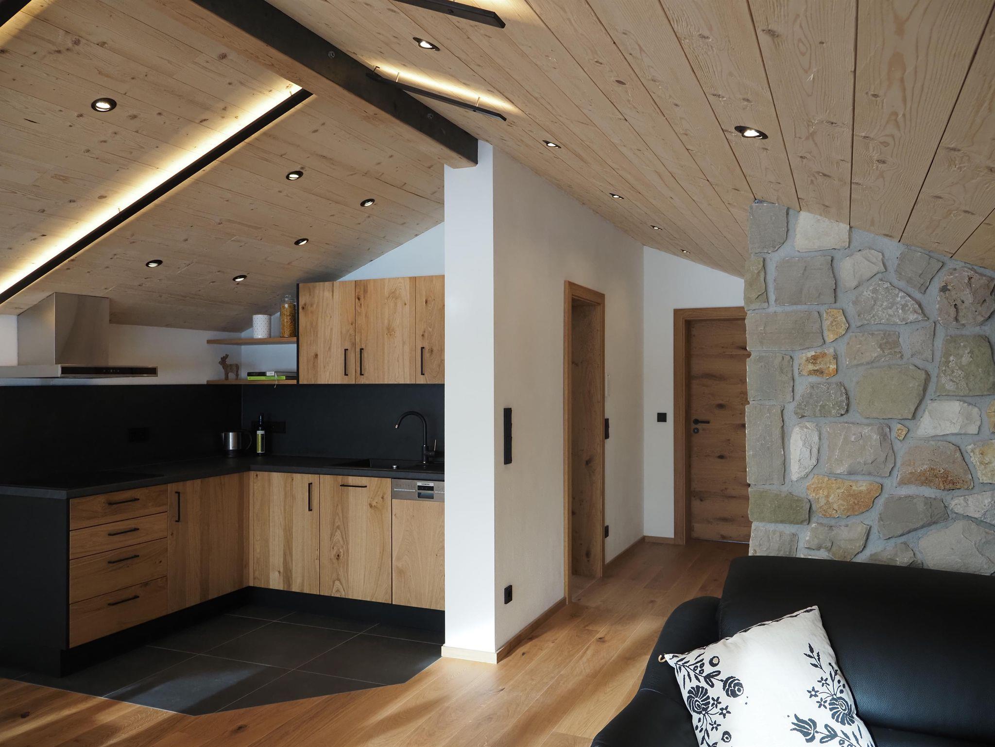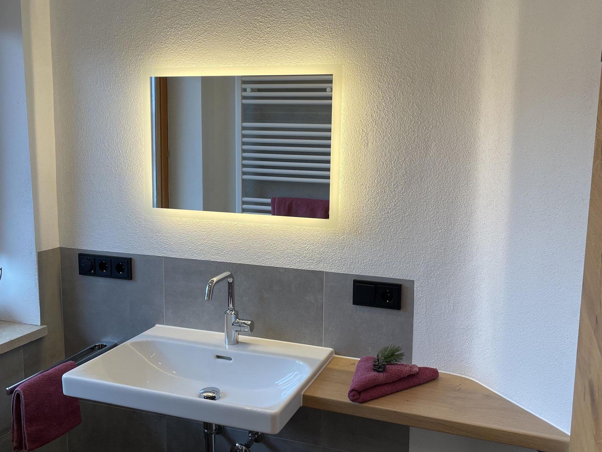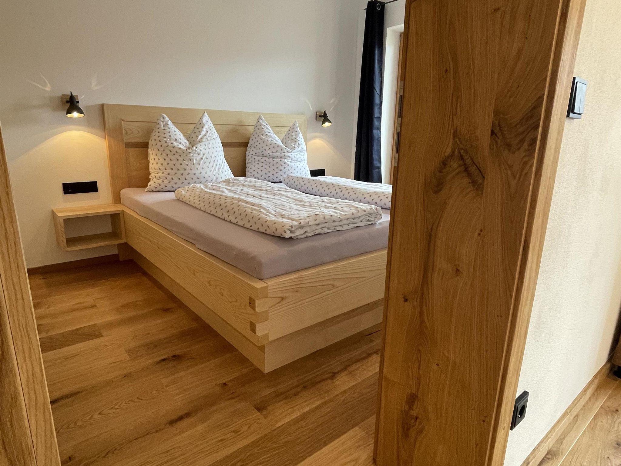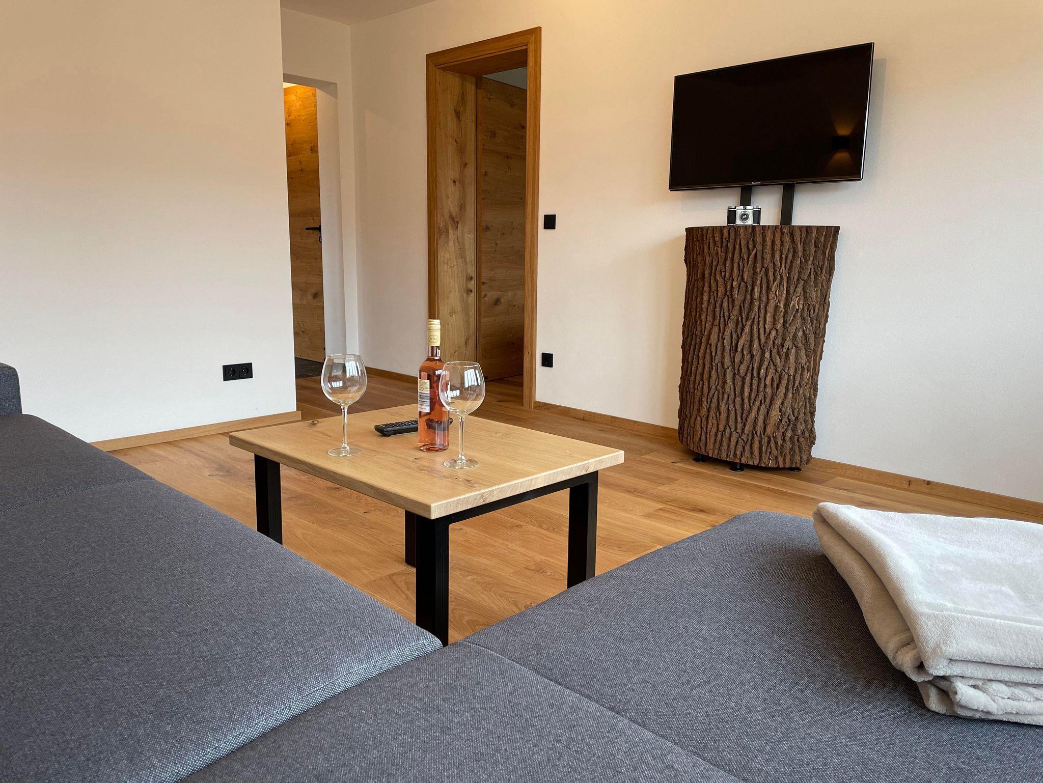 Unsere Ferienwohnung Alpspitze bietet mit einem westlich ausgerichteten Balkon traumhafte Sonnenuntergänge und einen herrlichen Ausblick auf das gesamte Karwendel- und Wettersteinmassiv inkl. Zugspitze. Die Ferienwohnung verfügt über eine geschmackvolle & rustikale Einrichtung, eine separate Küche inkl. Geschirrspülmaschine und 3-Plattenceranfeld, Flachbild-TV und kostenfreies WLan. Das Bad ist mit einem WC und einer Dusche ausgestattet. Mit einer großen Fensterfront im Wohnzimmer, haben Sie uneingeschränkten Blick auf das tolle Bergpanorama von Krün. Eine große Couch lädt zum Entspannen vor toller Bergkulisse ein. Eine Ausziehmöglichkeit der Couch ist vorhanden. Erholsamen Schlaf finden sie in einem handgefertigtem Bett aus Eschenholz. Die Couch im Wohnzimmer ist ausziehbar und bietet ein vollwertiges Bett mit Matratzengröße 160cm x 200cm. Das macht die Ferienwohnung auch für 3 Erwachsene oder Zwei Erwachsene und zwei Kinder buchbar.