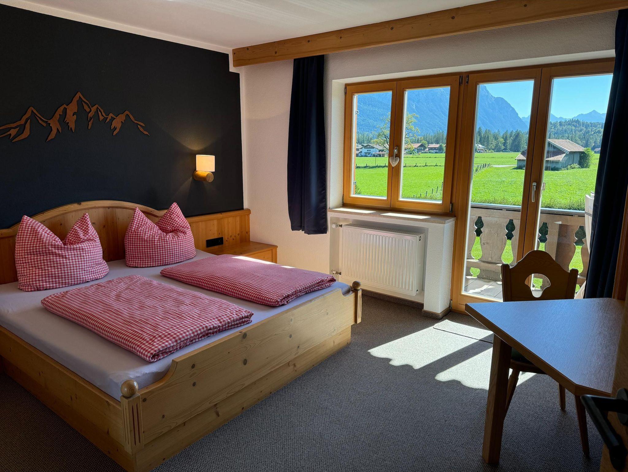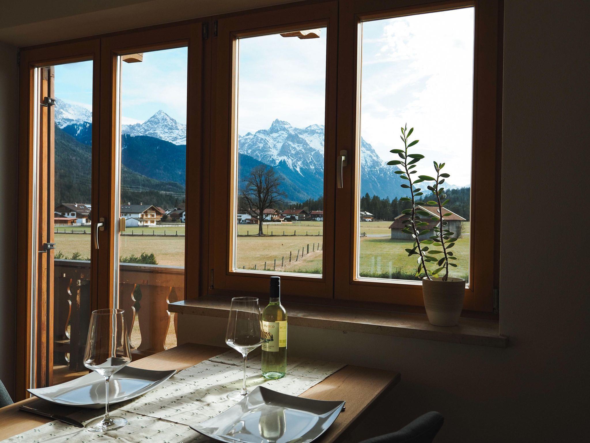 Unsere frisch renovierten Ferienwohnungen mit Blick auf das gesamte Karwendel- und Wettersteingebirge liegen in zentraler und ruhiger Lage im Herzen von Krün. Freuen Sie sich auf einen Balkon mit Ausblick auf eine atemberaubenden Bergkulisse, kostenfreies WLAN und Privatparkplätze am Haus.