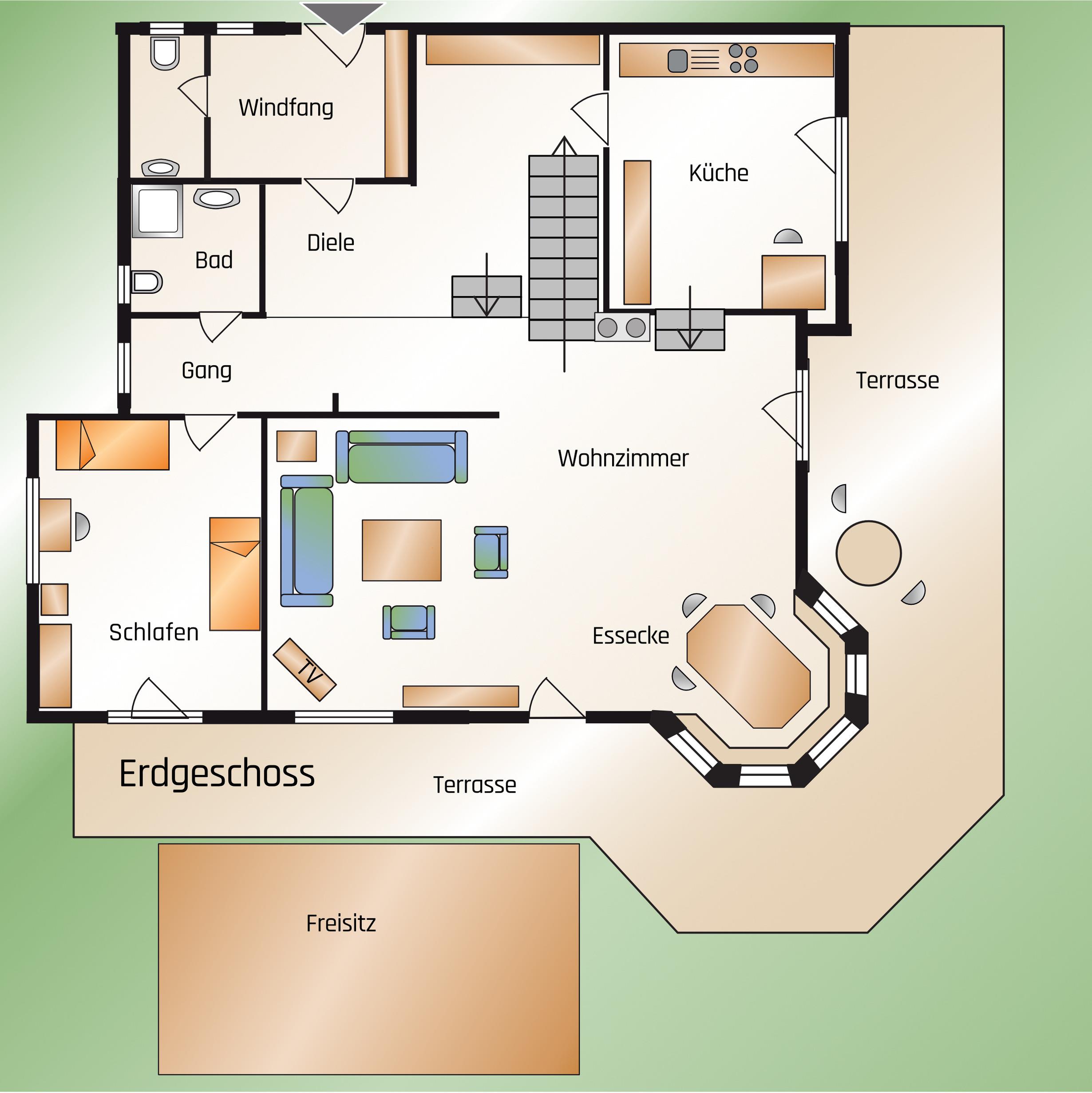 Das Wohnzimmer bietet mit zwei Sofas und Sesseln Platz für alle und ist mit Flachbild-TV (internetfähig) und Blueray Player ausgestattet. WLAN-Anschluss ist inklusive. Eine Besonderheit bieten die große Rundum-Terrasse und der Freisitz mit hochwertigem Esstisch und Sitzgelegenheiten. Von Sonnenauf- bis zum Sonnenuntergang werden Sie aufgrund der freien Südwest -Lage von der Sonne verwöhnt.