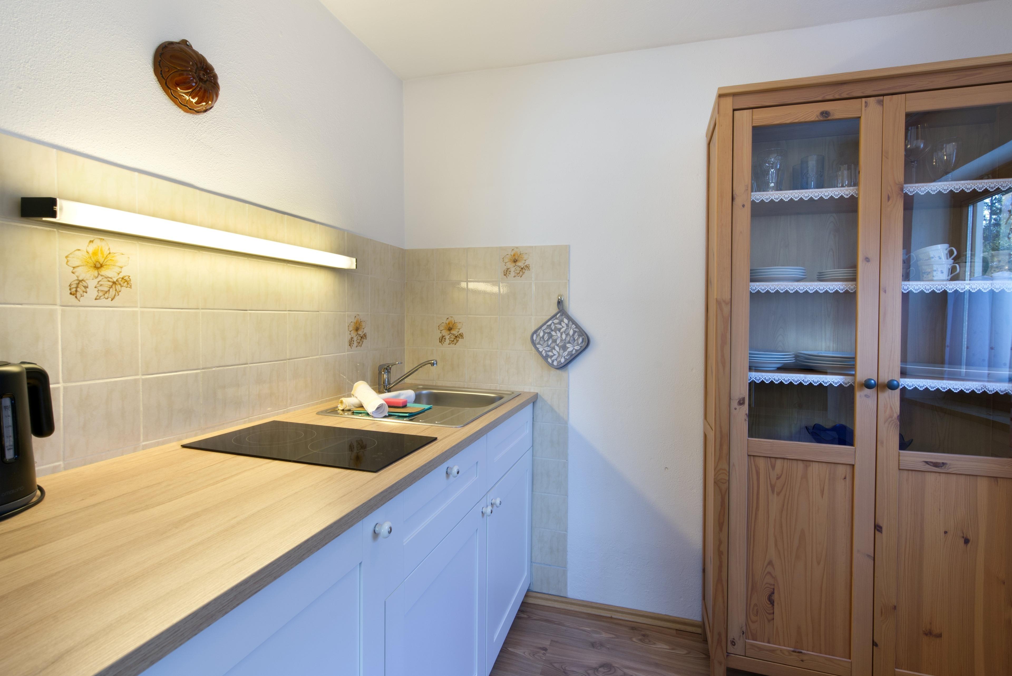 Vom Eingang kommen Sie direkt in den Eingangsbereich. Hier zweigt das kleine, renovierte Bad mit WC und bodengleicher Dusche ab. Vom Wohnbereich gelangen Sie links zum Schlafzimmer mit einem Doppelbett in den Maßen 180x200cm. Im Wohnbereich befindet sich ein kleiner Esstisch mit 2 bequemen Stühlen sowie eine Couch. Die Küche mit Kühl-Gefrierschrank, sowie 2 Platten - Ceran-Kochfeld ist komplett ausgestattet. Im Wohn-und Essbereich mit kurzen Wegen zur Küche, lassen sich gemütliche Stunden verbringen. Ein weiteres Highlight ist die kleine von Außen nicht einsehbare Terrasse, auf der Sie wunderbare Stunden bei schönem Wetter verbringen können.